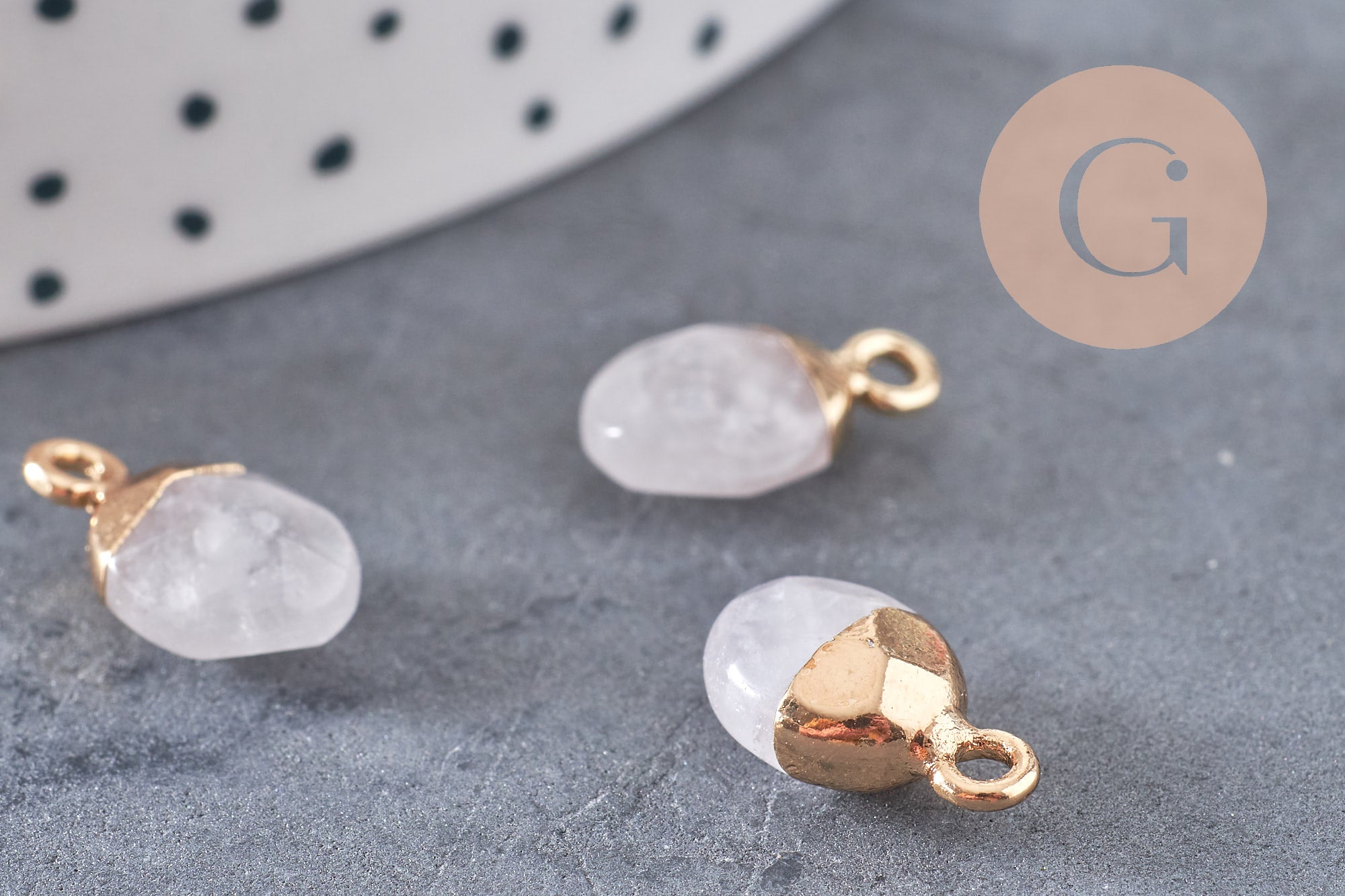 Craquez pour ce petit pendentif très discret en quartz avec son support en fer doré.