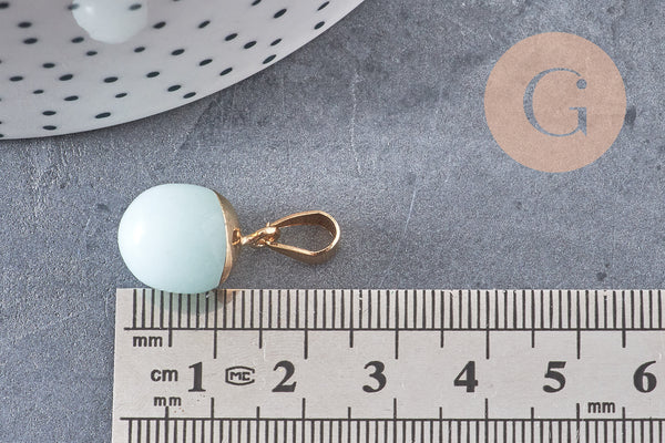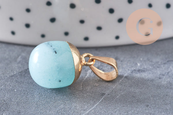 Pendentif goutte jade turquoise doré, fournitures créatives, pendentif pierre,jade naturel, jade bleu teinté,17-19mm, x1 G3366