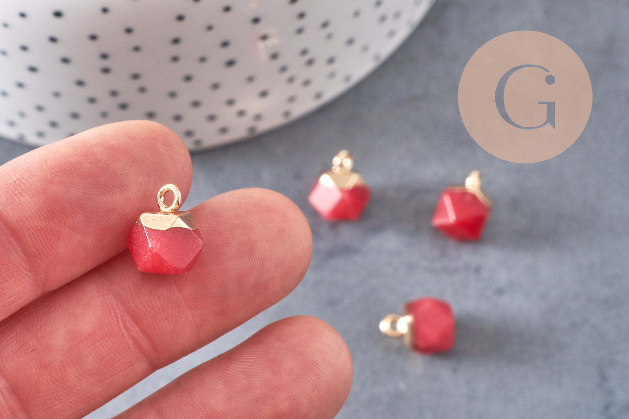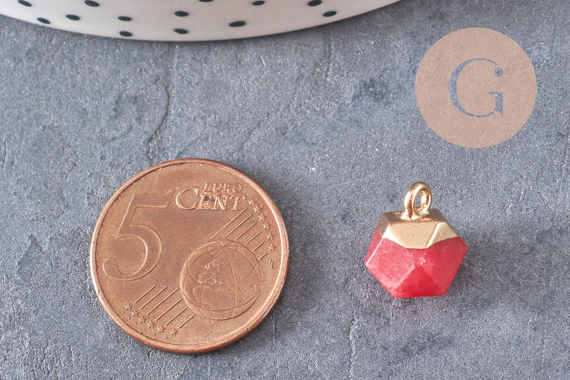 Pendentif hexagone jade naturel rouge 11mm,pendentif pierre,jade naturel,pendentif jade géométrique, x1-G0553