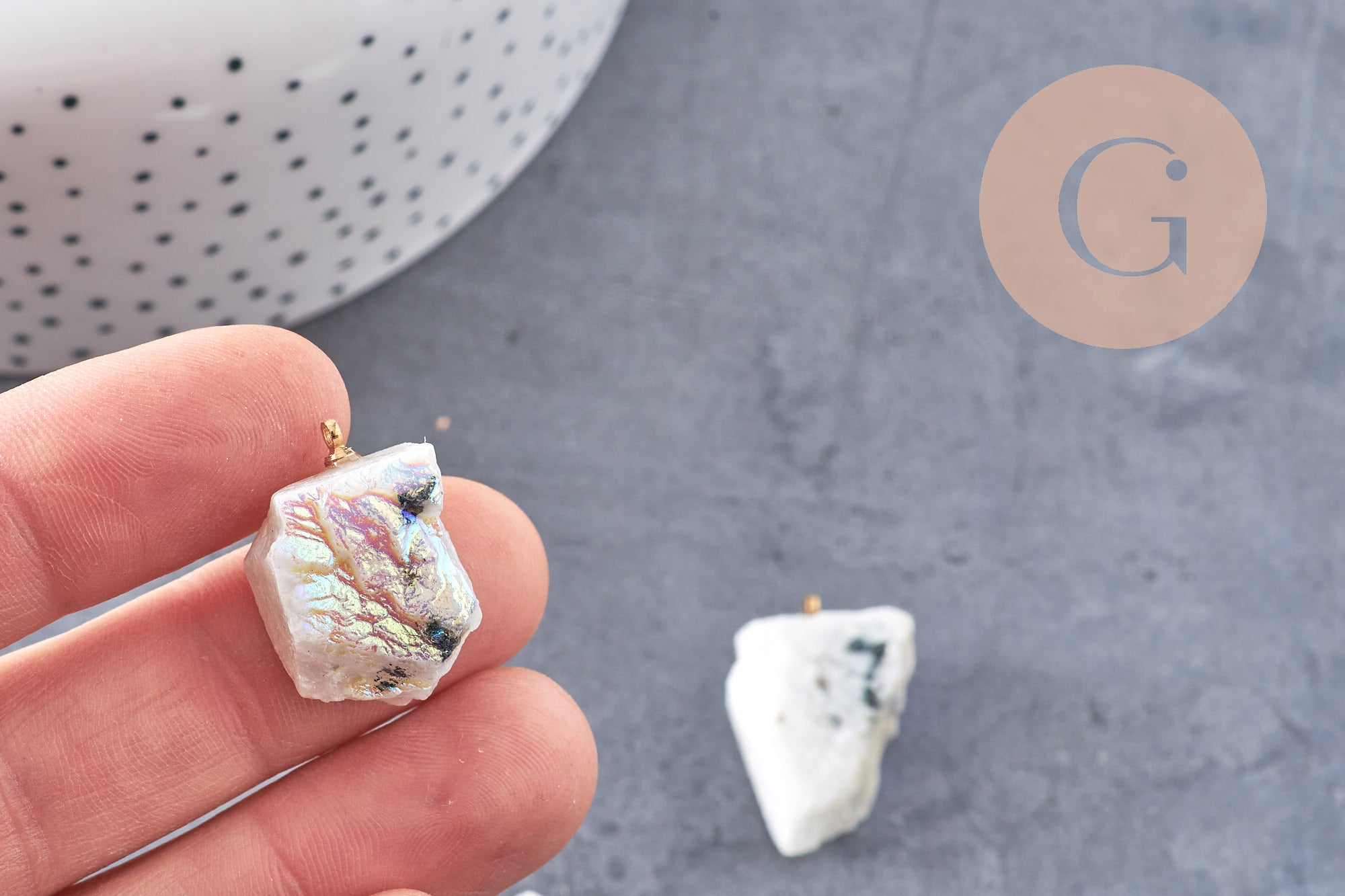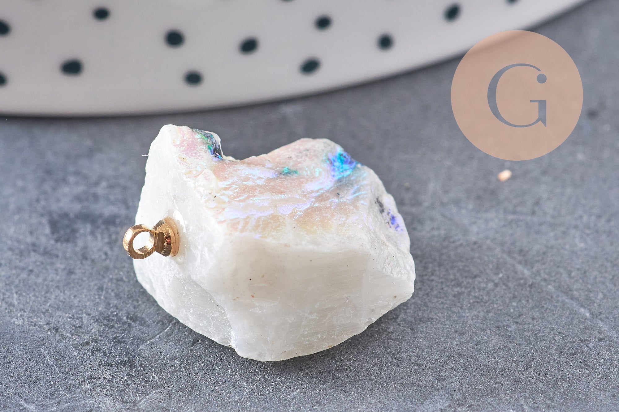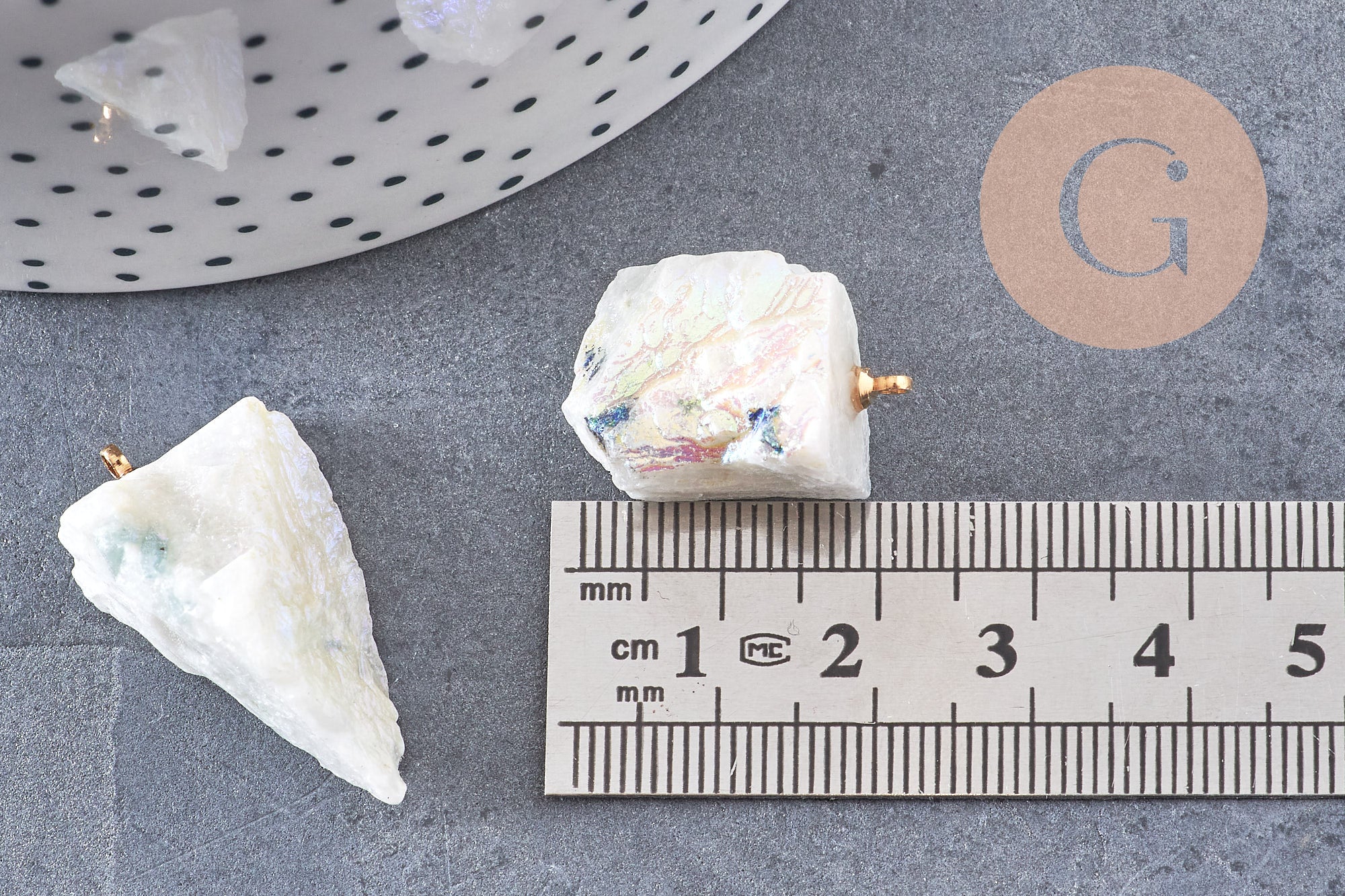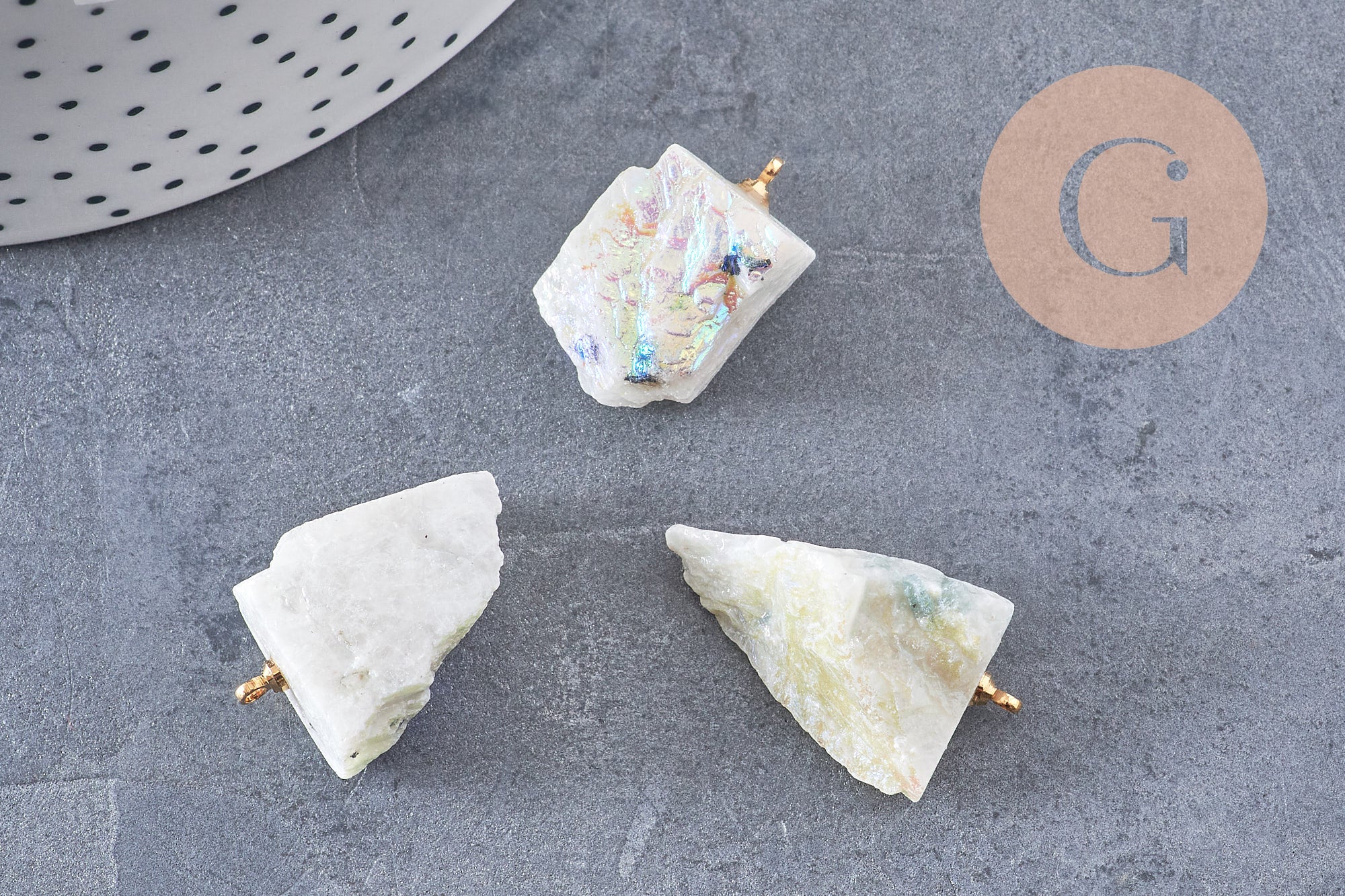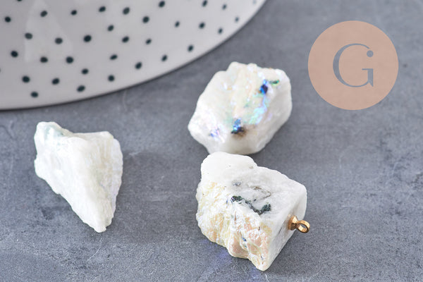 Pendentif pierre de lune naturelle,pierre brute, création bijoux pierre de lune naturelle,pendentif pierre doré, x1 (G3387)