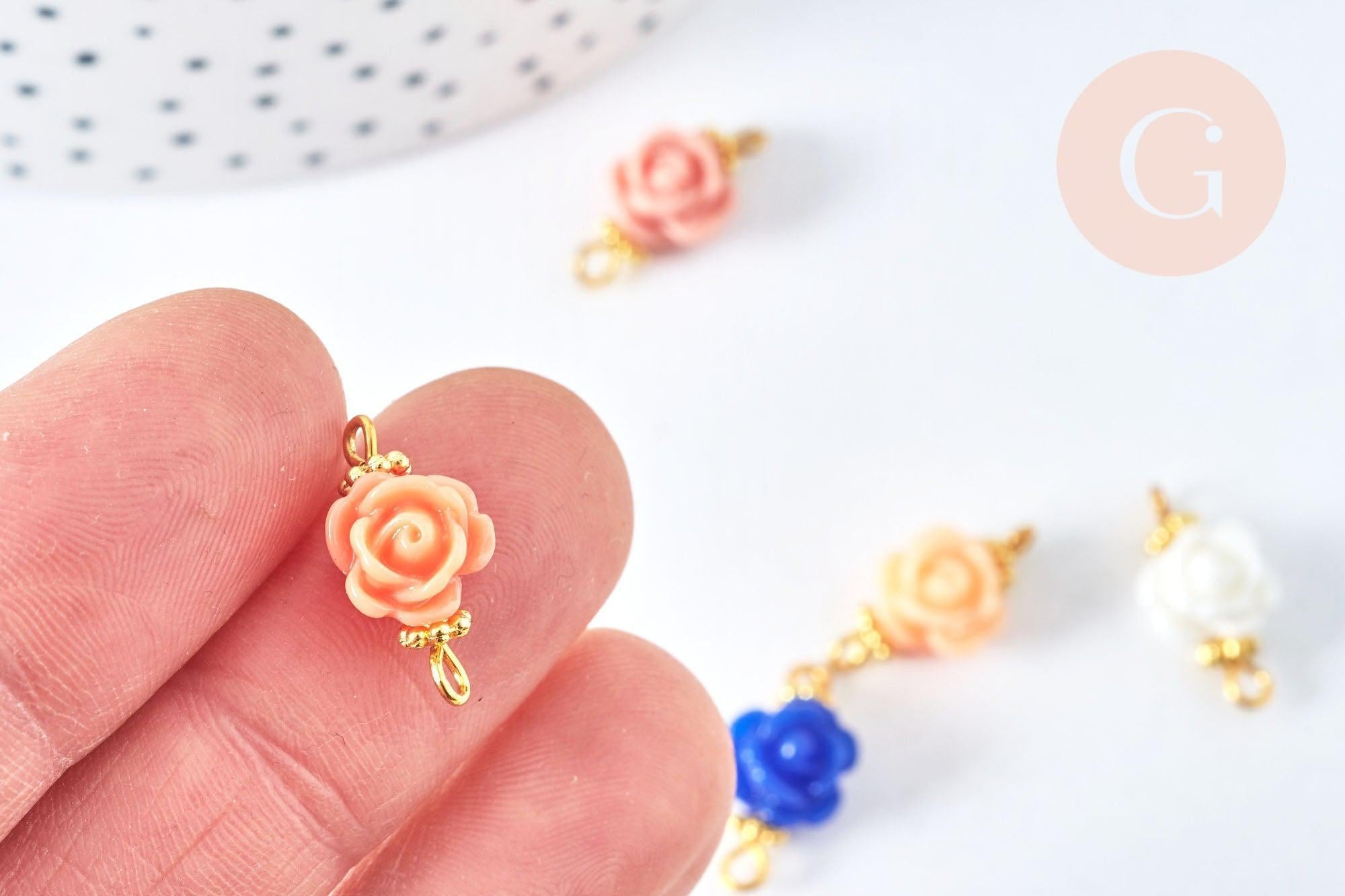 Ce connecteur en forme de fleur, une rose, est en résine colorée. Symbolisant l'amour, la fleur rose est motif floral très tendance. On adore l'utiliser pour fabriquer des bijoux fantaisie DIY, à porter tout au long de l'année.