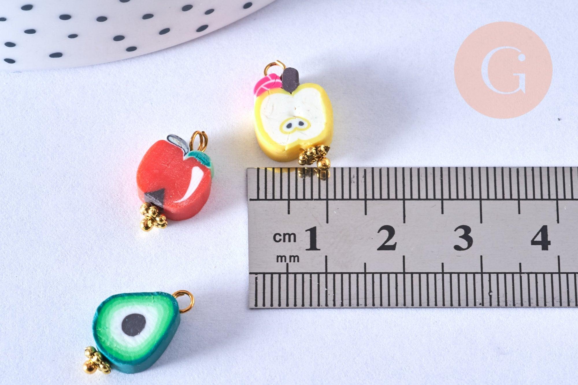 Pendentif breloque fruits polymère multicolore 12-17mm, perles colorées et estivales pour créer des bijoux fantaisie, x10 (G6689)