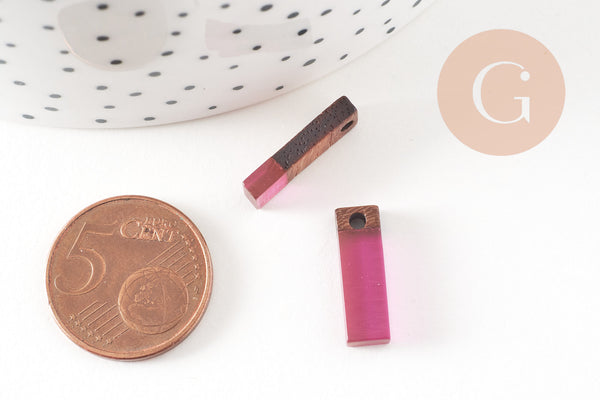 pendentif goutte bois résine rectangle violet prune, perle bois naturel, Perle géométrique,perle rectangle,création bijoux,17mm,x5 G3519