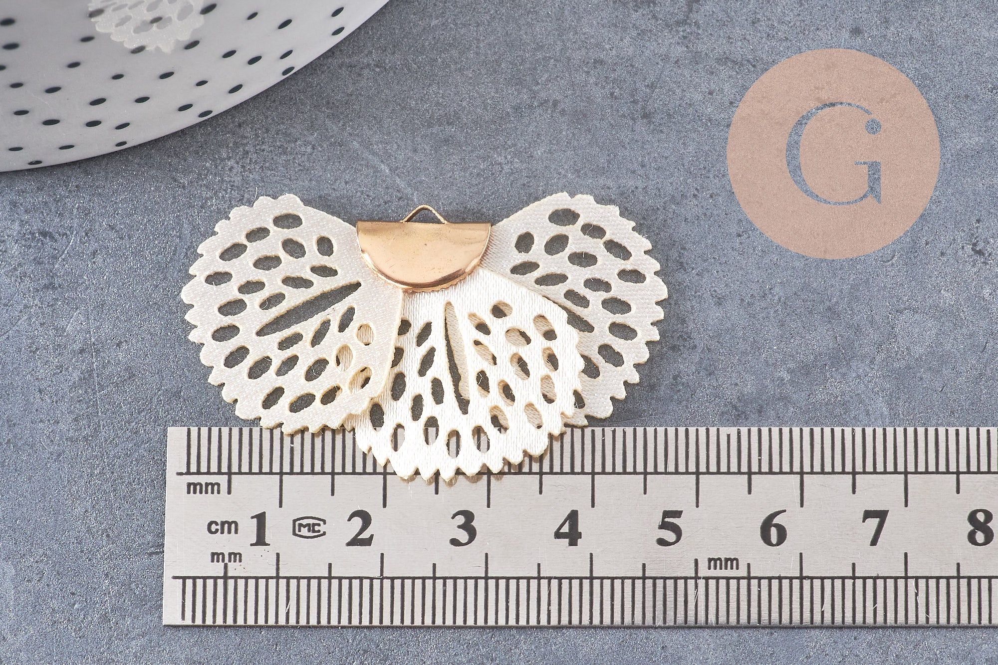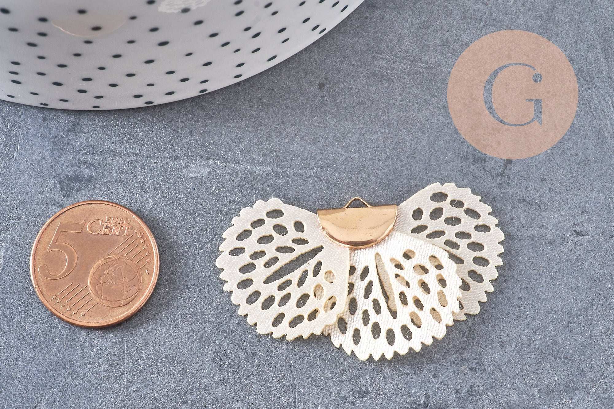 Un délicat lot de deux pendentifs en dentelle de soie et support doré, pour la réalisation de vos bijoux romantiques. Une fourniture parfaire pour la réalisation de boucles d'oreilles et colliers.