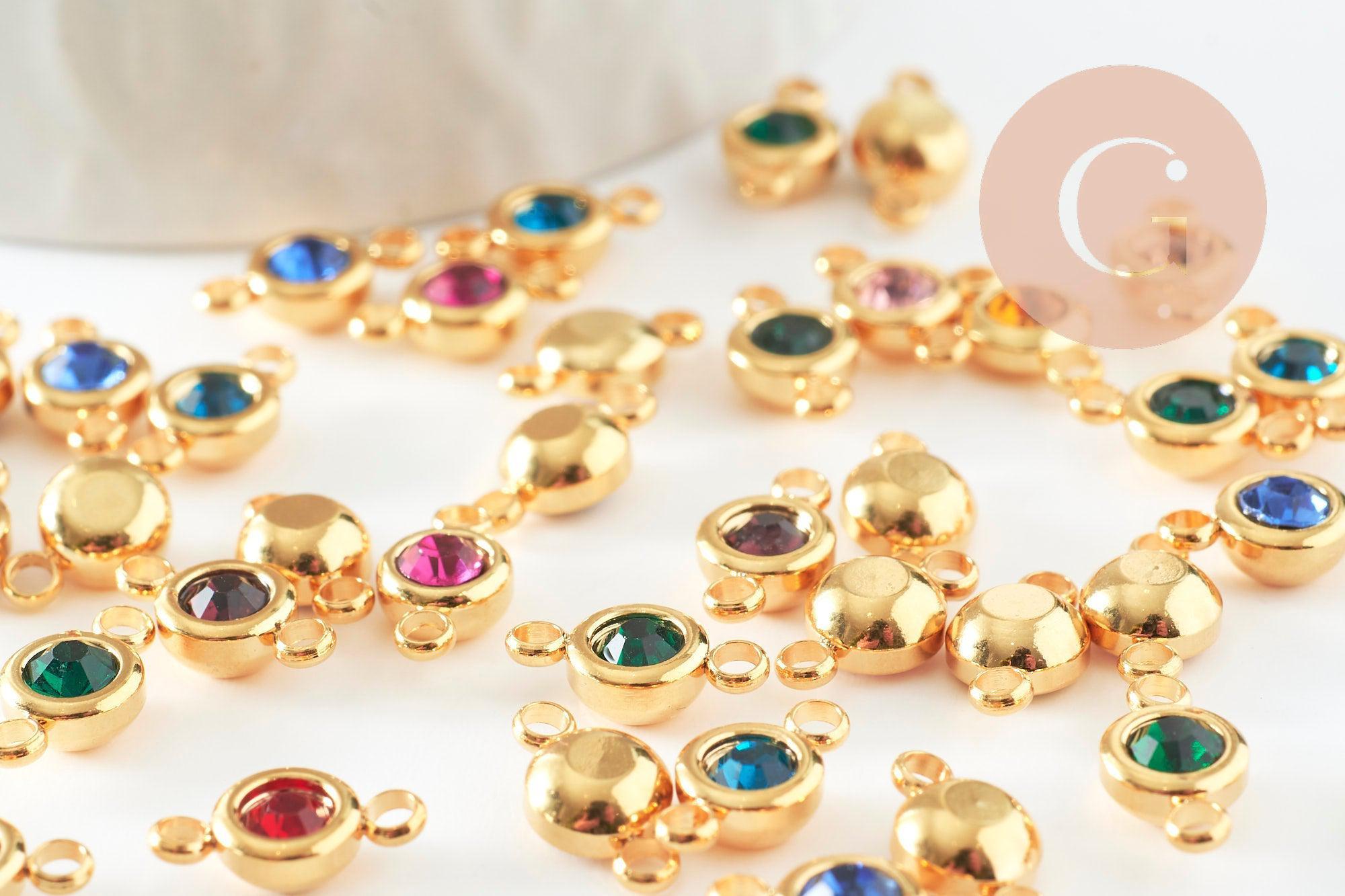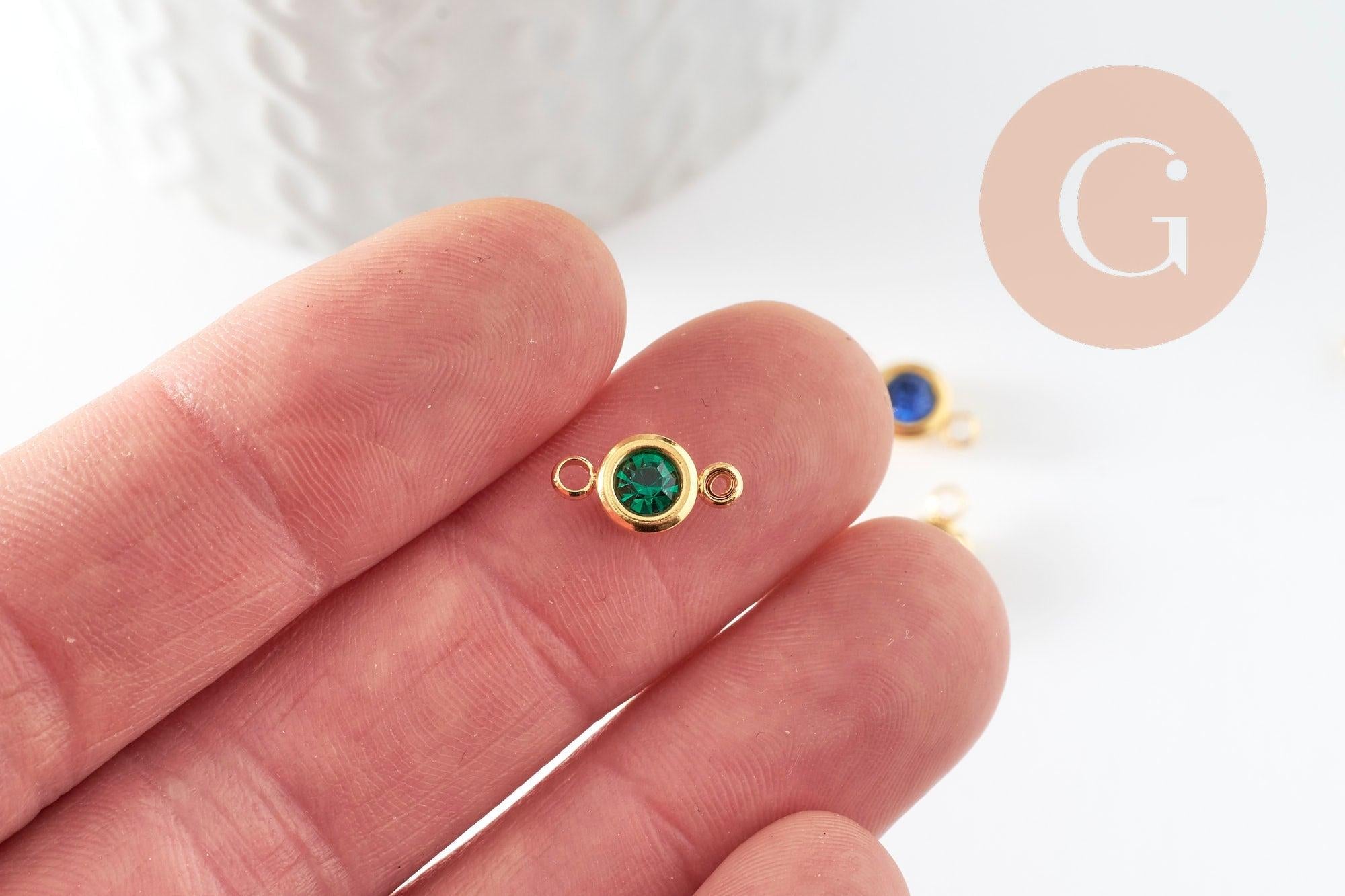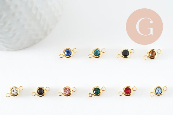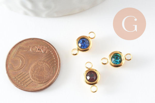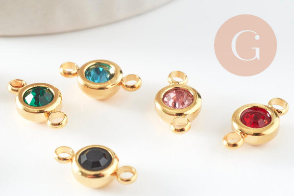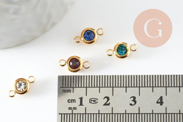 Pendentif connecteur rond acier 304 inoxydable doré zircon coloré 12mm,pendentif pierre de naissance cristal, x1 G9582