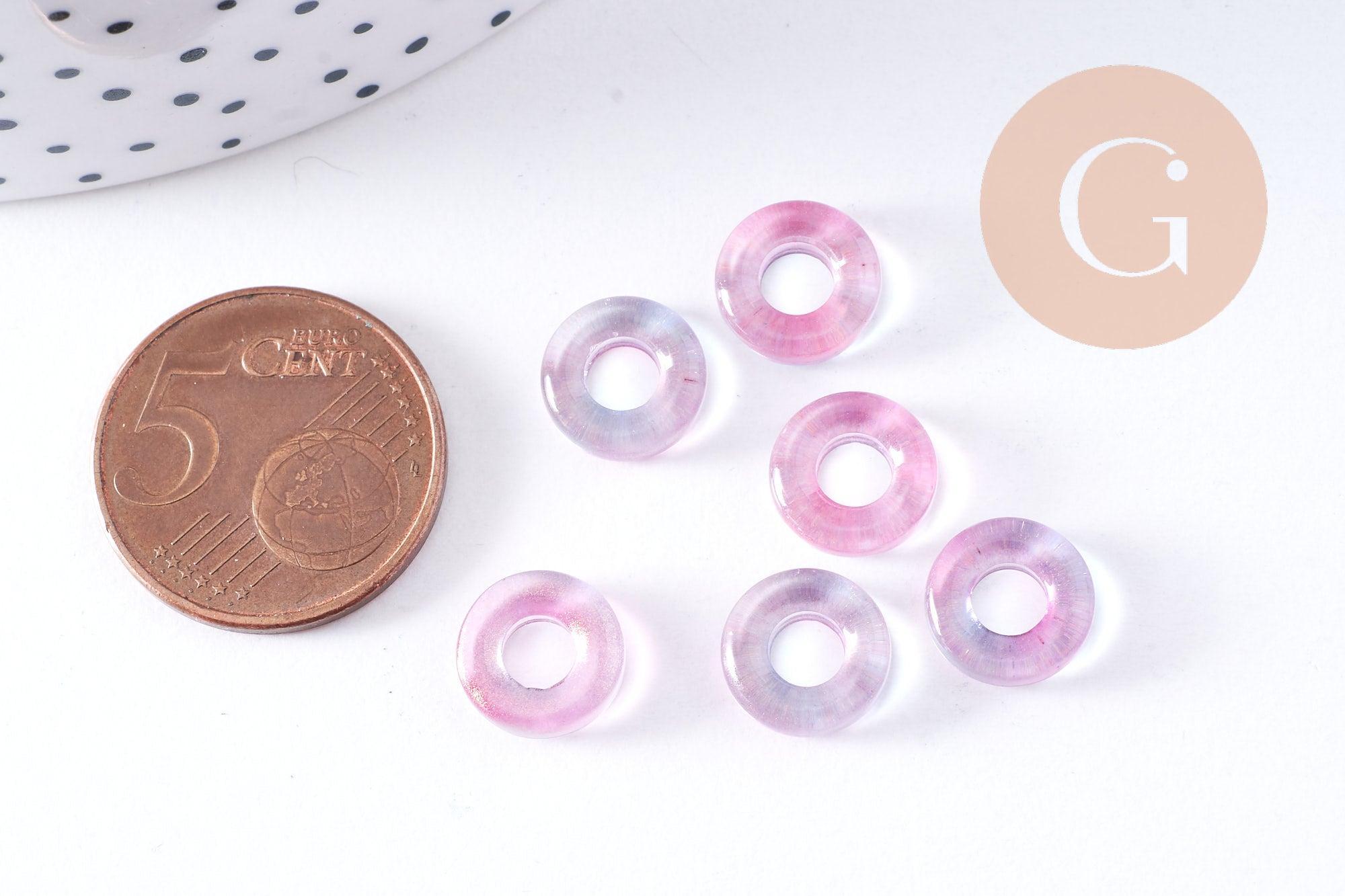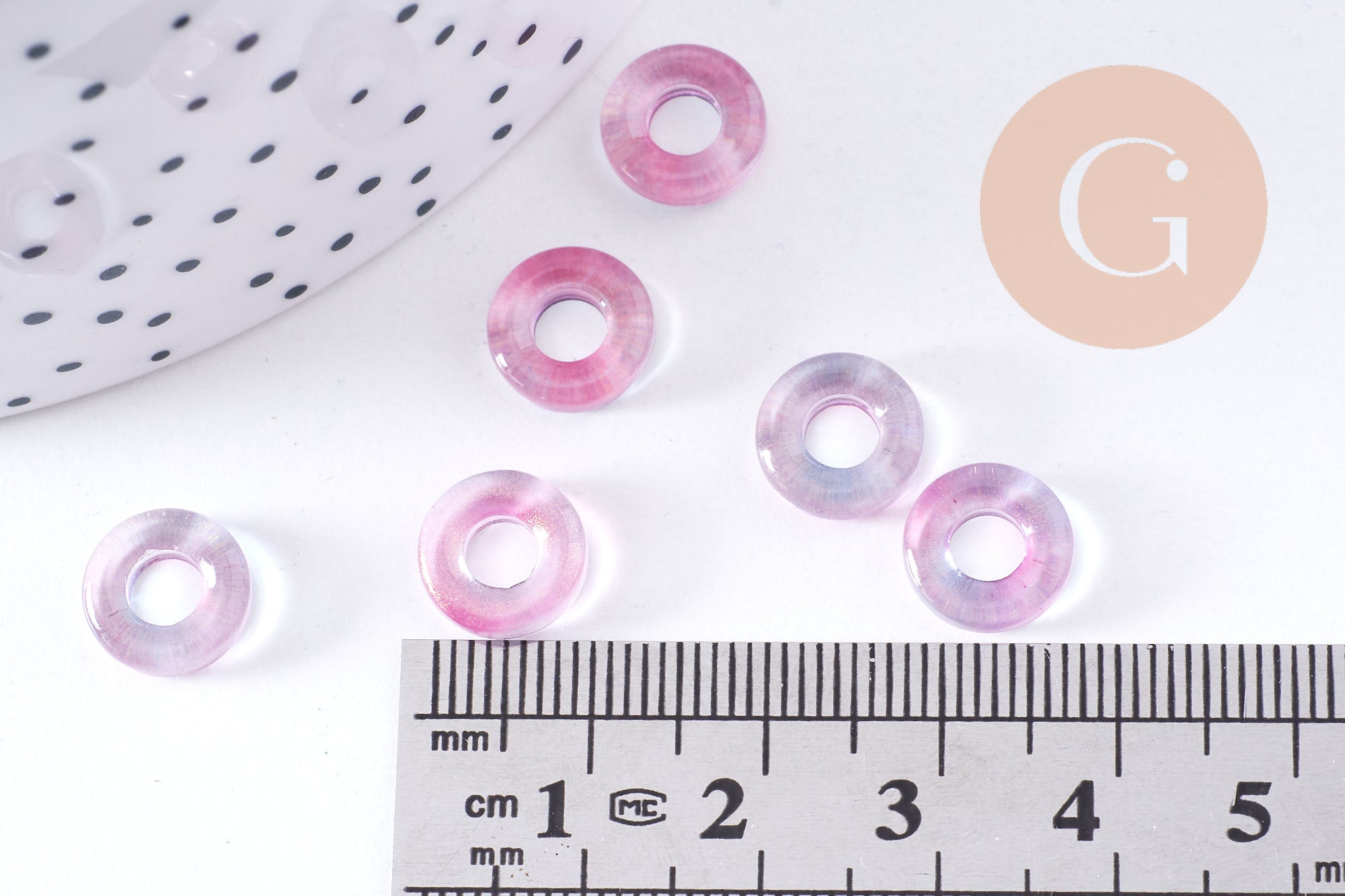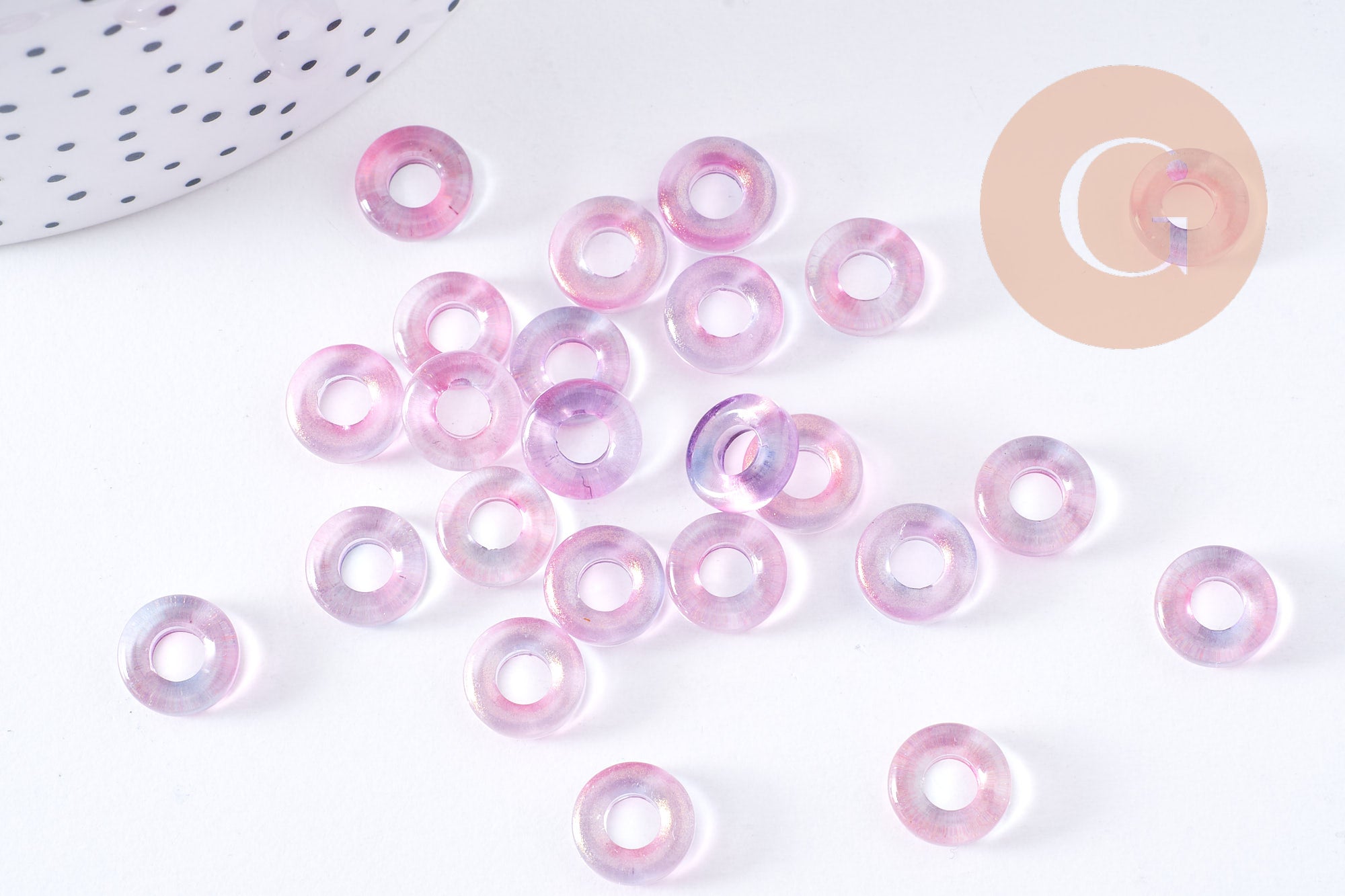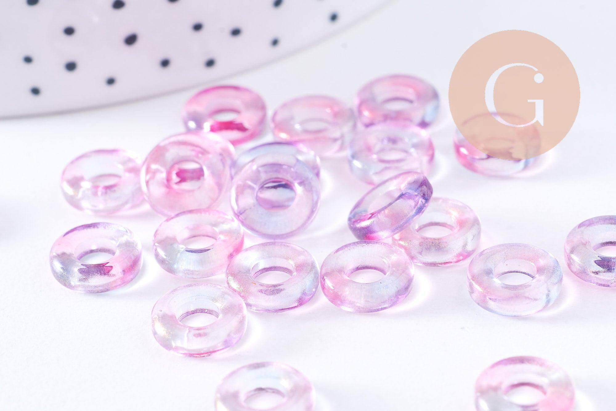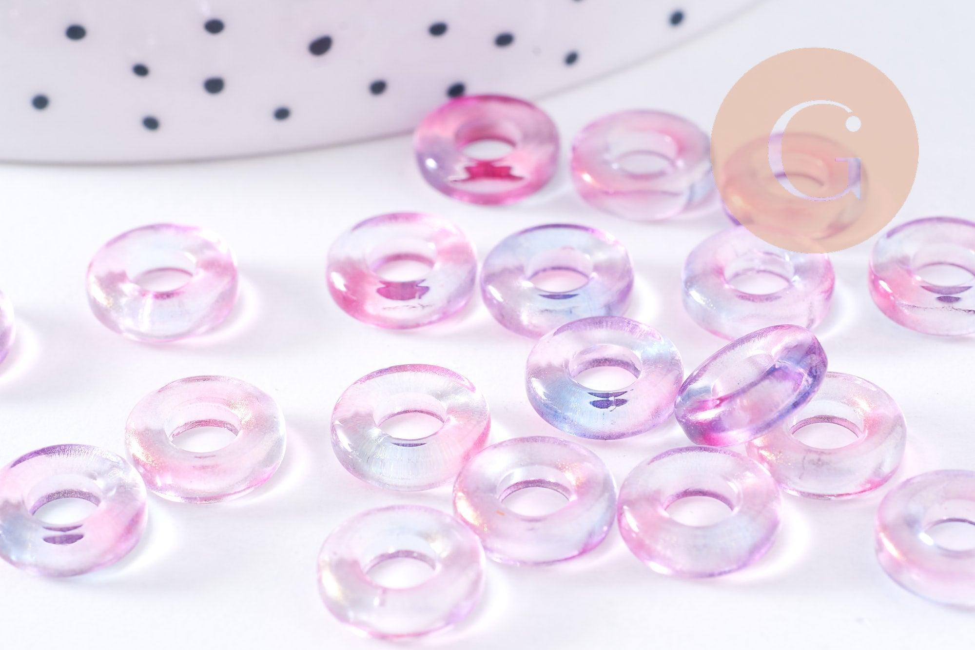 Ajoutez une touche d’originalité et de couleur à vos créations avec ces pendentifs en verre en forme de donut. Leur teinte jaune-violet subtilement nuancée par vaporisation donne à chaque pièce un éclat lumineux unique. Idéaux pour des bijoux fantaisie aux accents pop et modernes.
