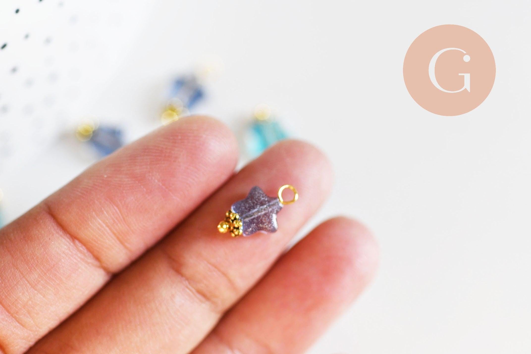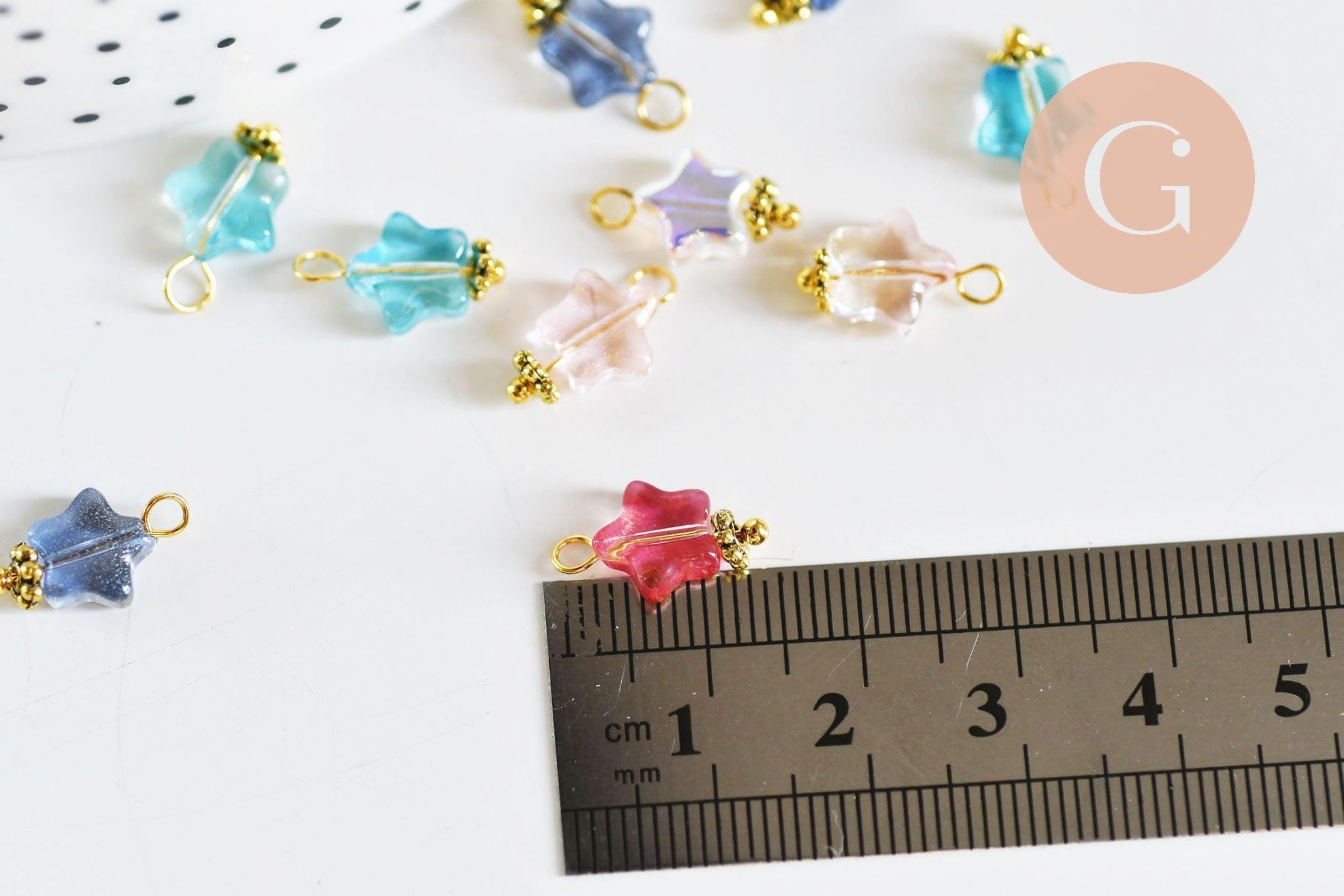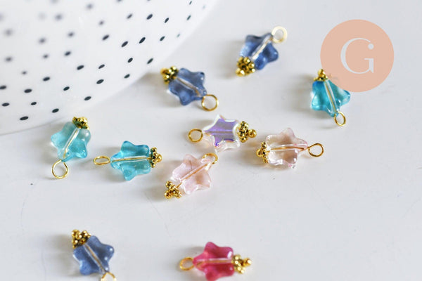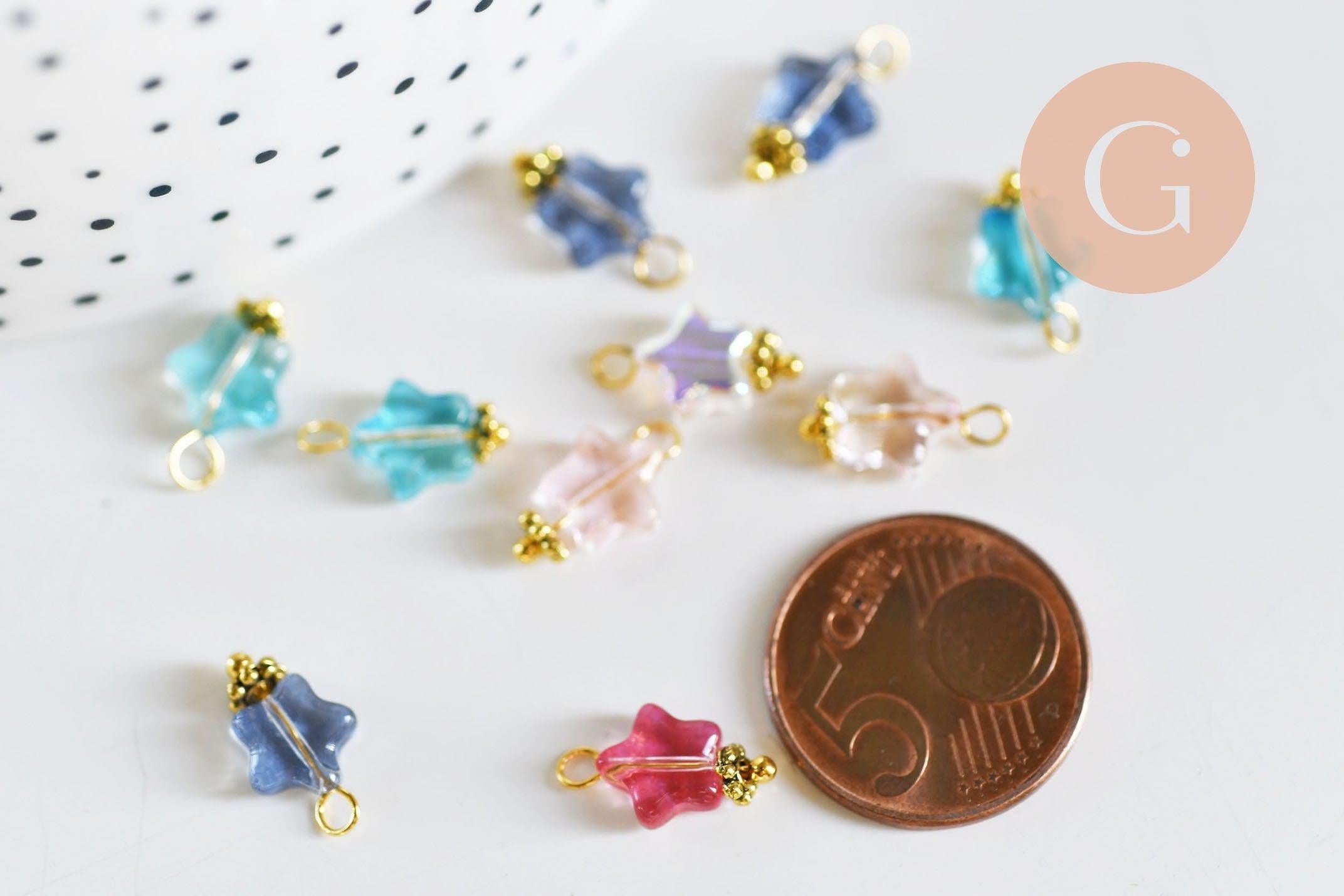 Craquez pour ce joli pendentif en forme d’étoile en verre irisé aux reflets colorés, monté sur une bélière en zamac doré et agrémenté d’une petite perle en laiton doré. Un composant lumineux pour vos bijoux DIY qui apportera une touche de féerie à vos créations.