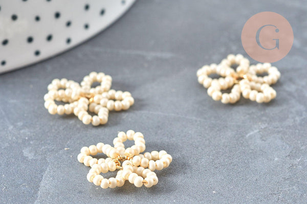 Pendentif fleur en perles de rocaille en verre, pendentif fleur, fleur en rocailles, 19mm,x1, G6825
