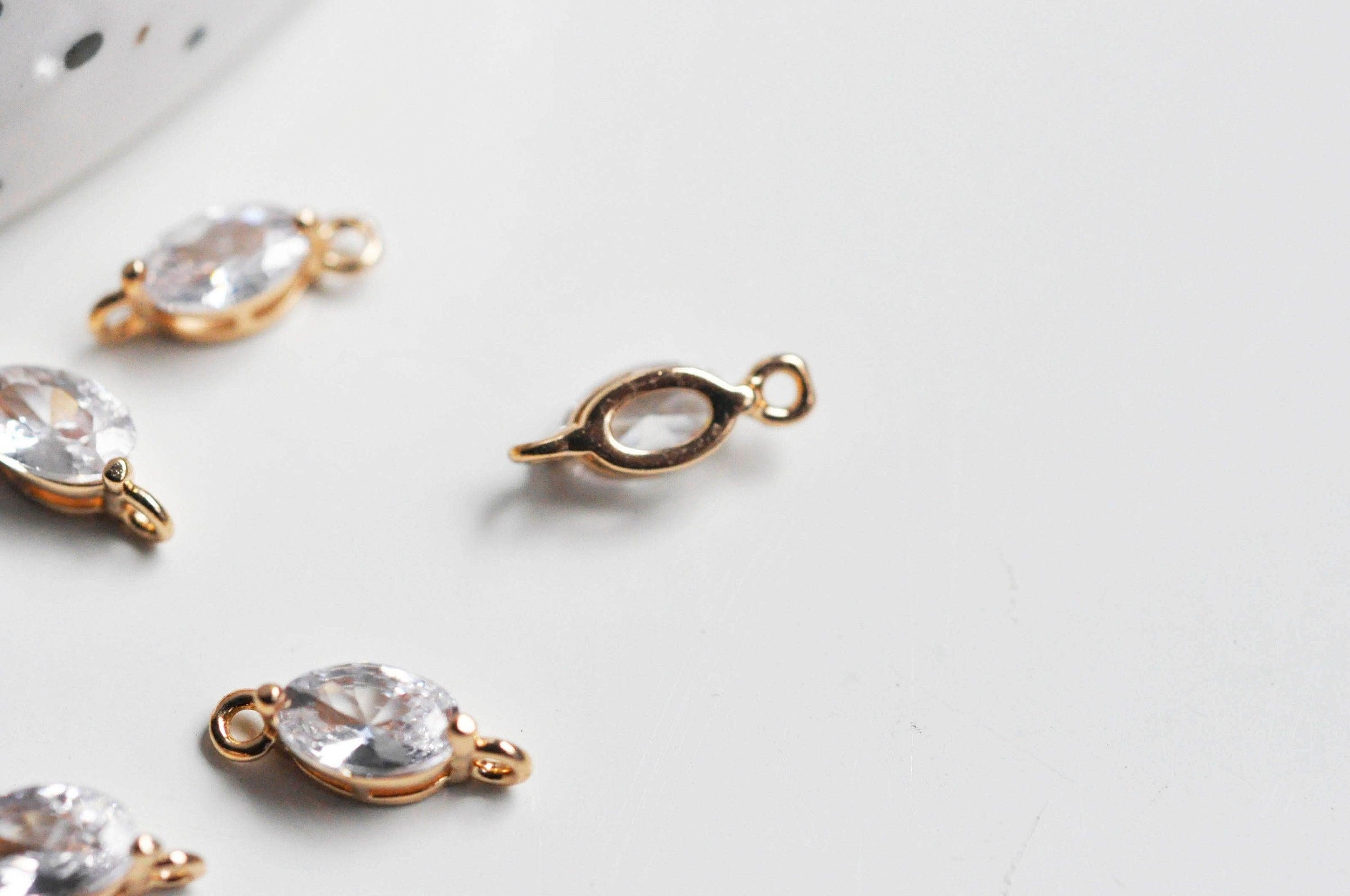 Craquez pour l’élégance intemporelle de ces pendentifs goutte, en zircon blanc facetté et laiton doré 24 carats. Un classique revisité pour des bijoux délicats et raffinés.