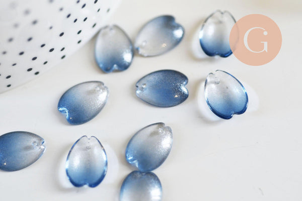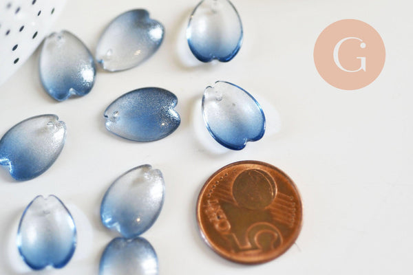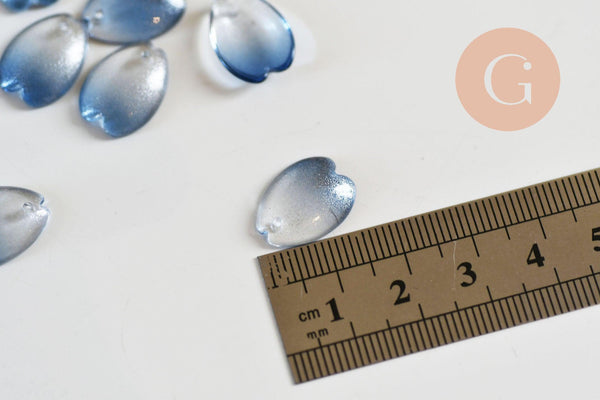 D'adorables pendentifs en verre transparent en forme de pétales, couleur bleu royal dans le style art déco.