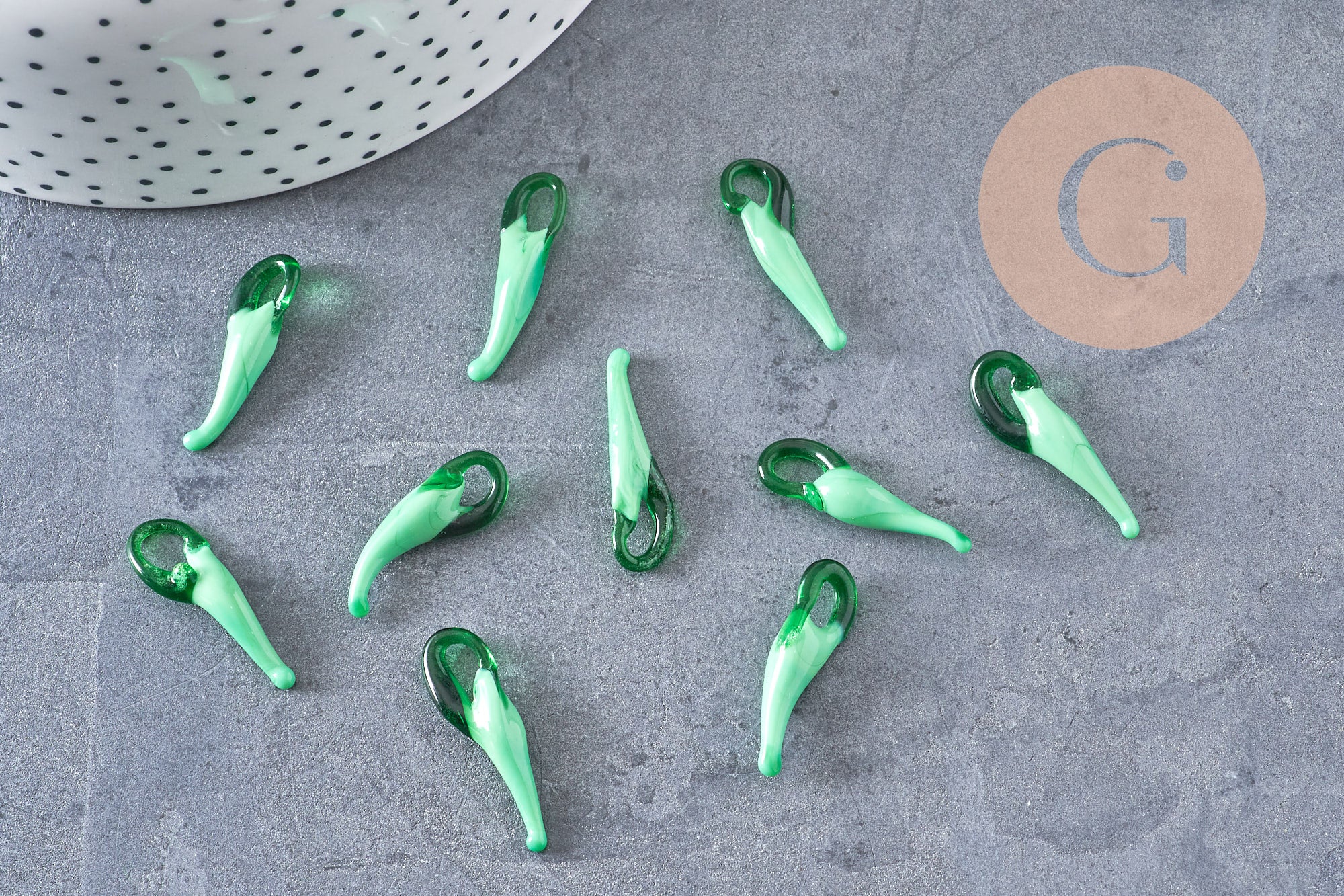 Un lot de pendentifs piment en verre artisanal coloré, pour réaliser des sautoirs, colliers et boucles "picantes"! A utiliser comme breloques sur une grosse chaine, un bijou tendance.