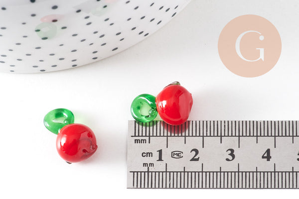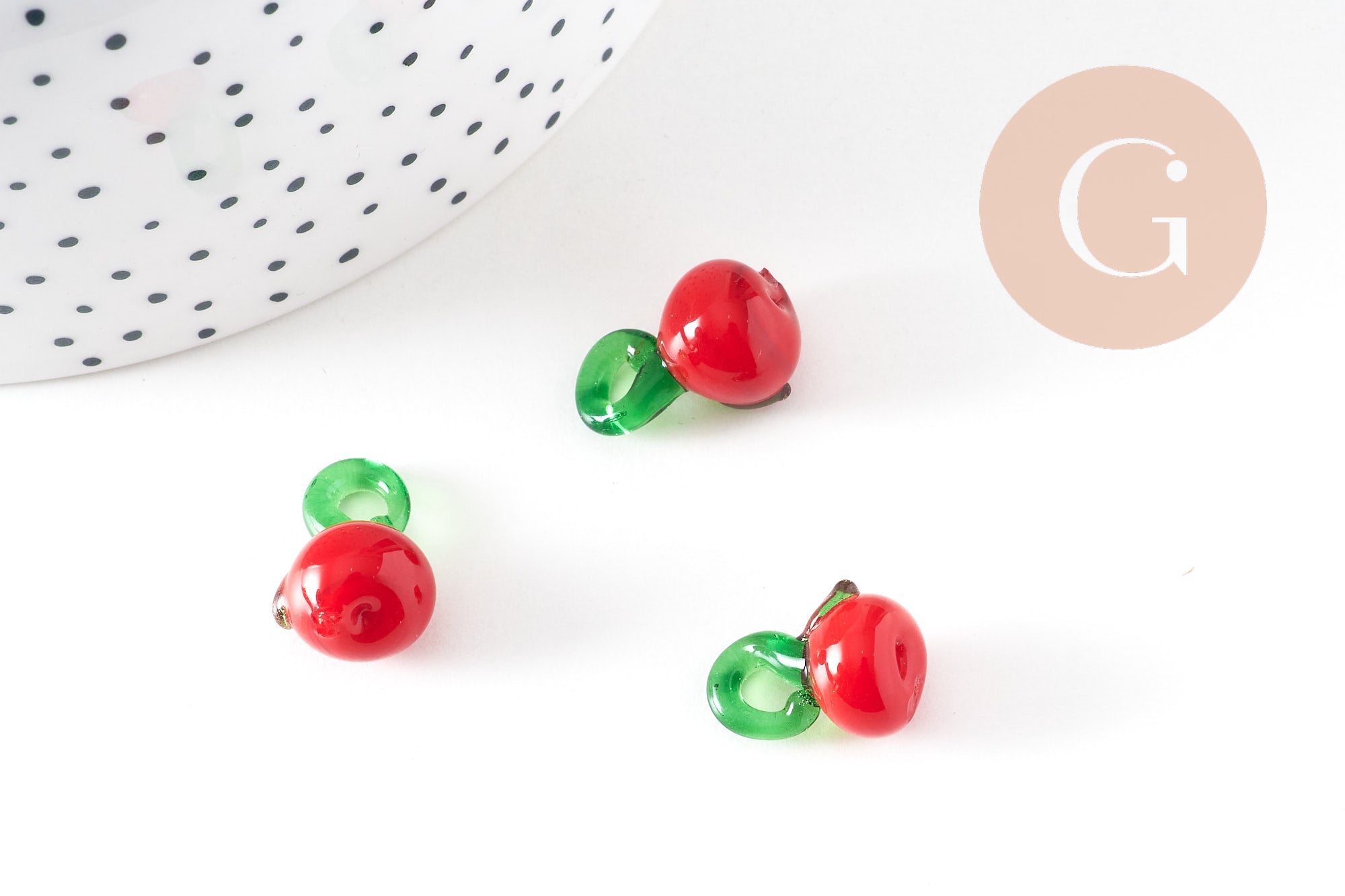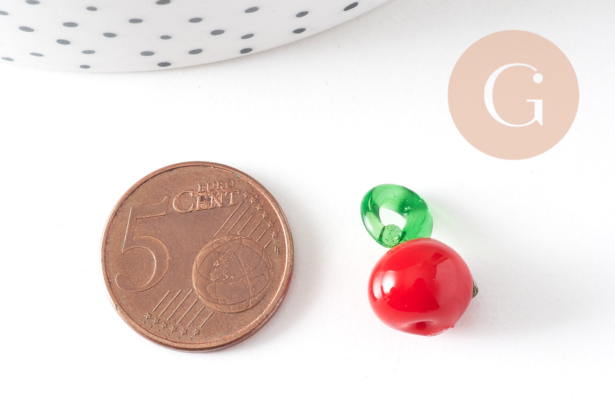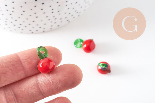 Pendentif fruit rouge ,fourniture créative,perle verre tchèque,fruit verre,pendentif verre,verre artisanal,pendentif chance,25mm,les 5