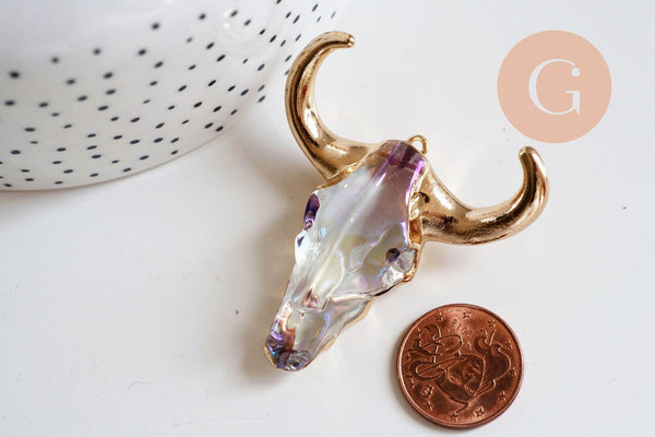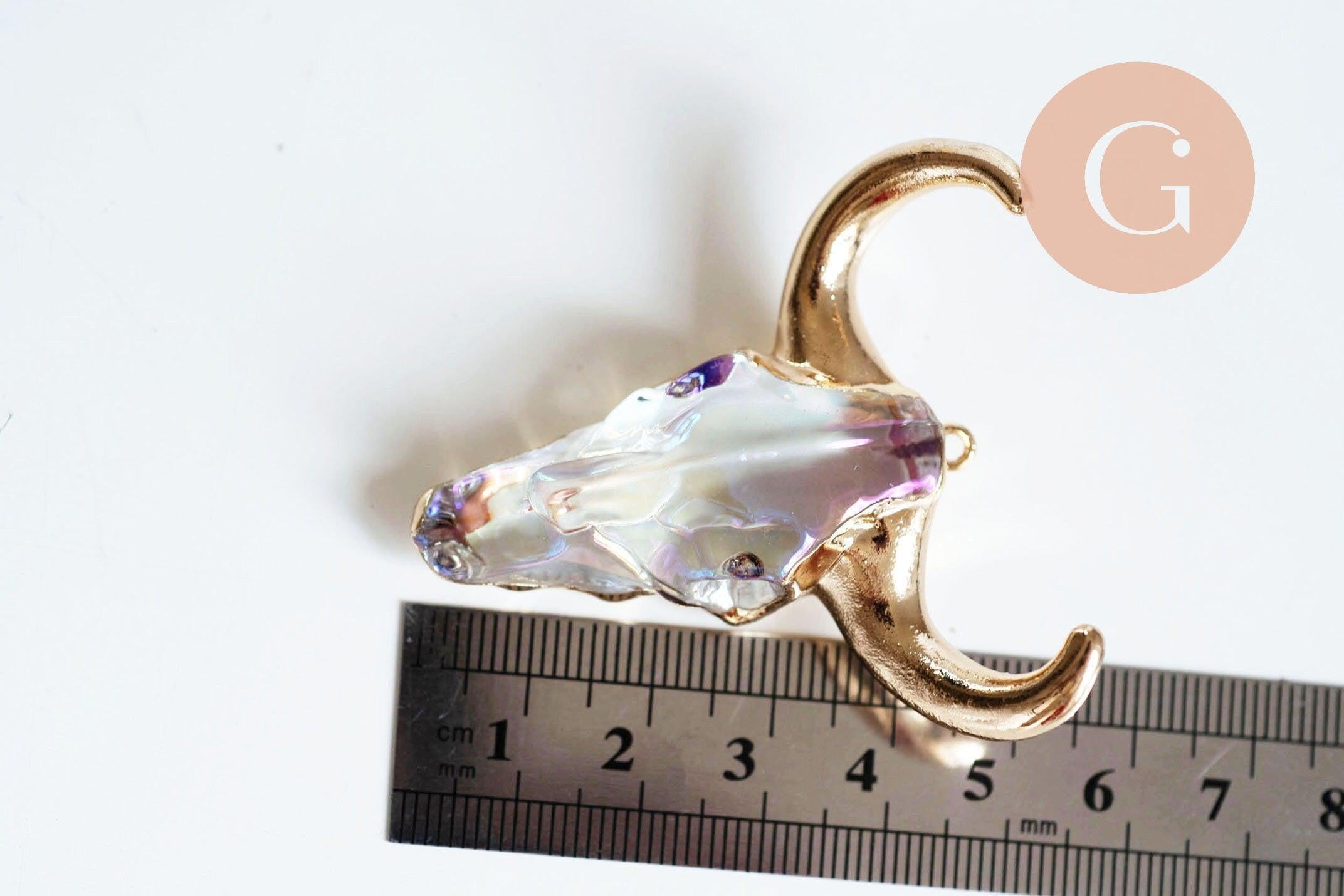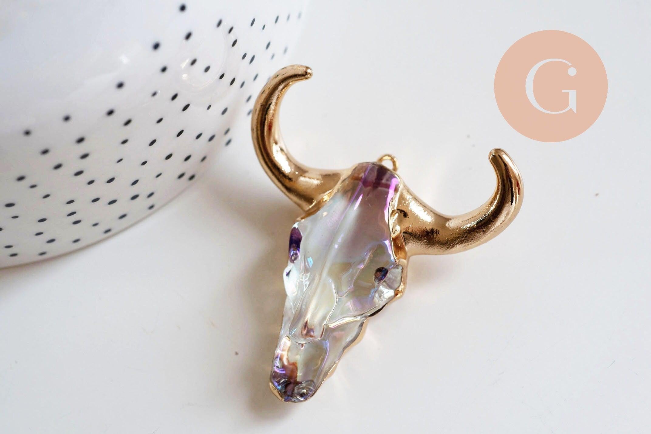 un maxi pendentif en verre irisé en forme de tête de bétail, pour réaliser des bijoux dans l'esprit cow-boy