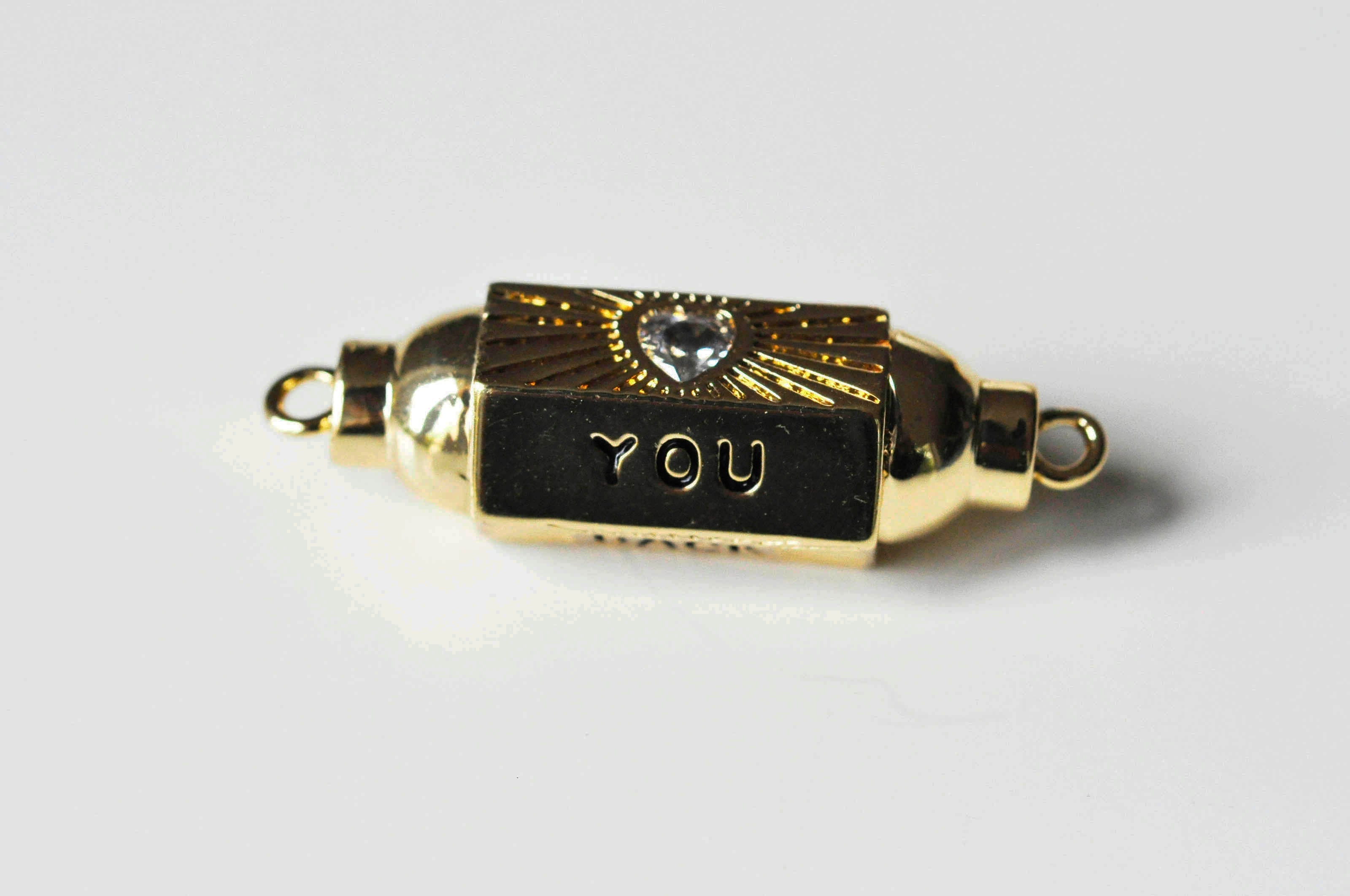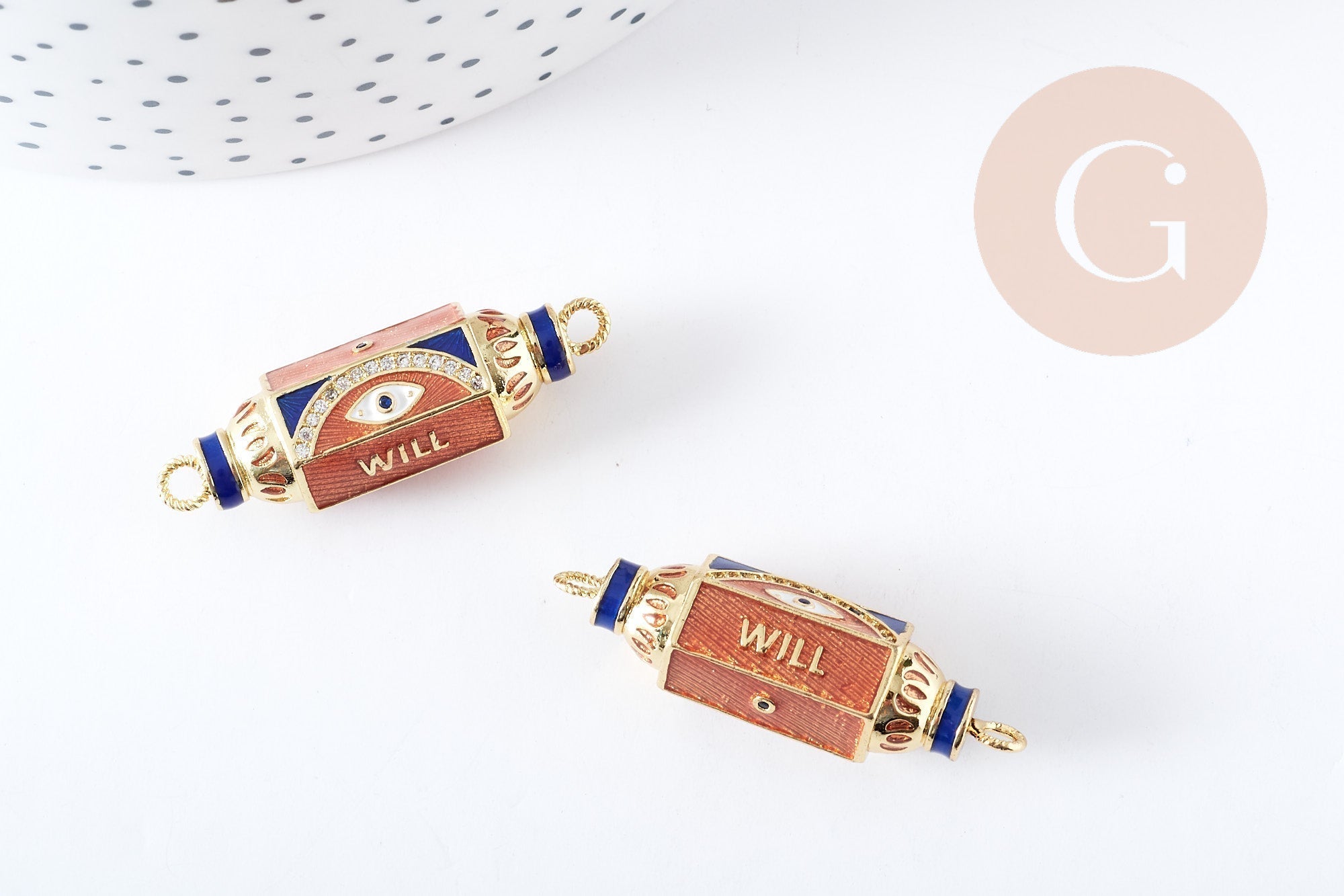 Connecteur tube talisman laiton doré 18K émaillé 37.5mm, x1 (G3540)