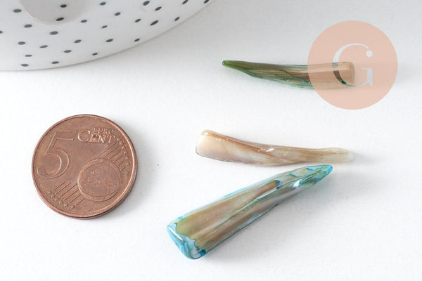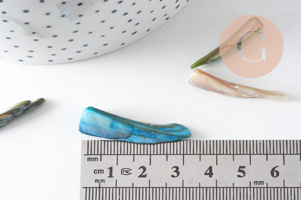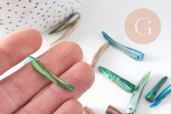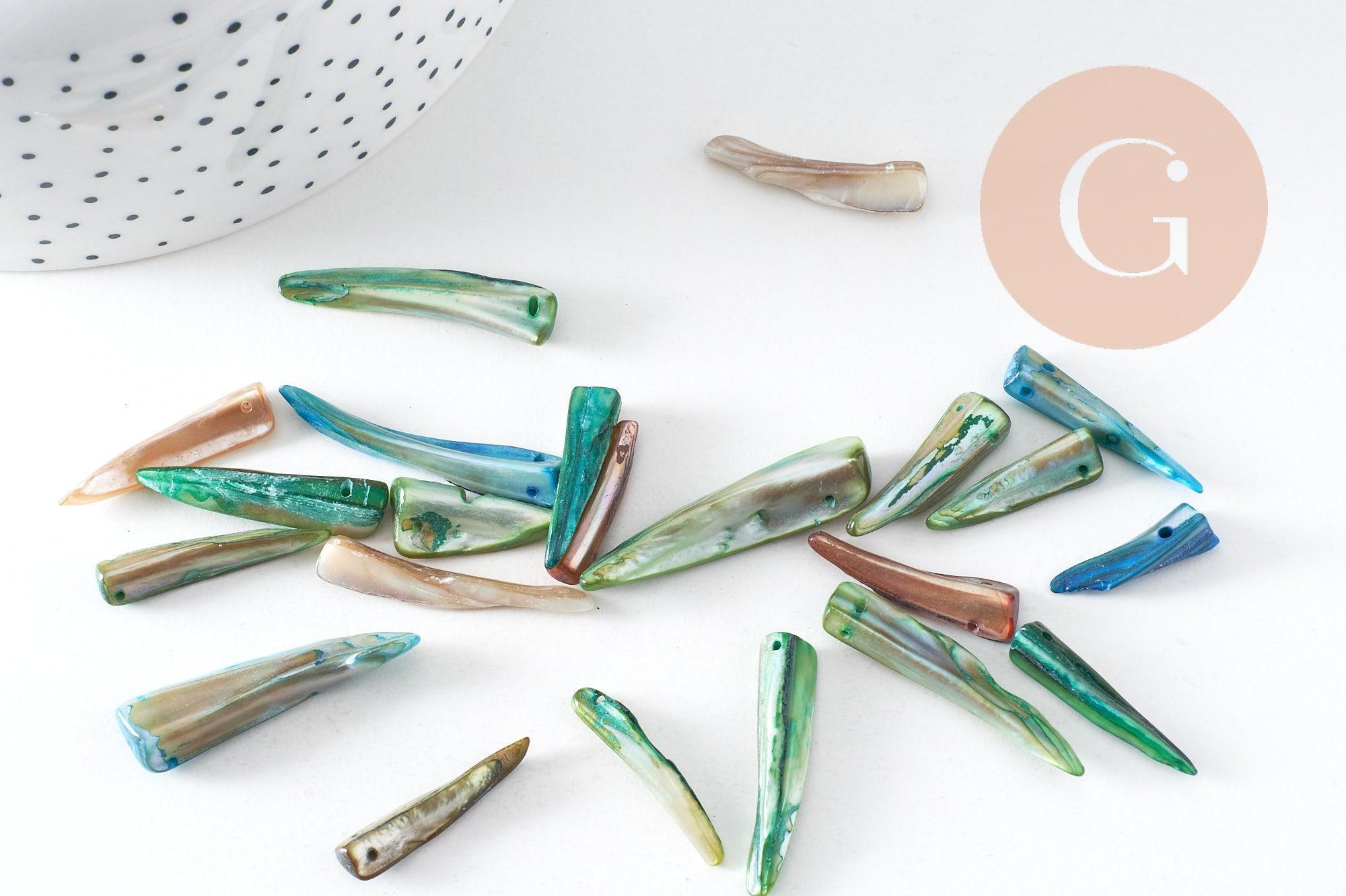 Ce lot de 20 perles-dents en nacre naturelle teintée offre un camaïeu de couleurs vibrantes et des formes organiques uniques. Leur finition nacrée leur confère un éclat subtil, parfait pour créer des bijoux tendance aux allures minérales et épurées.