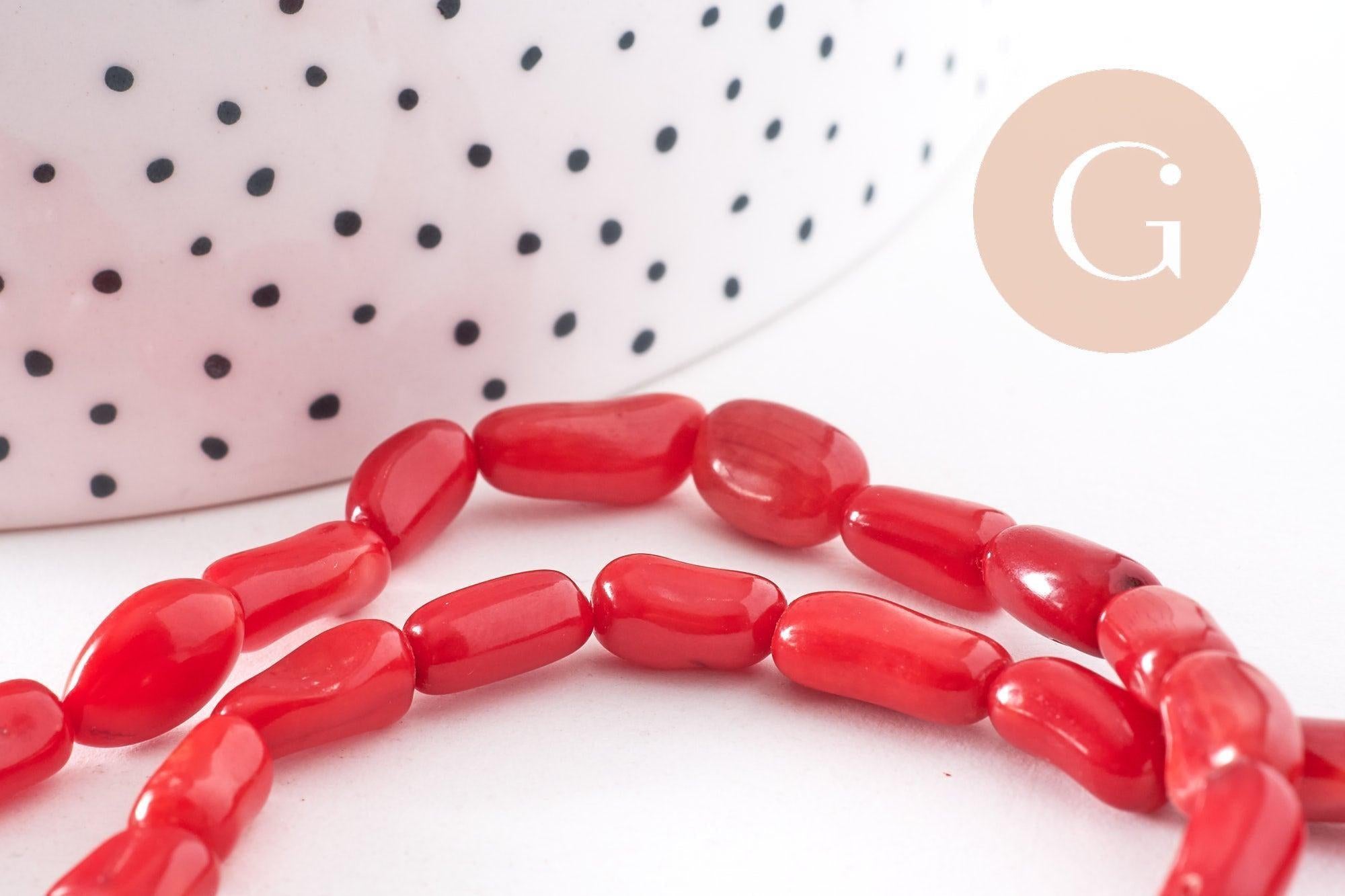 perle ovale corail rouge, fournitures créatives, perles corail, fabrication bijoux,corail rouge,corail naturel, fil 40cm,9-13mm