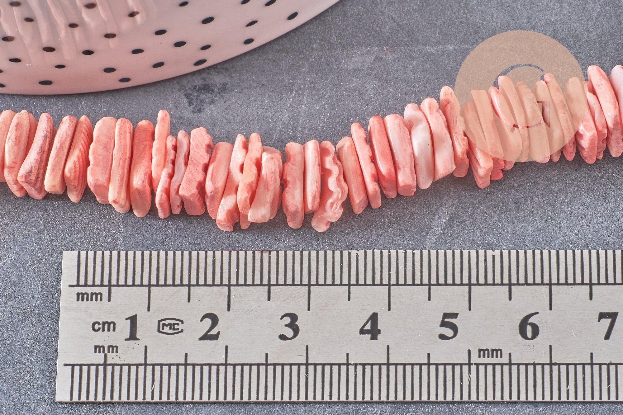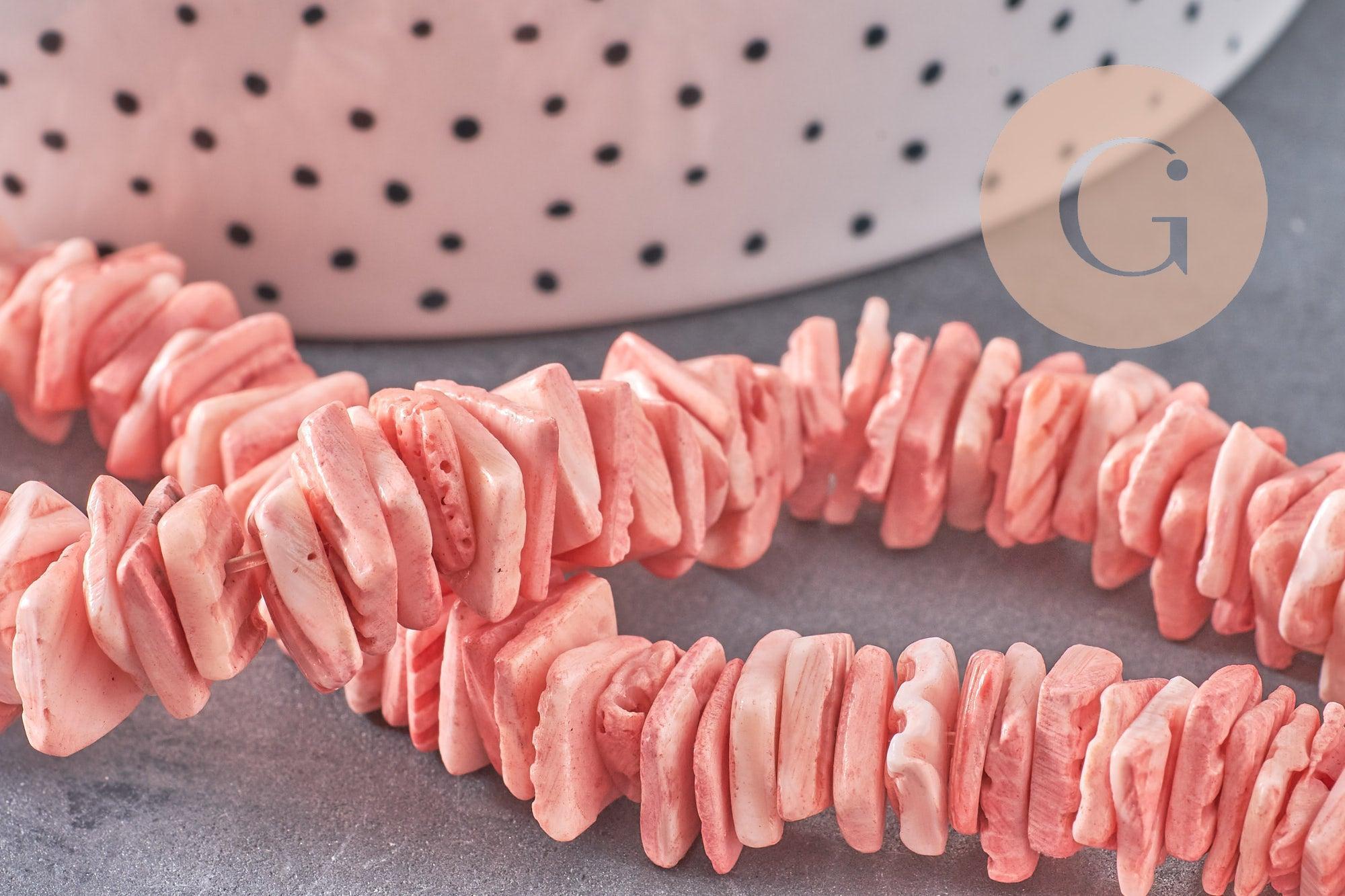 1 fil complet de perles chips de coquillage teinté en rose.