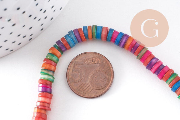 Perles rondelles coquillage naturel multicolore heishi 5-7mm,perle rondelle coquillage multicolore, création bijoux, fil de 200 perles, x1 (G5851)