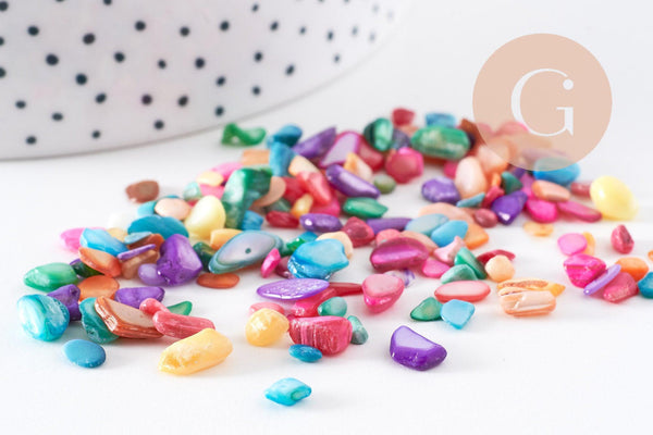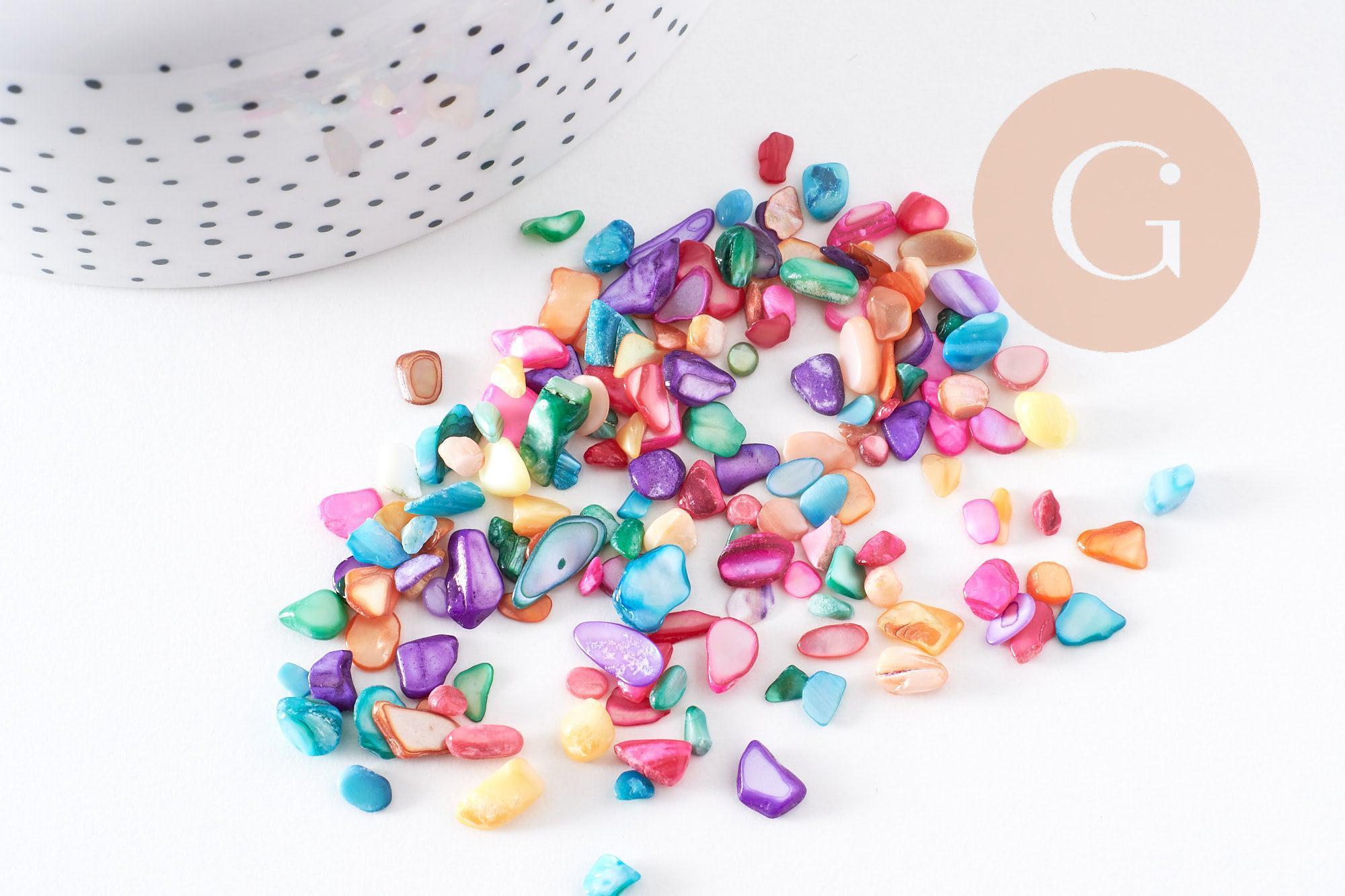Sable coquillage nacre, fournitures créatives, nacre coloree, coquillage naturel, pierre semi-precieuse, création bijoux, Sachet 20 grammes