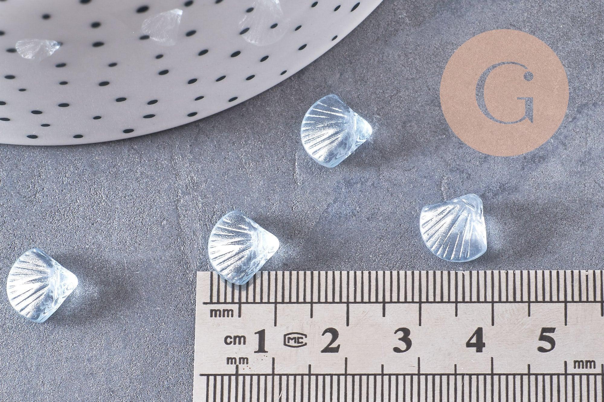 Perle coquillage verre transparent bleu, perles verre tchèque, perle coquille verre bleu, x10 (G5441)