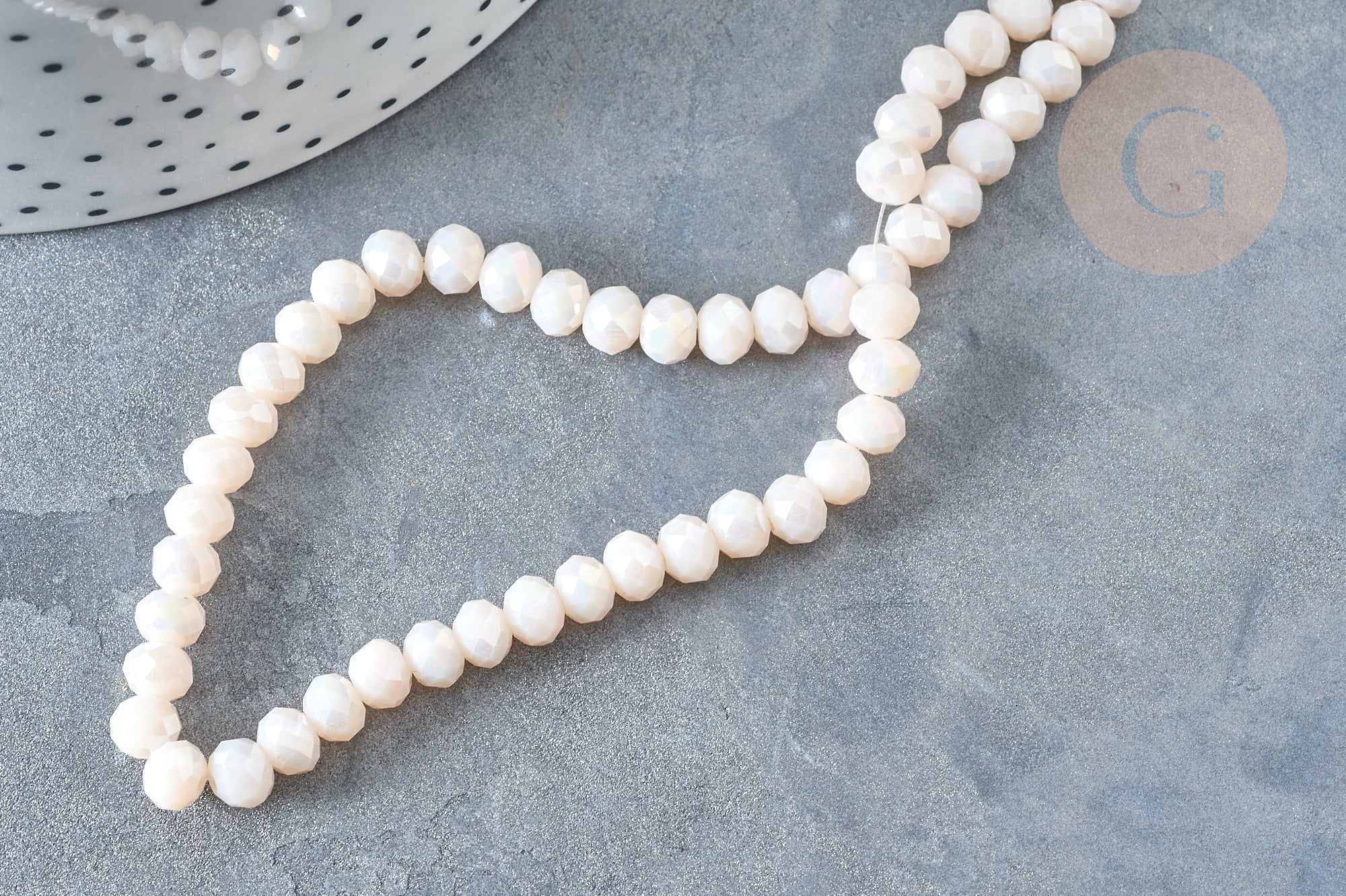 Craquez pour ces perles en verre opaque beige en forme de rondelle pour créer des bracelets fantaisie élégants.