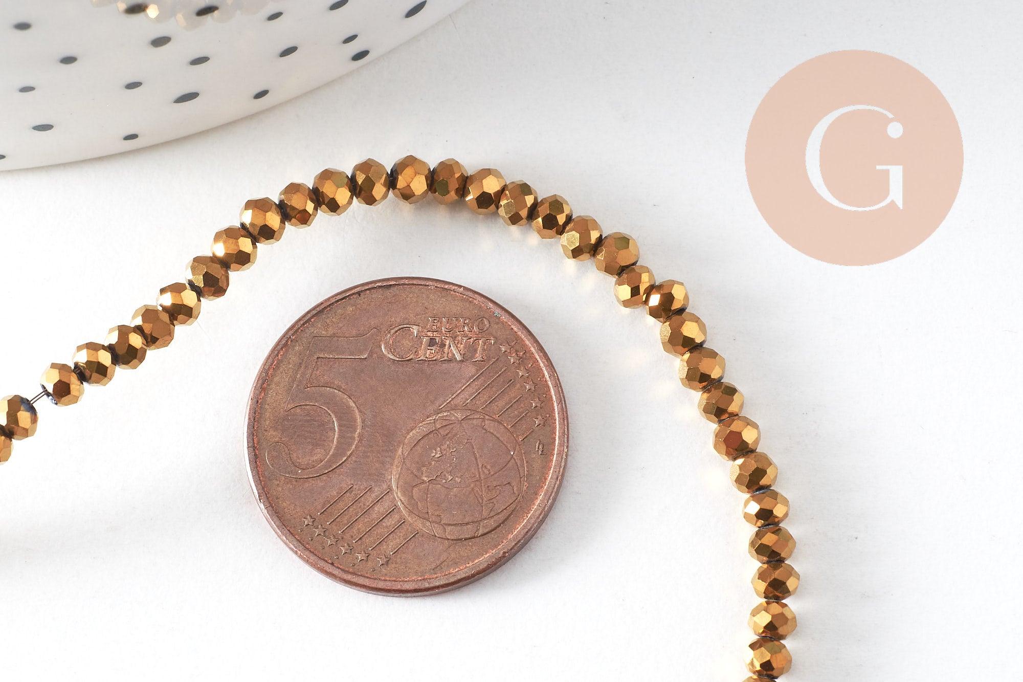 Perles toupies cristal doré irisé, perles bijoux, perle cristal,Perle verre facette,création bijoux, fil de 180,3x2mm, x1 (G4686)