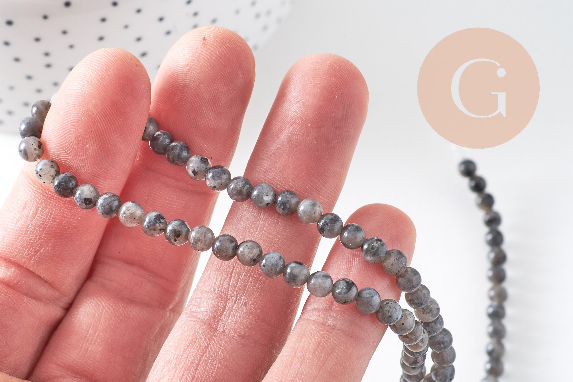 Succombez au charme mystérieux de la larvikite naturelle, pierre aux reflets irisés subtils allant du bleu au vert. Ce fil de perles rondes 4 à 5 mm sera parfait pour des créations pleines d’élégance et d’intuition.