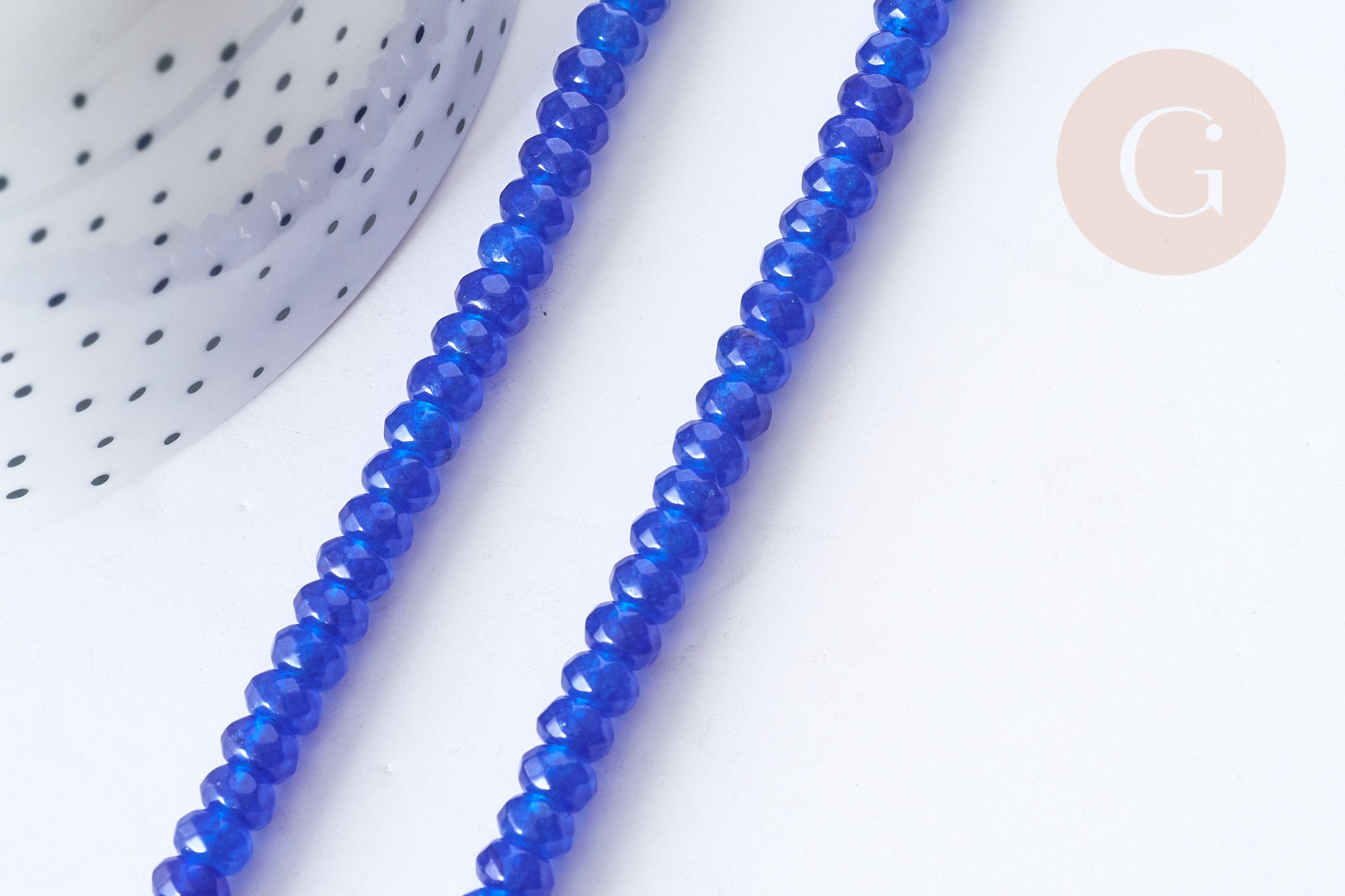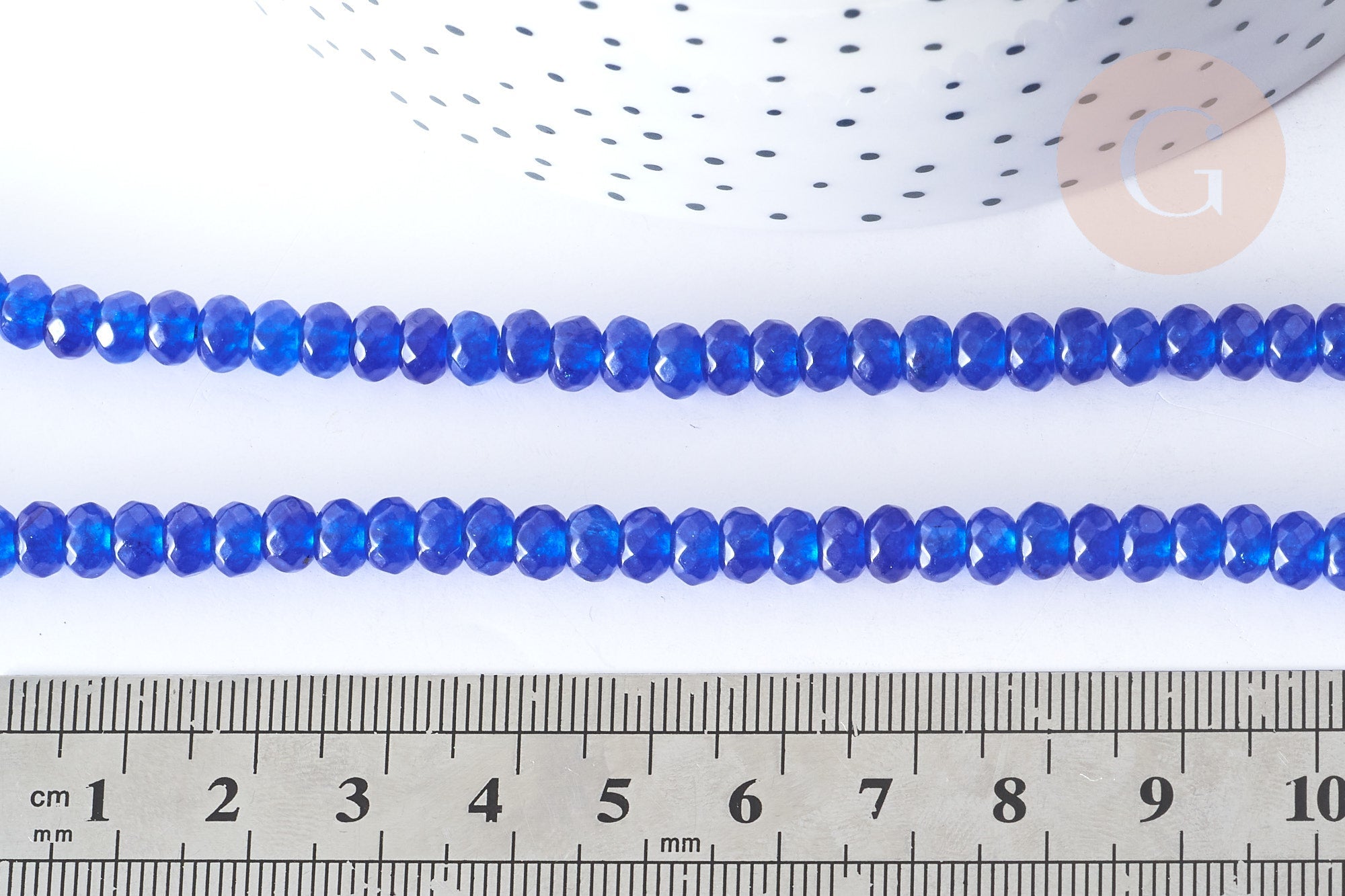 Perle Rondelle Jade de Malaisie teinté facettée bleu roi 6x4mm, création bijoux pierre, le fil de 37.5cm (G7872)