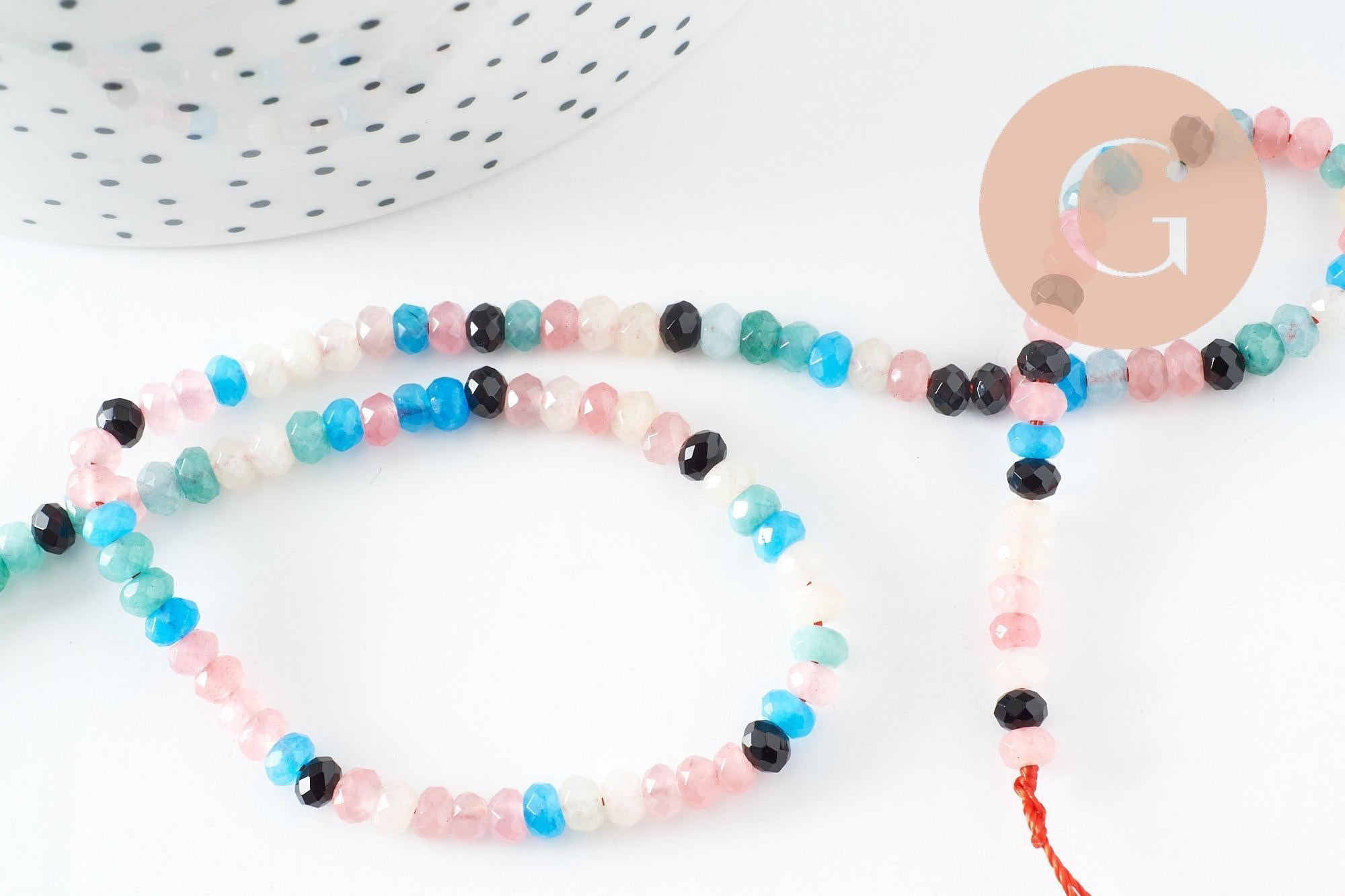 Perle rondelle jade multicolore pastels,perle jade,pierre naturelle,perle facette,jade,5x3mm,fil 135 perles, x1 (G5178)