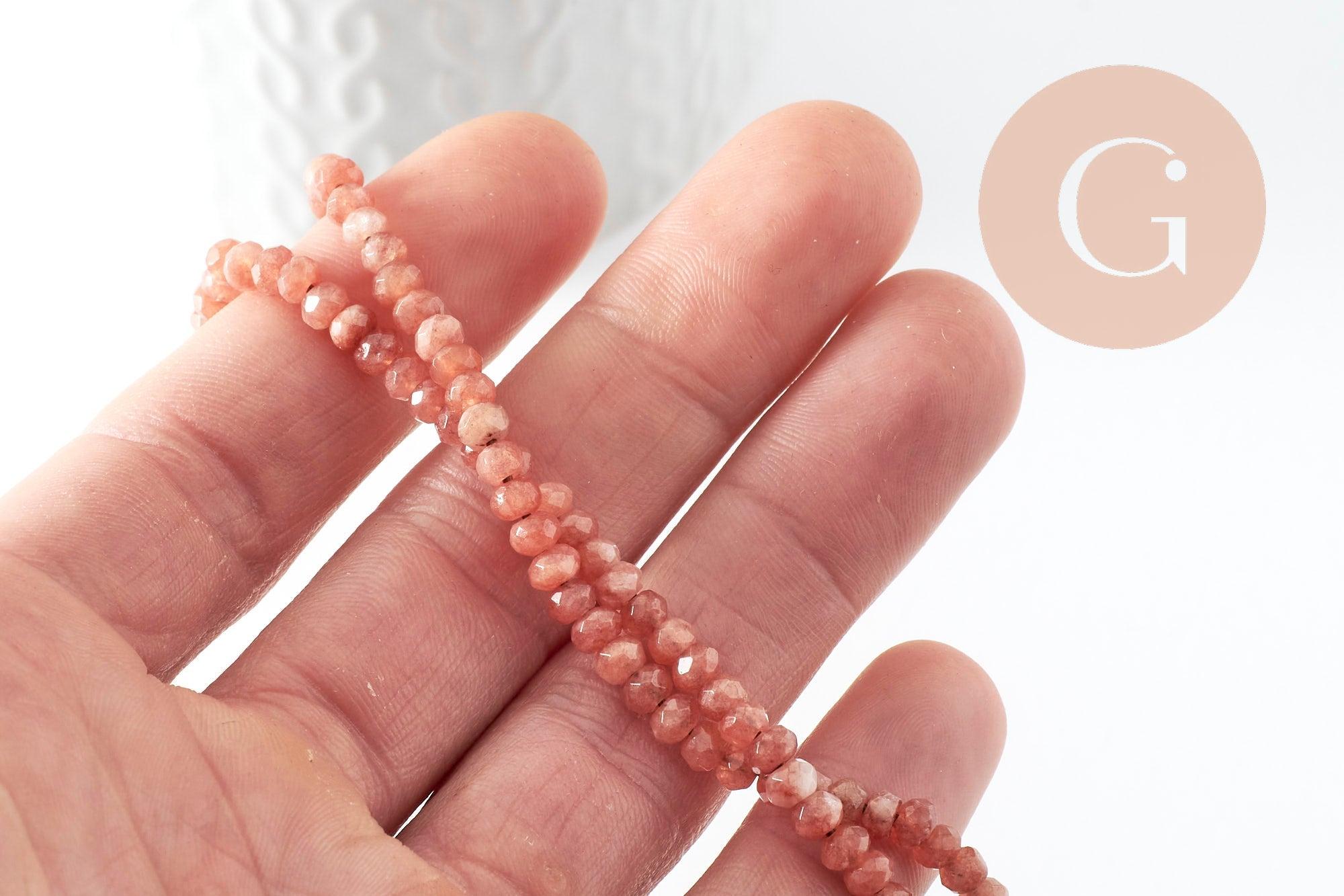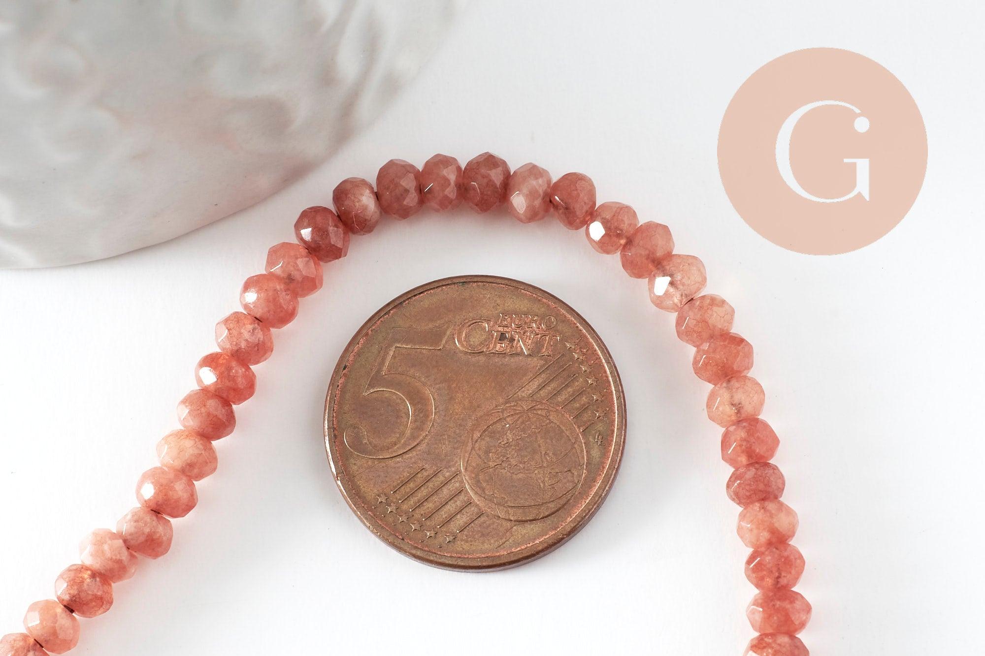 Un fil de 36 cm en perles facettées en jade teinté en rose.