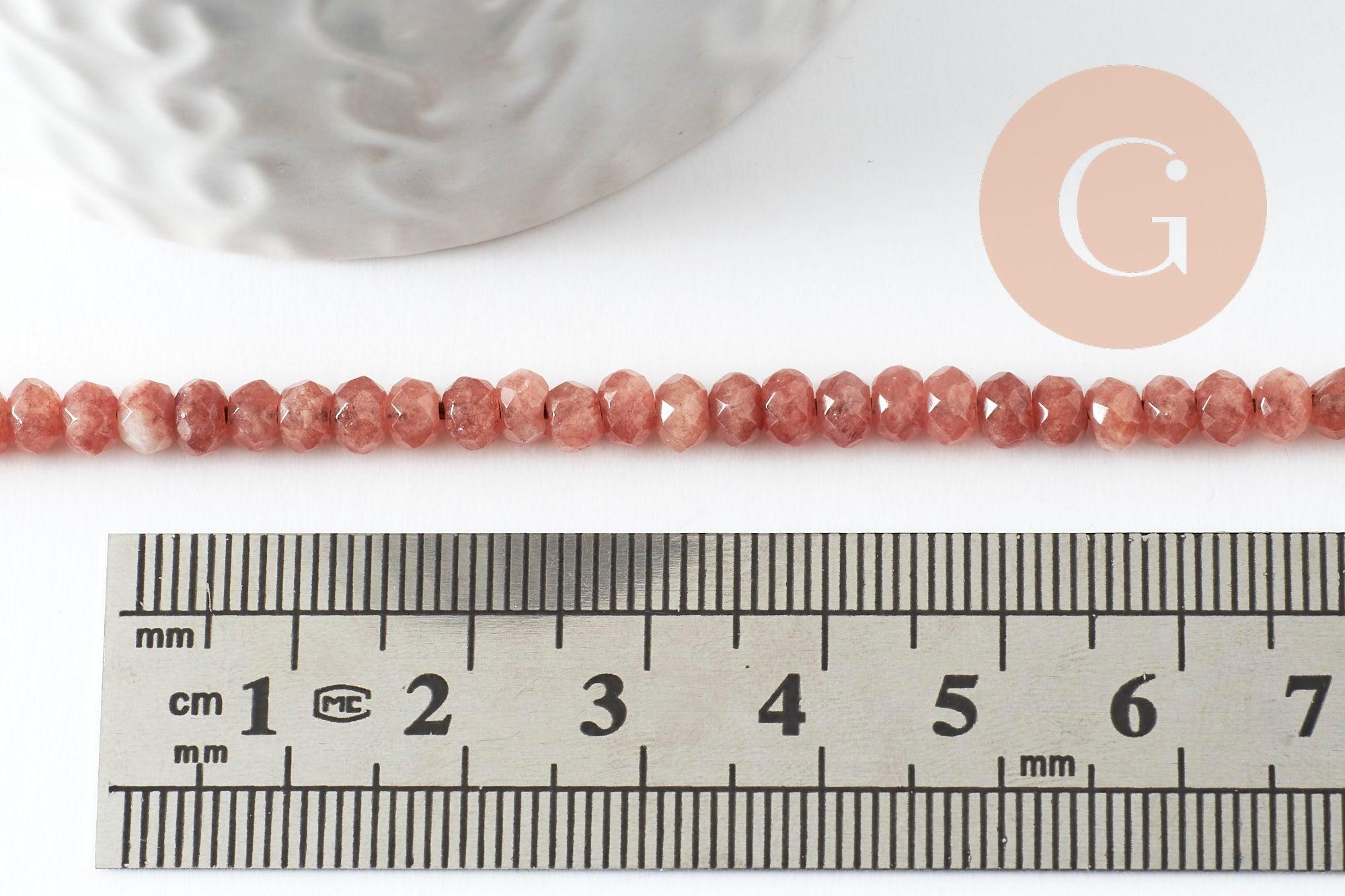 Perle rondelle jade rose,perle jade,pierre naturelle,perle facette,jade,5x3mm,fil de 36 cm, x1 (G3052)