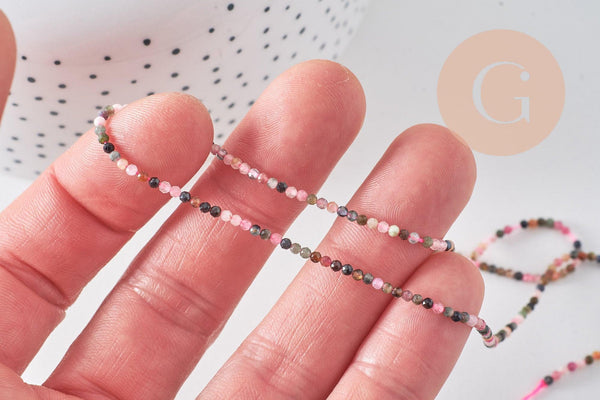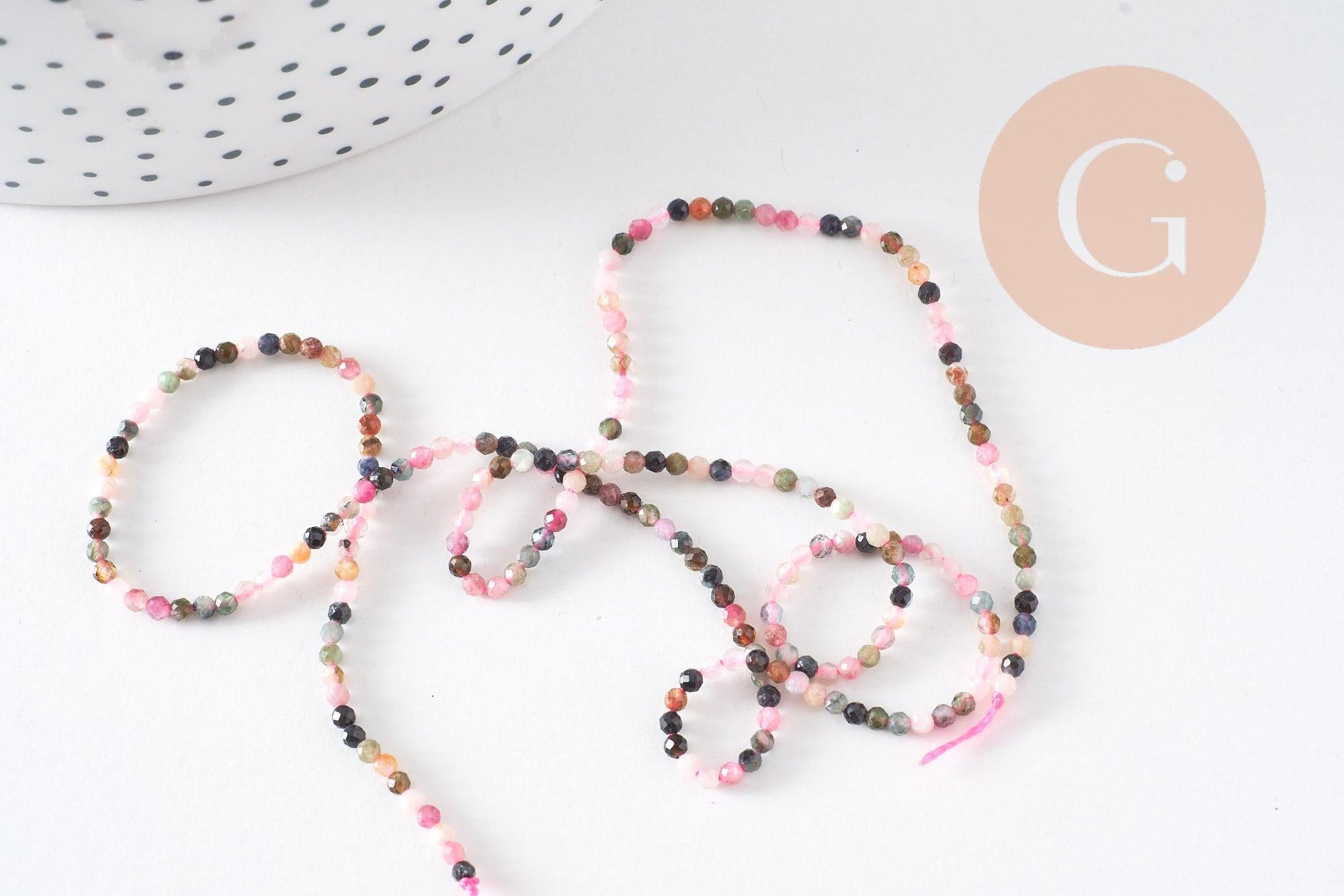 Ajoutez une touche de magie minérale à vos créations avec ces sublimes perles rondes facettées en tourmaline naturelle. Chaque perle révèle une nuance unique, allant du vert doux au rose intense, en passant par des teintes brunes et noires : un arc-en-ciel naturel pour vos bijoux DIY.