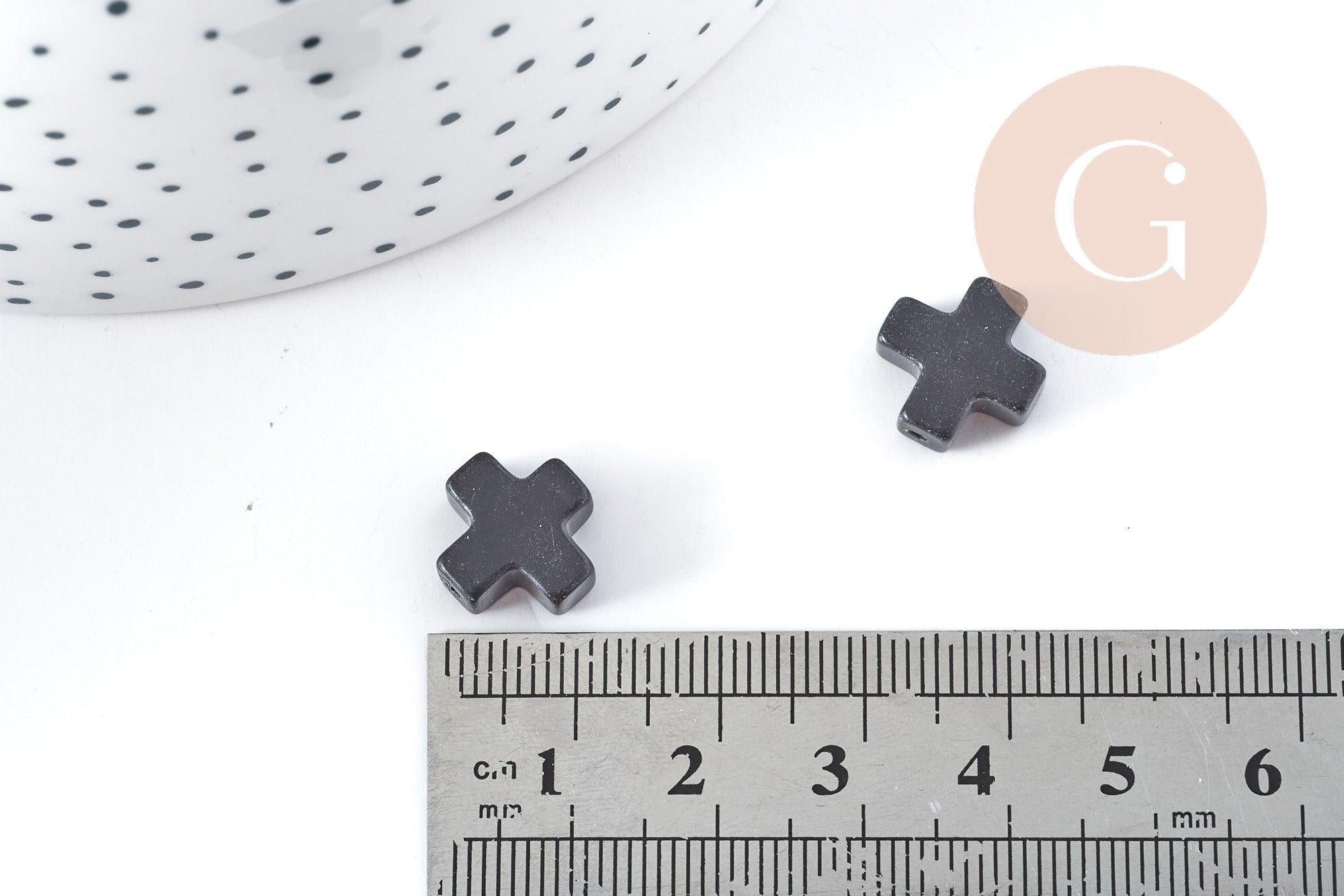 Lot de 5 perles croix en onyx noire naturelle