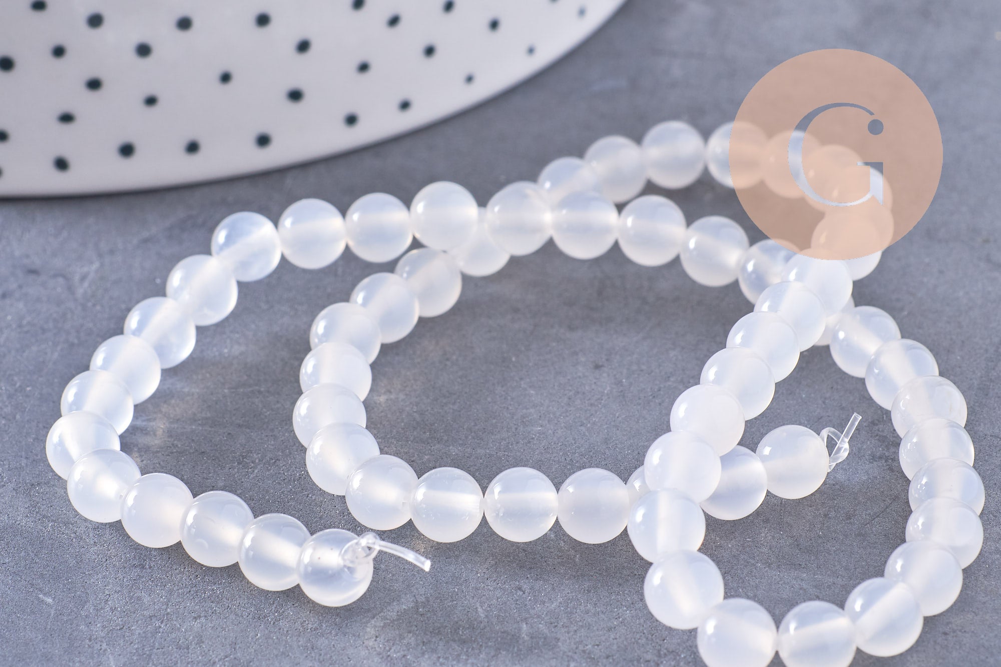 Craquez pour ces perles rondes en jade naturel teinté blanc, parfaites pour apporter de la douceur et de la lumière à vos créations DIY. Leur aspect lisse et lumineux s’associera à merveille à d'autres pierres naturelles ou à des apprêts dorés.