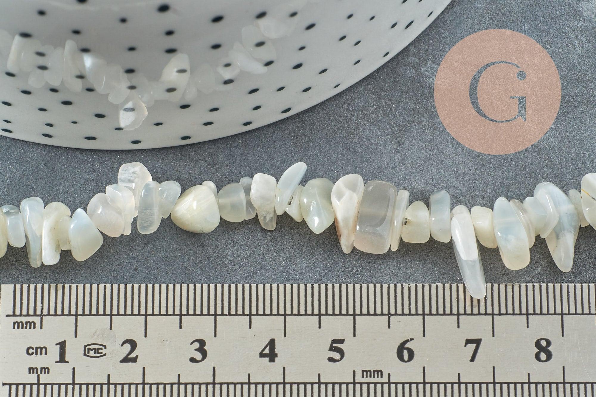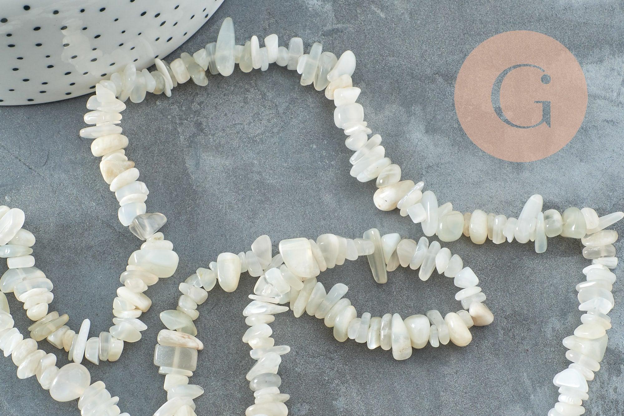 Ajoutez de la douceur et de la lumière à vos créations avec ces perles nuggets en pierre de lune naturelle. Leur couleur blanche aux reflets irisés évoque la lueur de la lune et apporte une touche mystique à vos bijoux faits main.