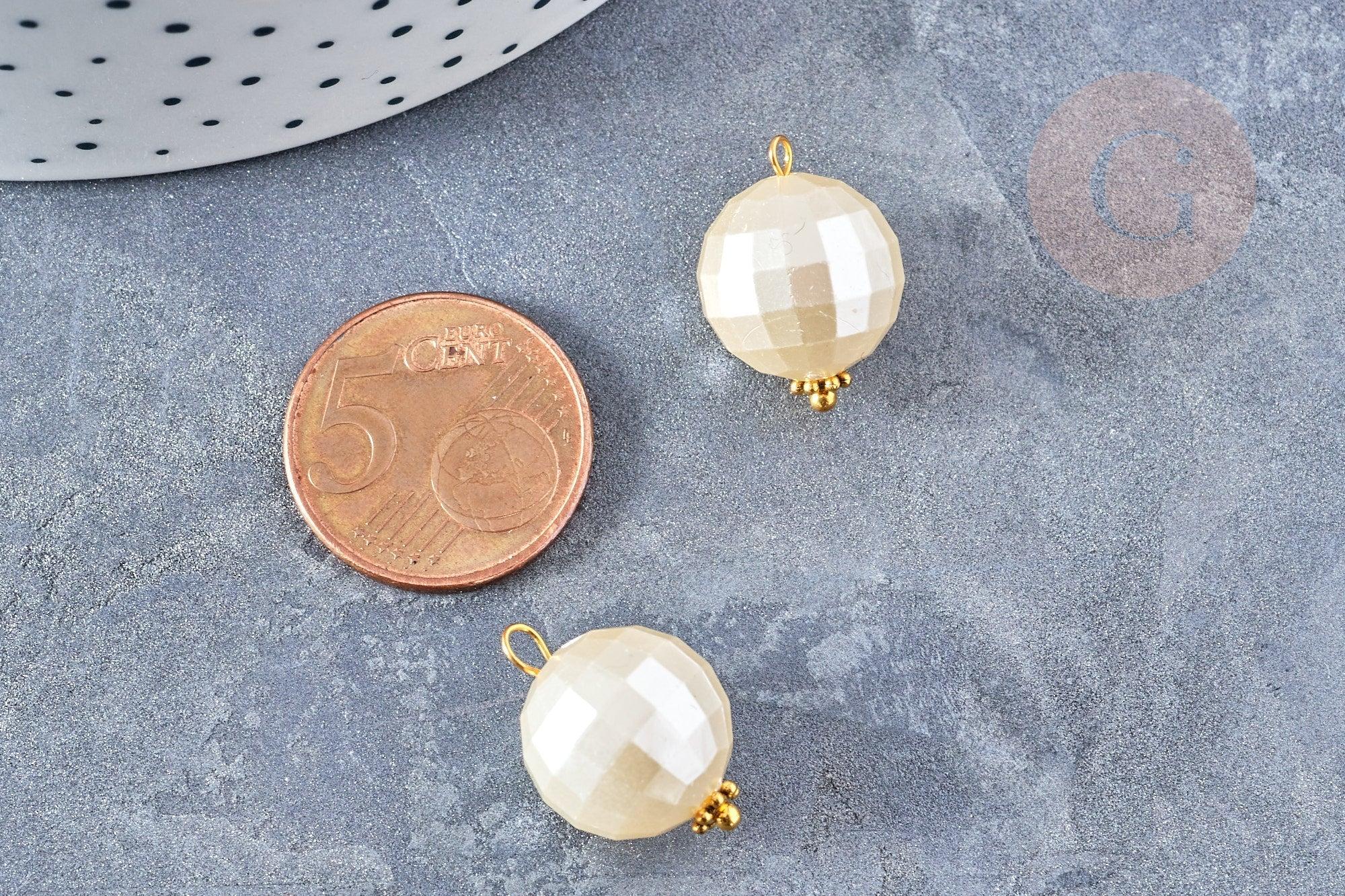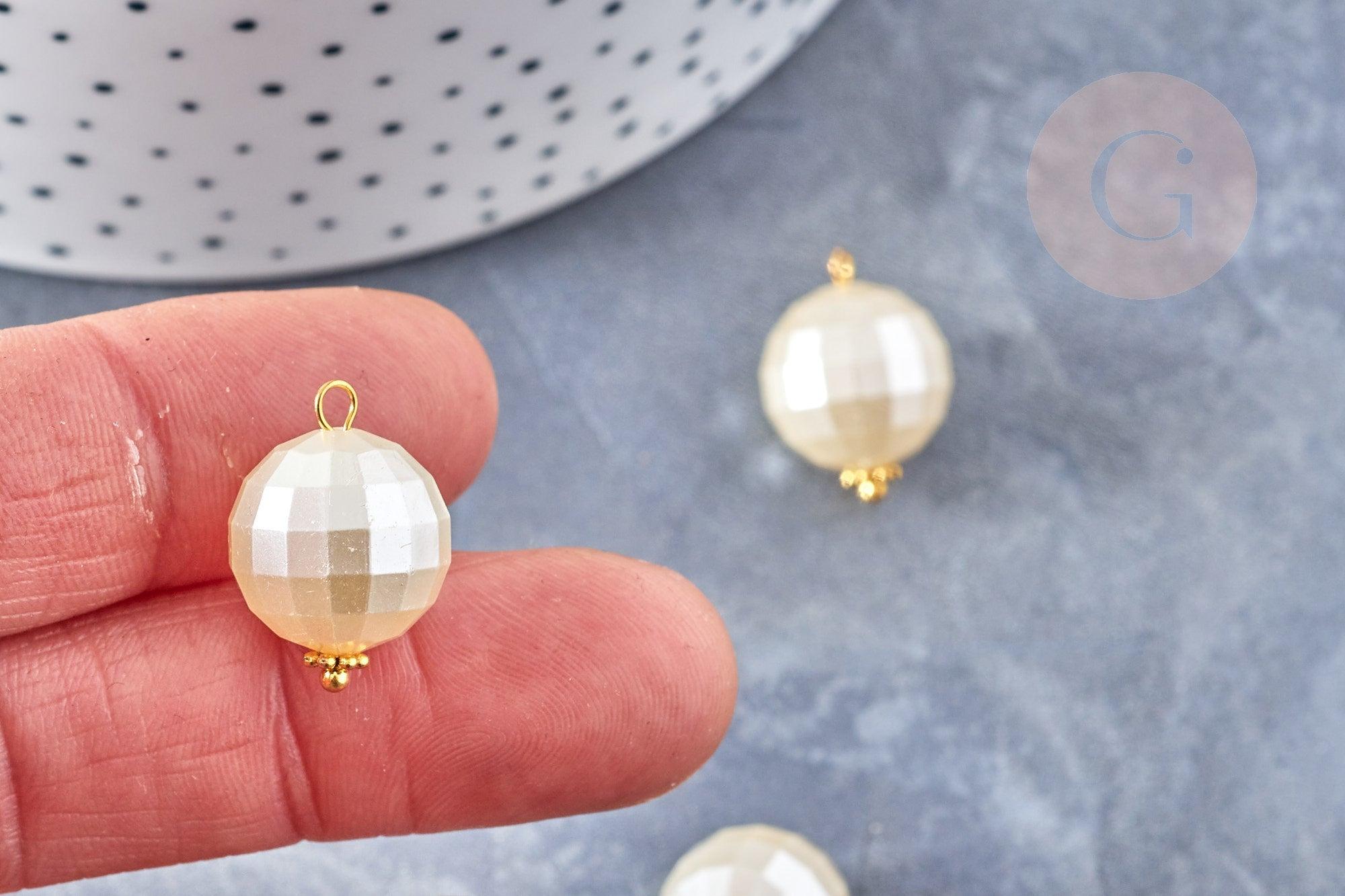 Pendentif perle ronde facettée plastique blanc nacré 20mm , perle plastique blanc nacré, x10 perles (G8542)