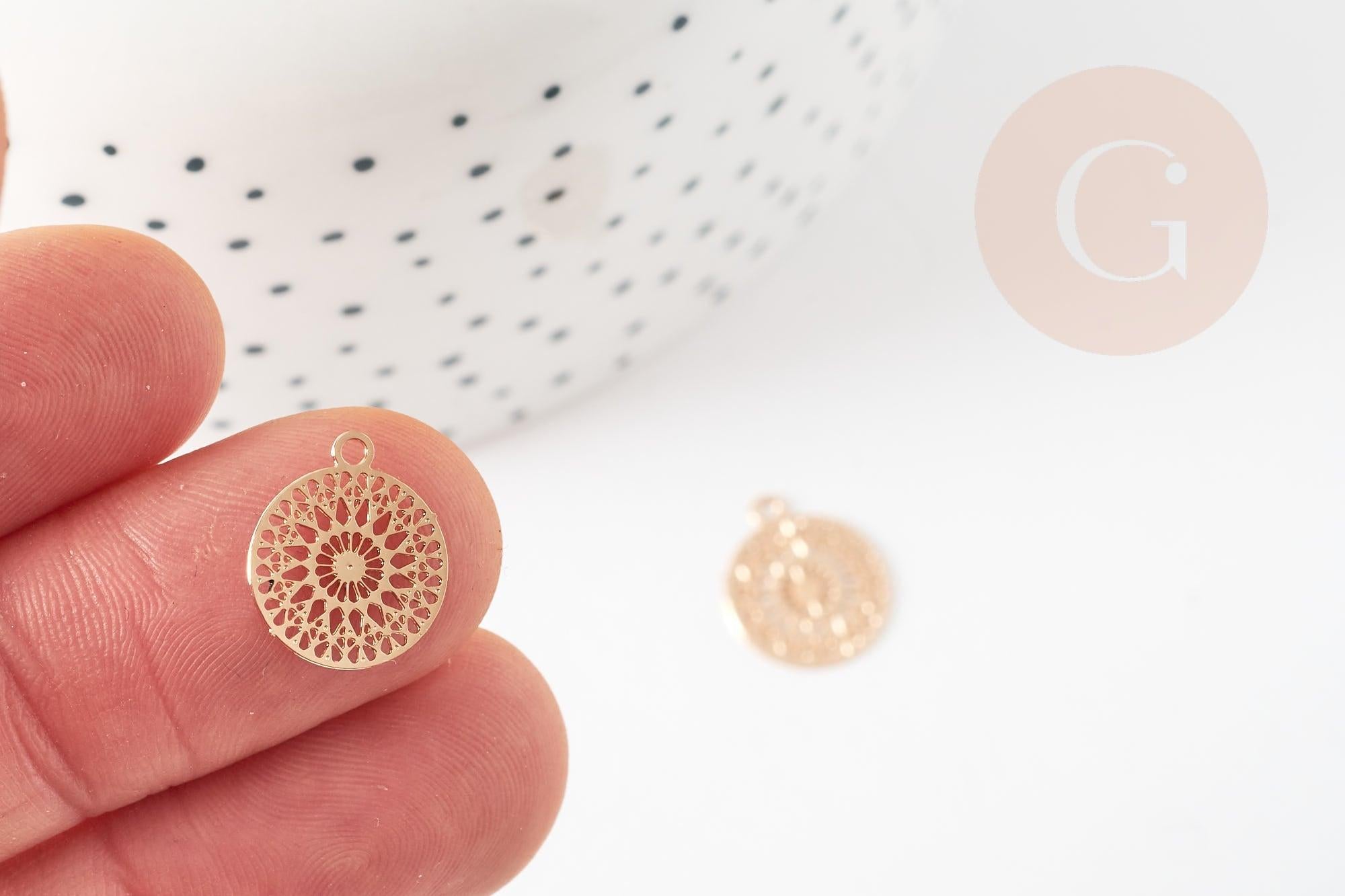 Avec ces délicats pendentifs estampes filigranes en forme de fleur en laiton doré clair de 14mm, ajoutez une touche d'élégance à vos créations de bijoux or.
