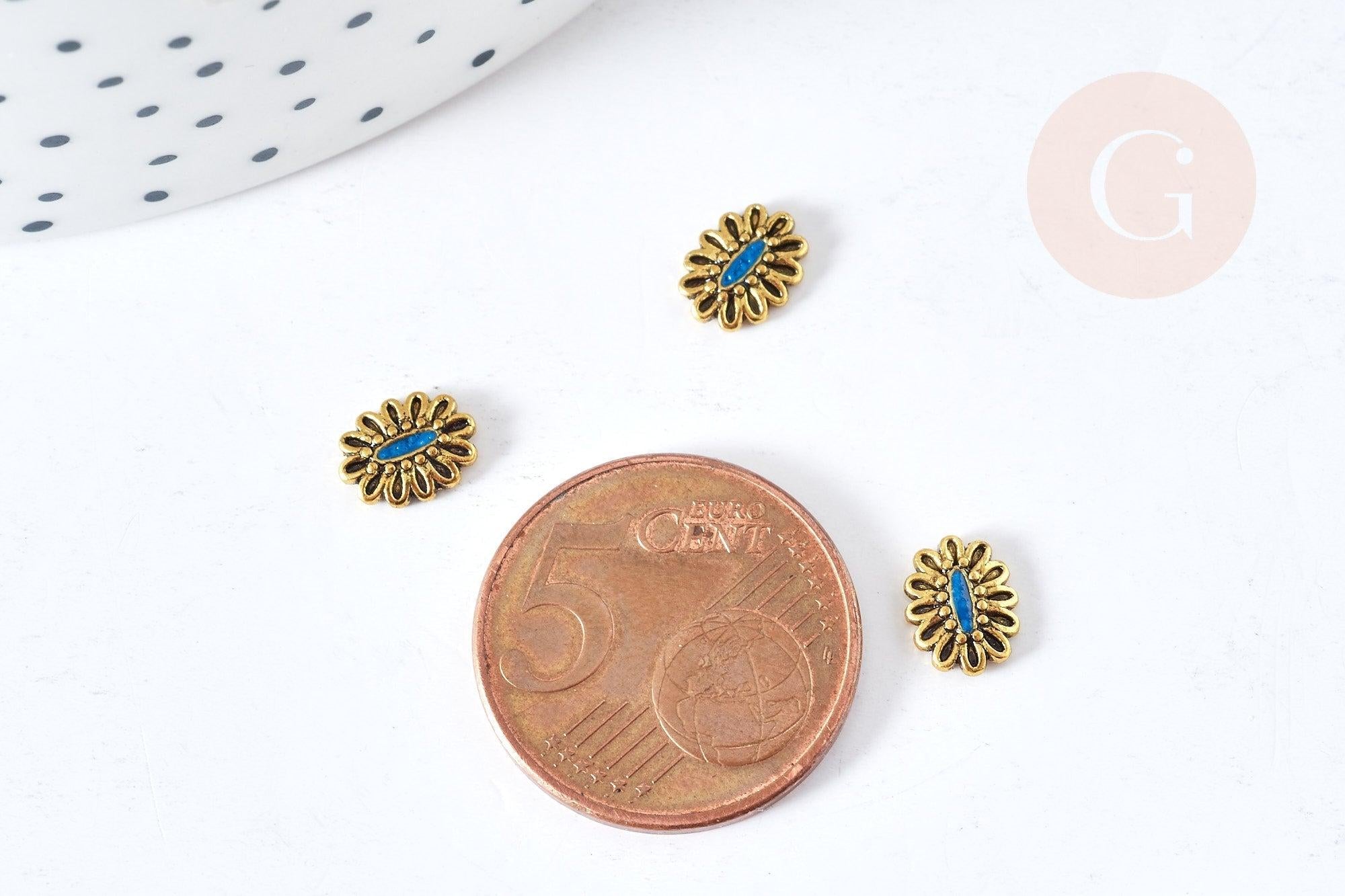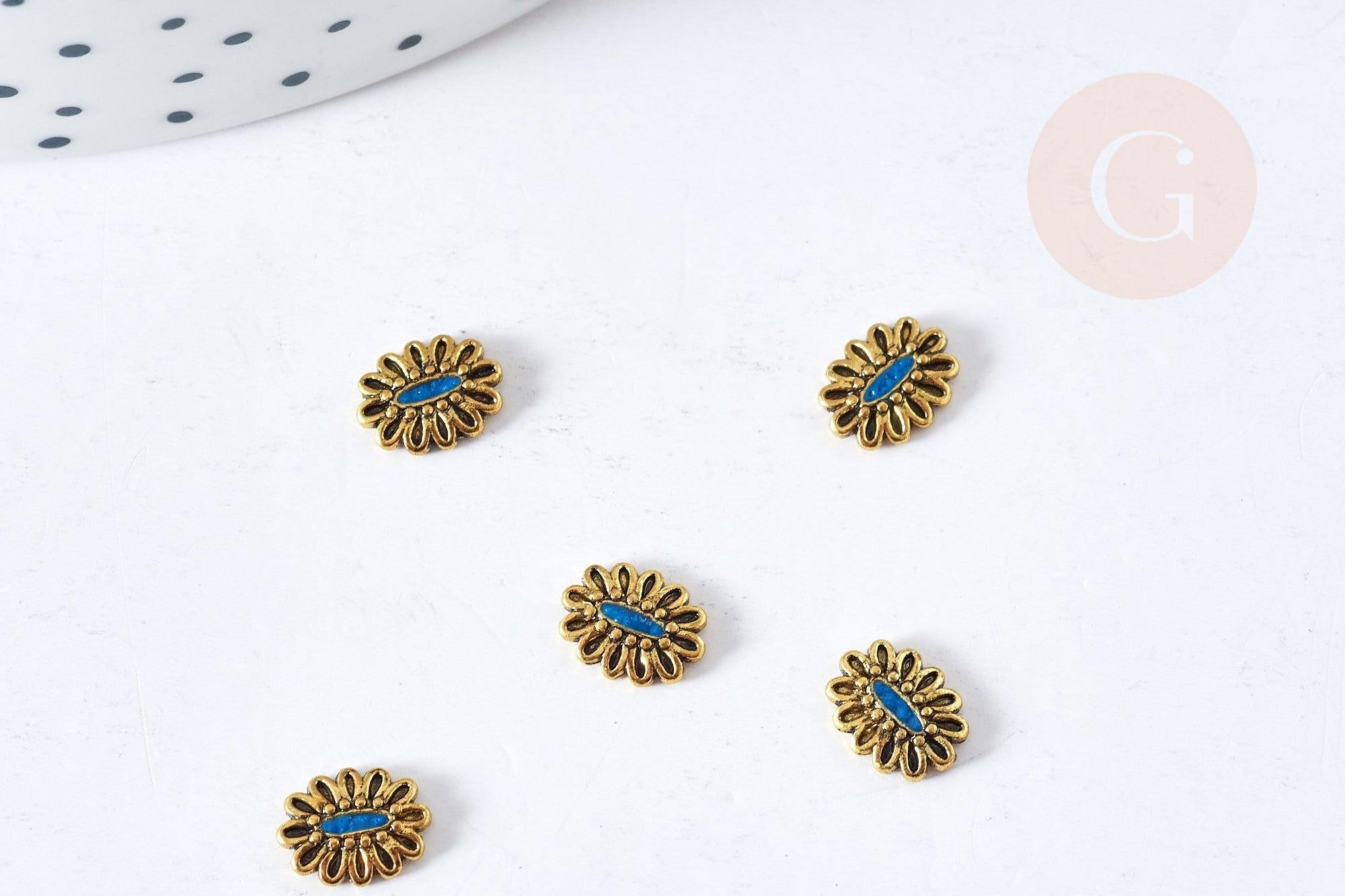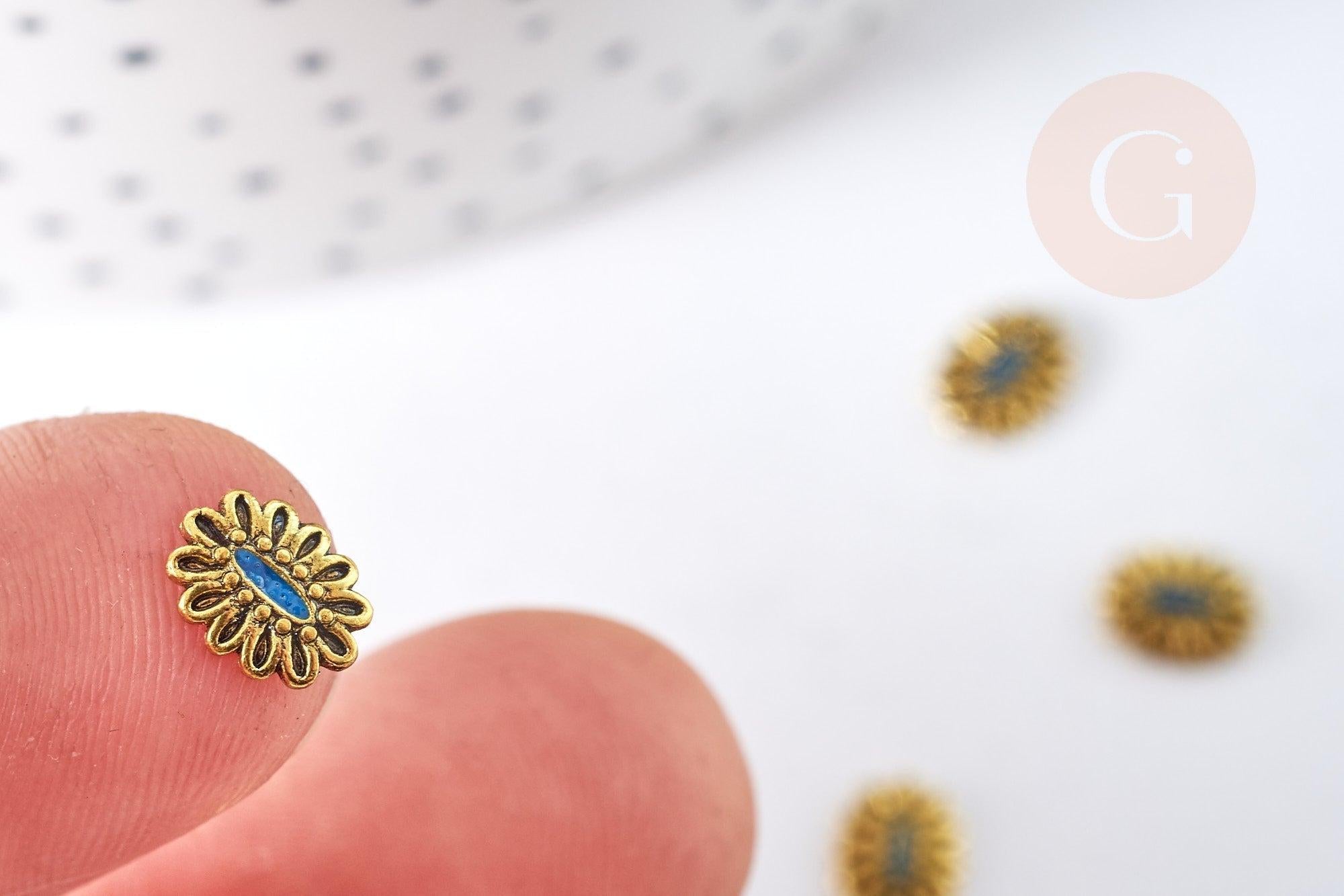 Personnalisez vos bijoux fantaisie DIY avec ces charmants charms à coller fleurs ovales en zamac bronze émaillé de bleu de 8mm. Utilisez-les pour décorer vos cabochons, vos pierres et vos bijoux pour des créations uniques et originales.