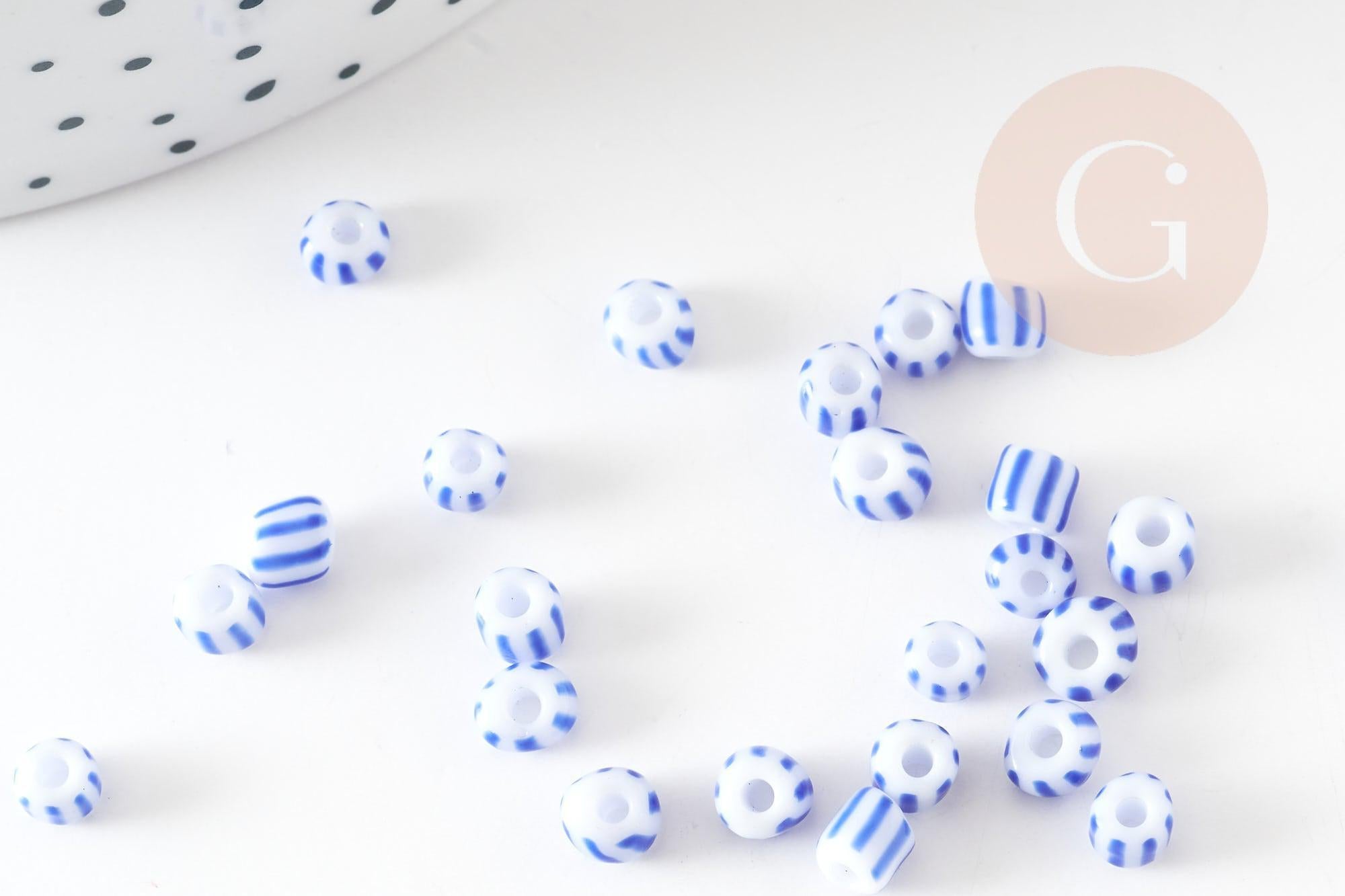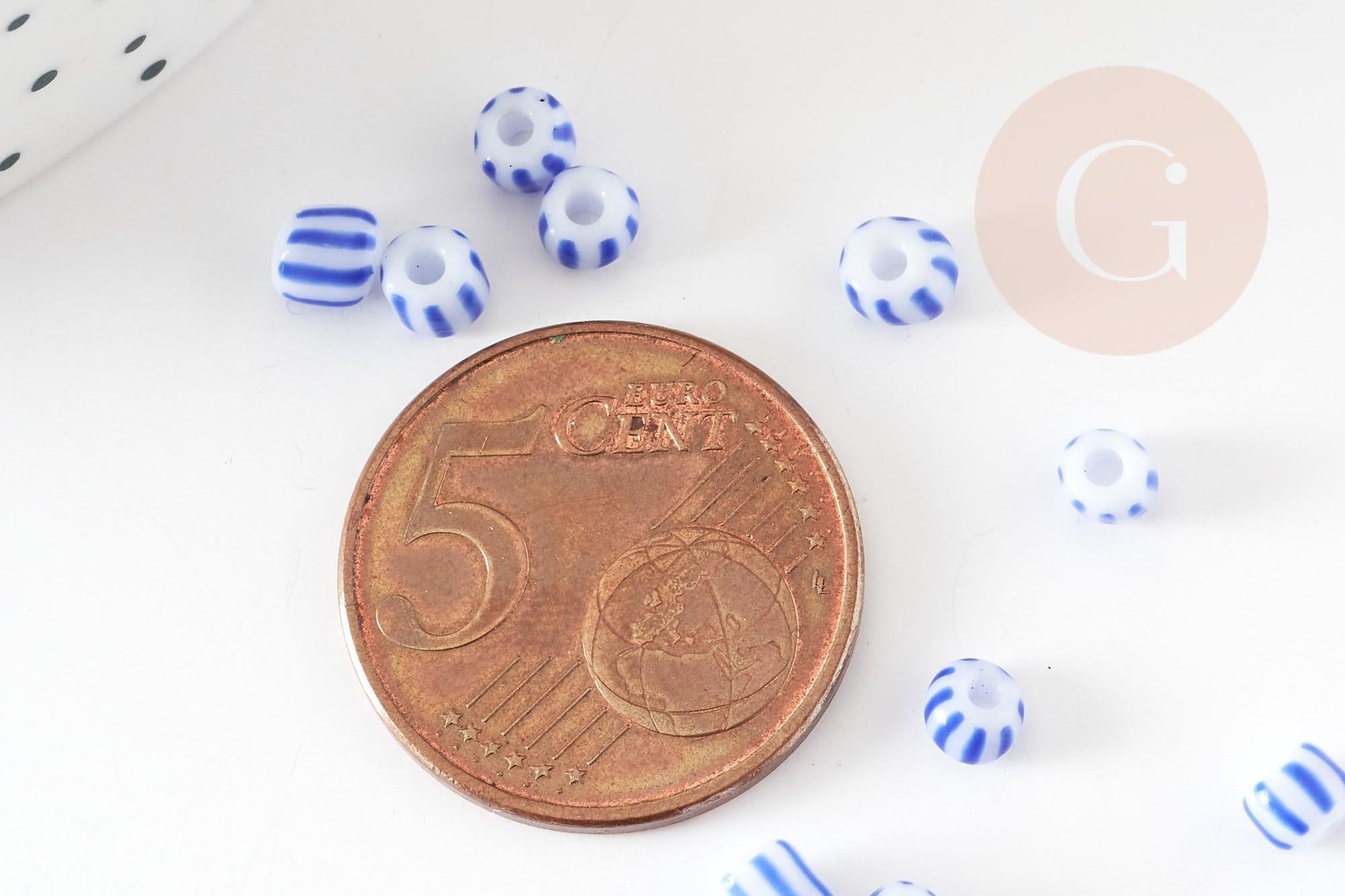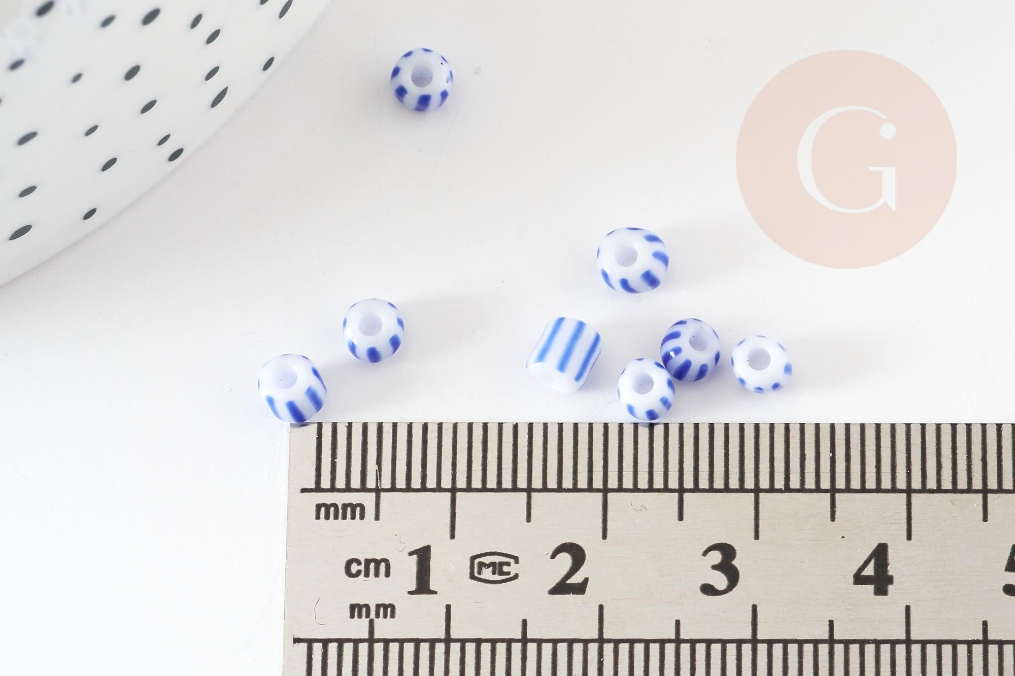 Découvrez nos grosses perles rocaille rayées bleu-blanc de 3 à 4,5 mm, des perles rocaille bicolore idéales pour la création de bijoux. Cet ensemble contient 10 grammes de perles rocaille multicolores rayées, parfaites pour ajouter une touche de couleur et de texture à vos créations.