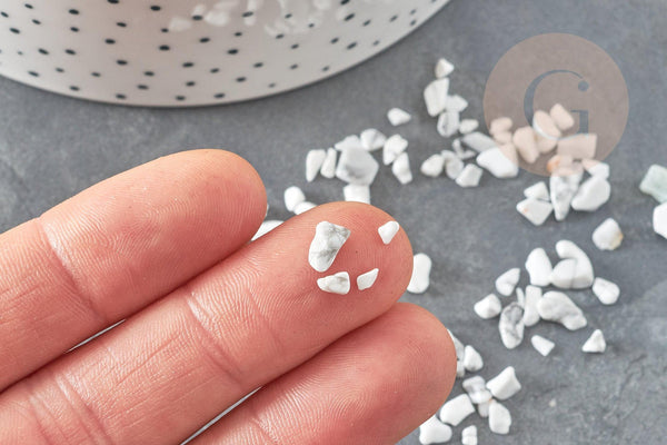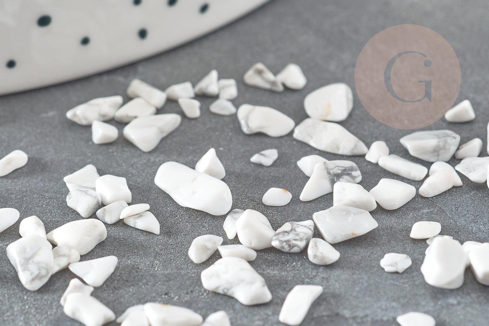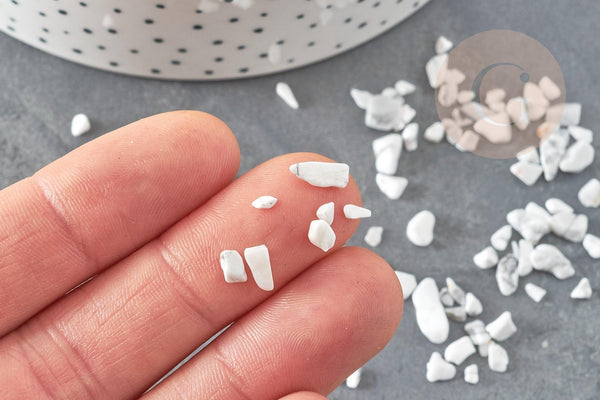 Sable howlite blanche, fournitures créatives, chips minéral, howlite naturelle, pierre semi-précieuse, création bijoux, Sachet 20 grammes