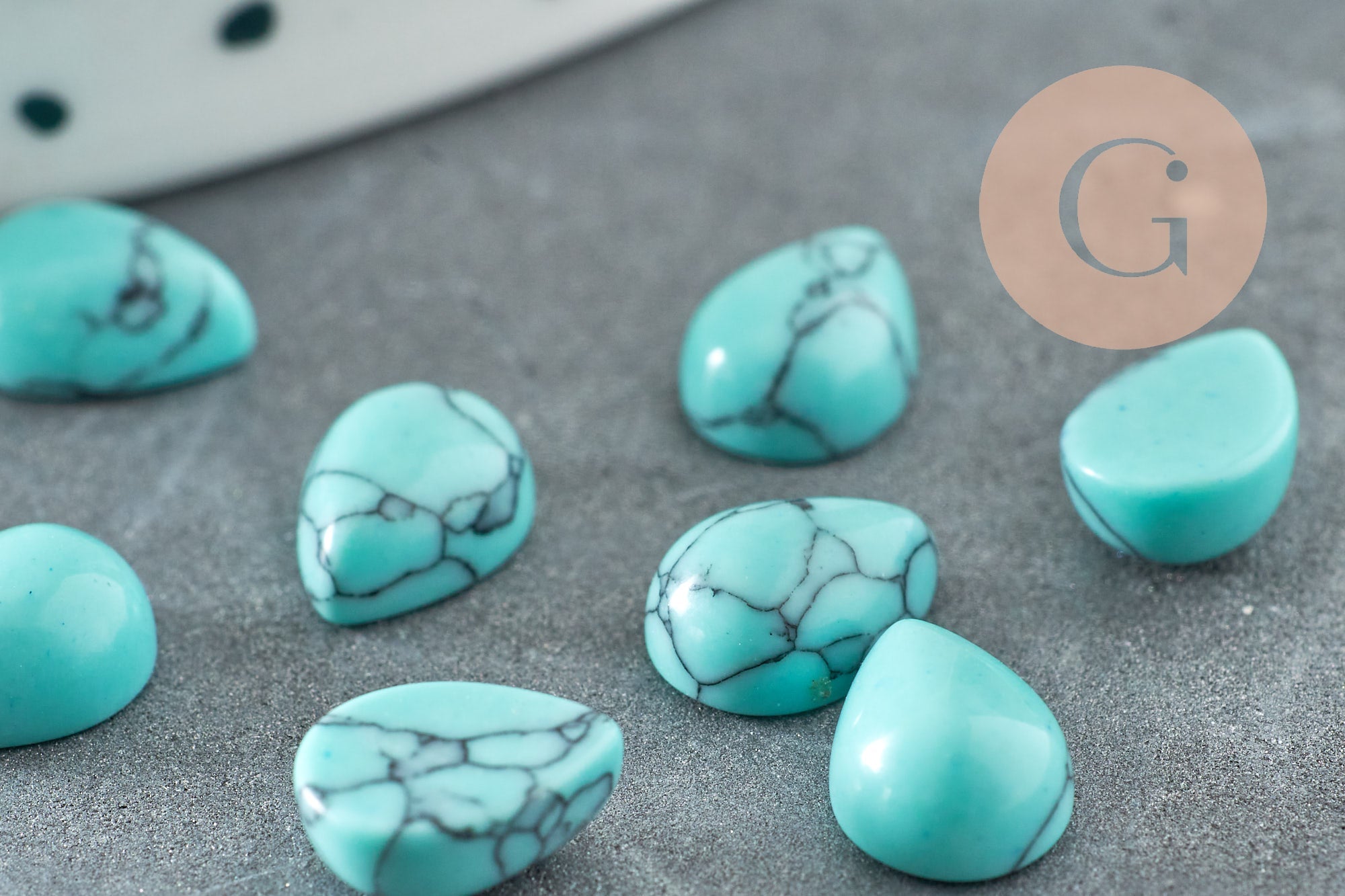 Craquez pour ce cabochon en turquoise de synthèse polie, idéal pour composer de nombreux bijoux fantaisie DIY.