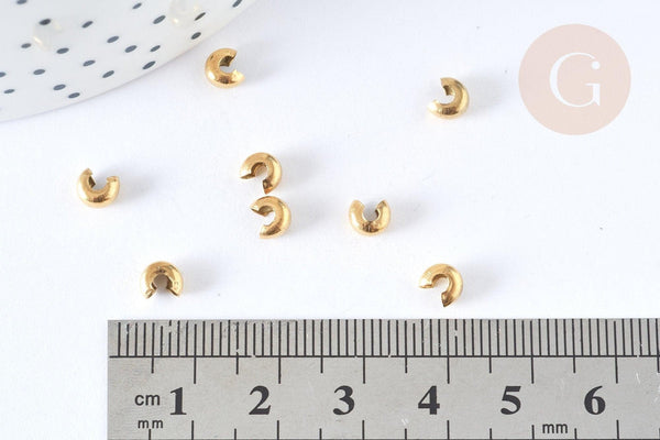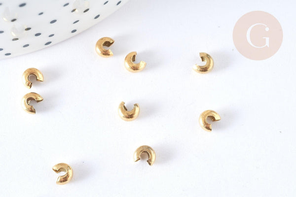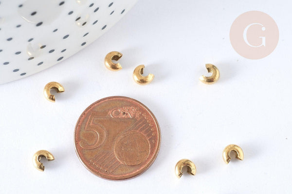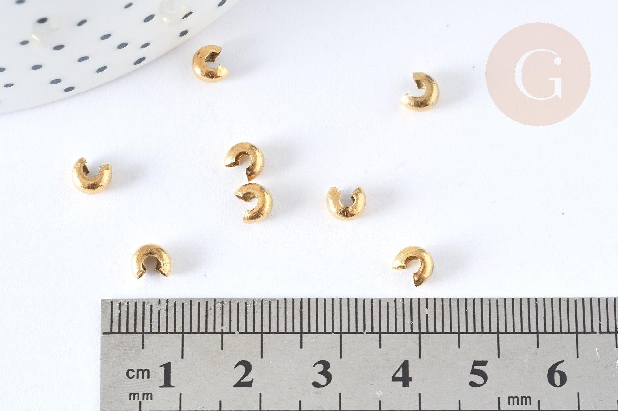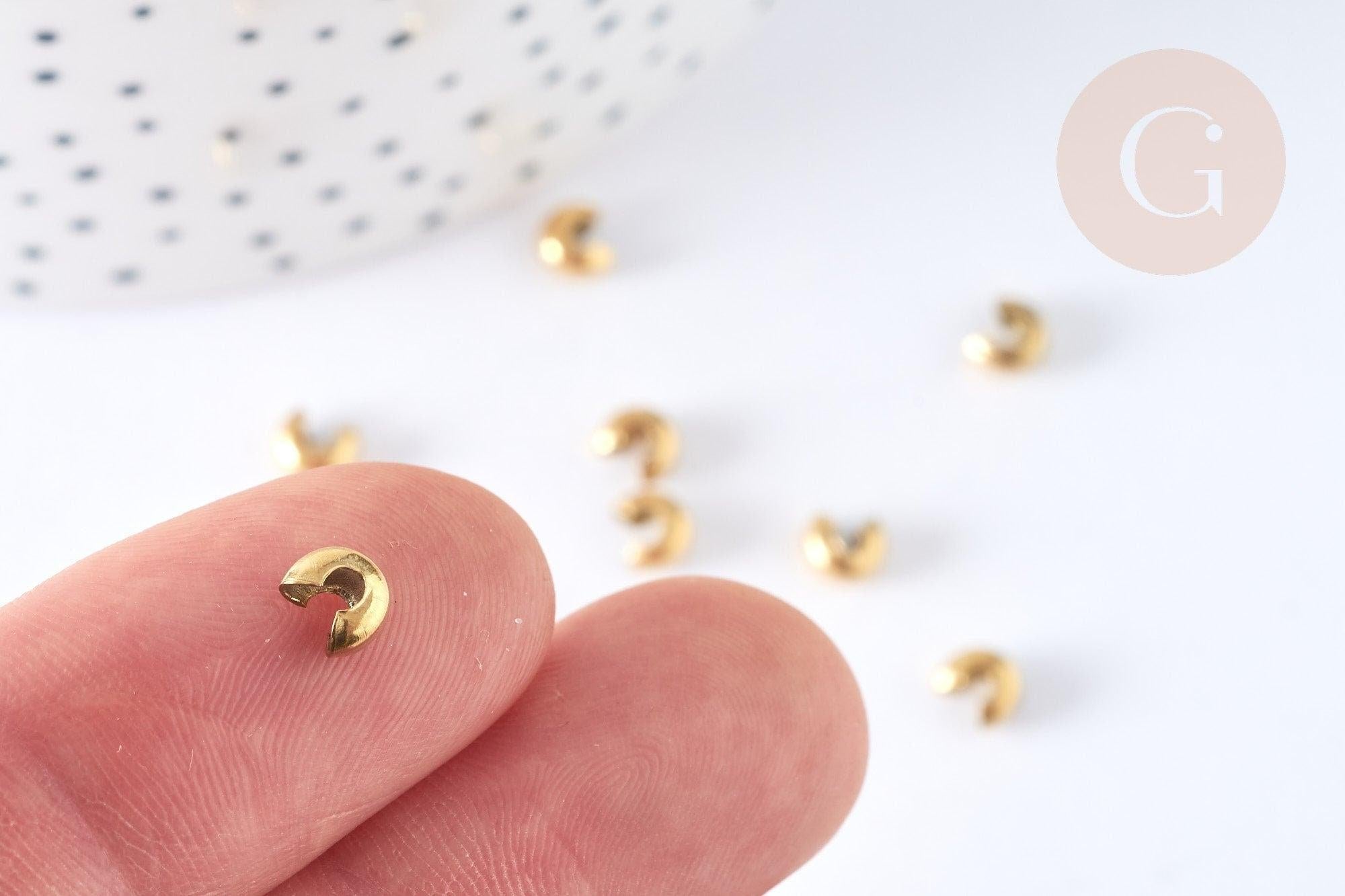 Ajoutez une finition professionnelle à vos bijoux DIY avec ces cache-perles à écraser en acier inoxydable doré par PVD. Discrets et élégants, ils permettent de masquer les perles à écraser et d’obtenir un rendu lisse et soigné, digne des plus belles créations.