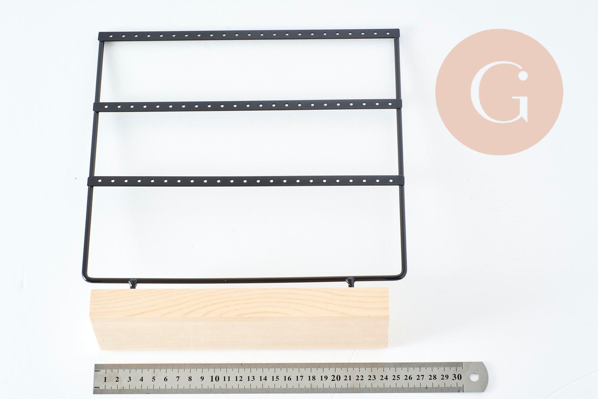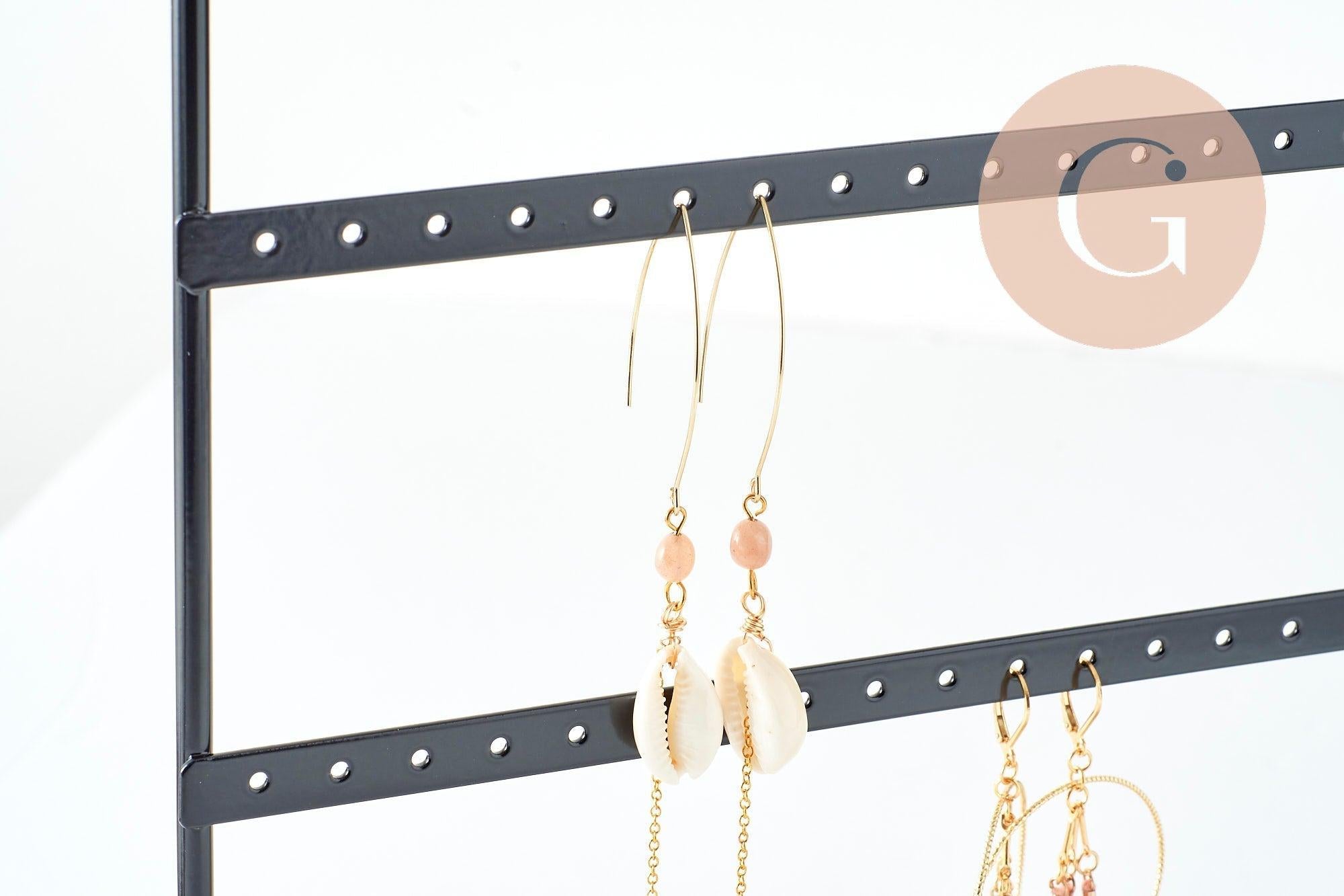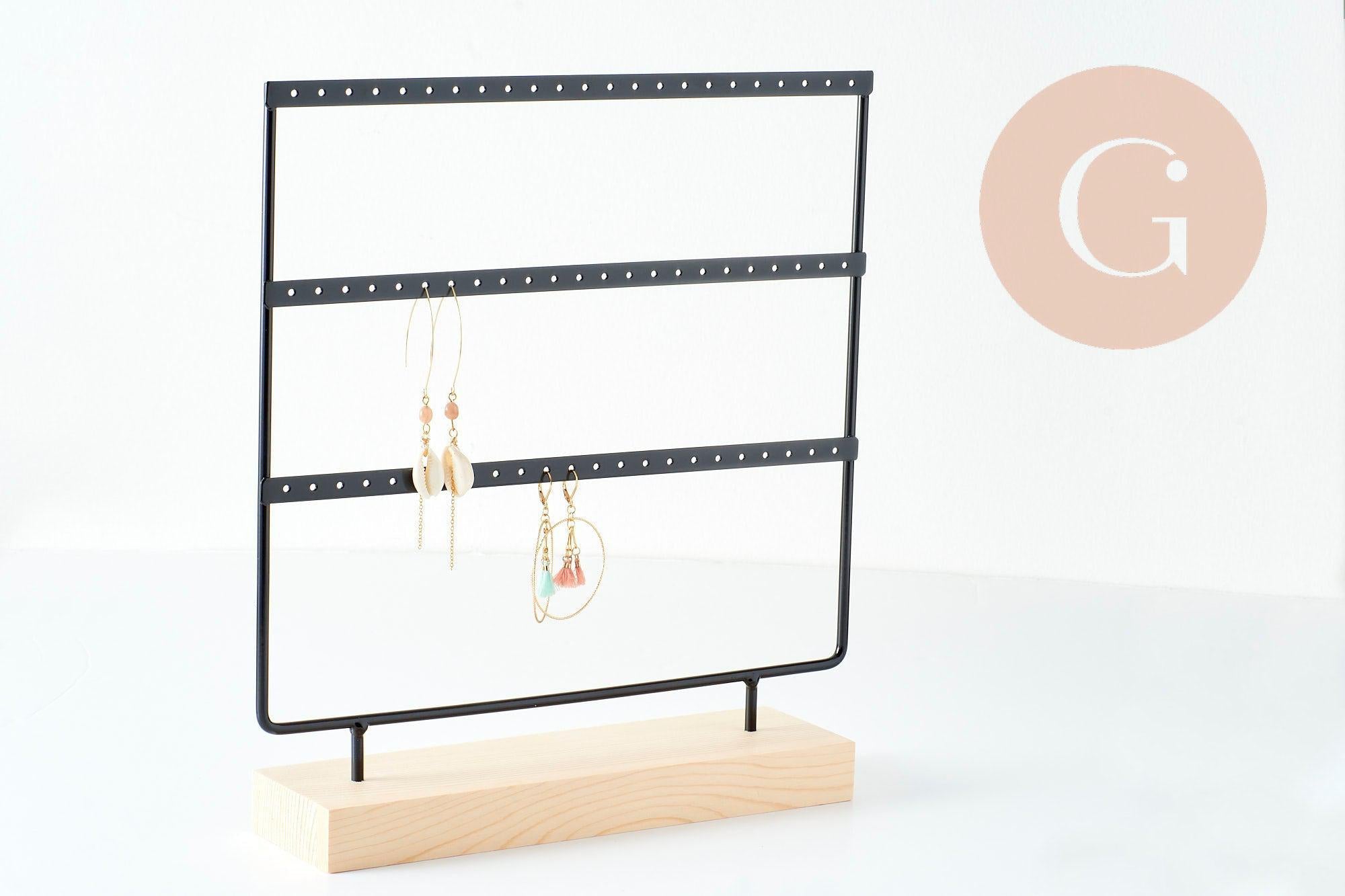 Présentoir à bijoux boucles d'oreilles laiton noir socle bois 28.5cm, x1 (G9453)