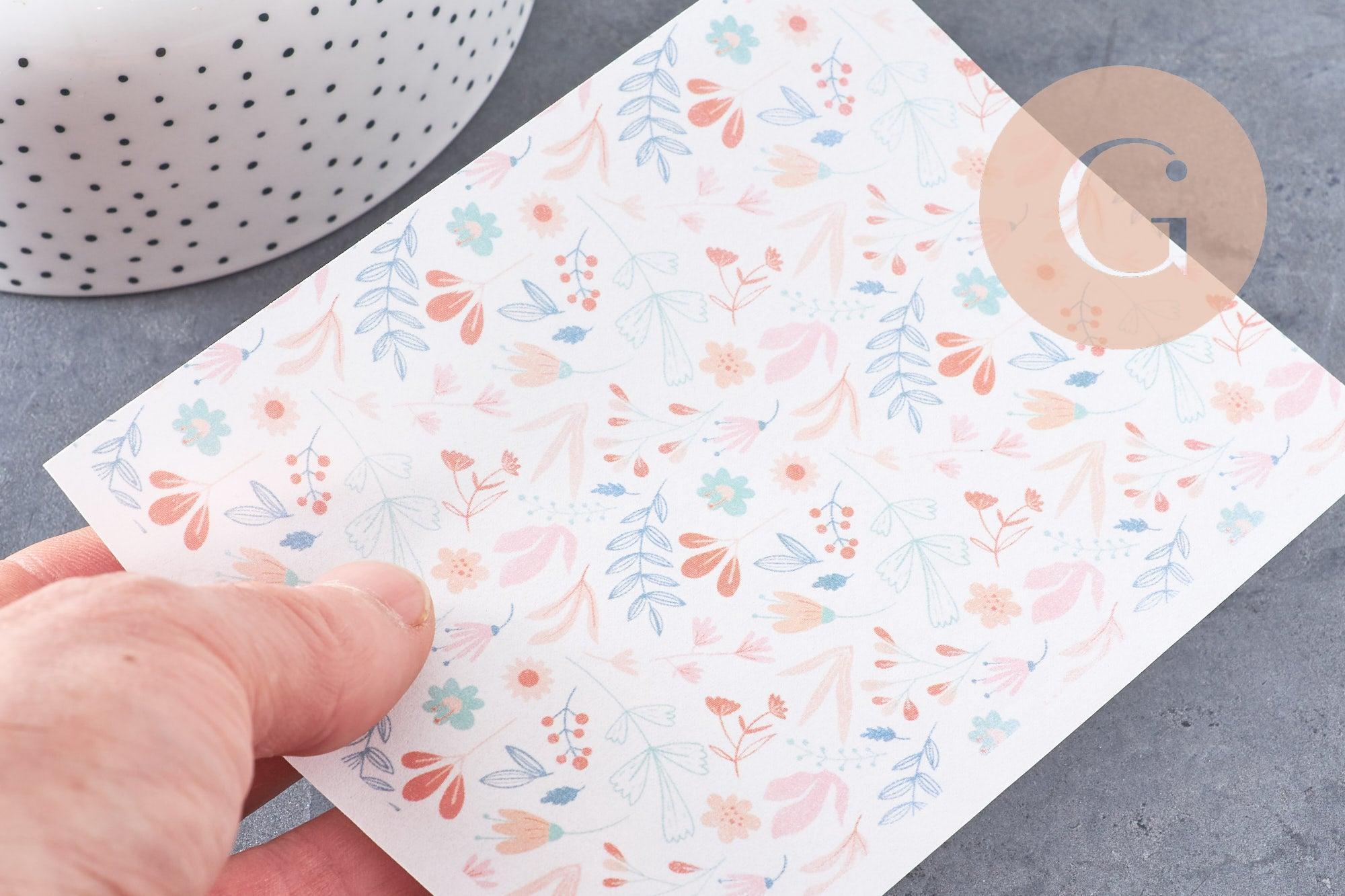 Apportez une touche douce et poétique à vos créations grâce à cette feuille de transfert spécialement conçue pour la pâte polymère. Elle présente de délicats motifs fleuris aux couleurs pastels, parfaits pour des bijoux romantiques, printaniers et élégants.