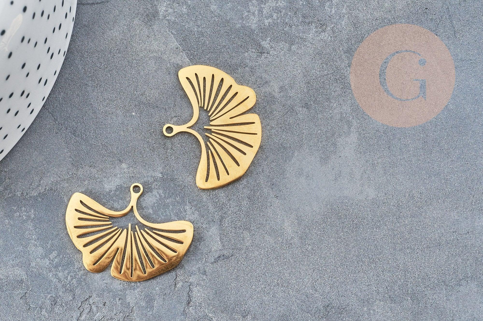 Un pendentif en acier doré en forme de feuille de gingko, une fourniture idéale pour la réalisation de vos bijoux fantaisie DIY