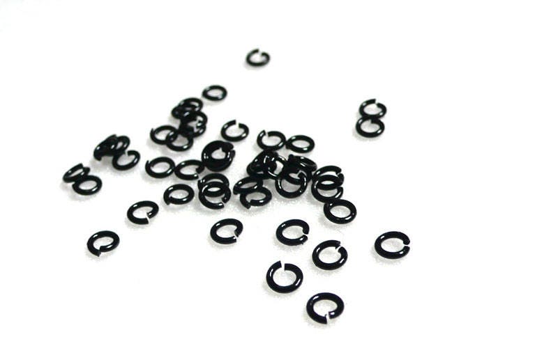 black round rings, creative supplies, open rings, black supplies, jewelry creation, lot of 50, 5mm A set of 50 open rings in intense black metal 50 rings =3.6 grams A basic to always have to make all your jewelry. guaranteed...
