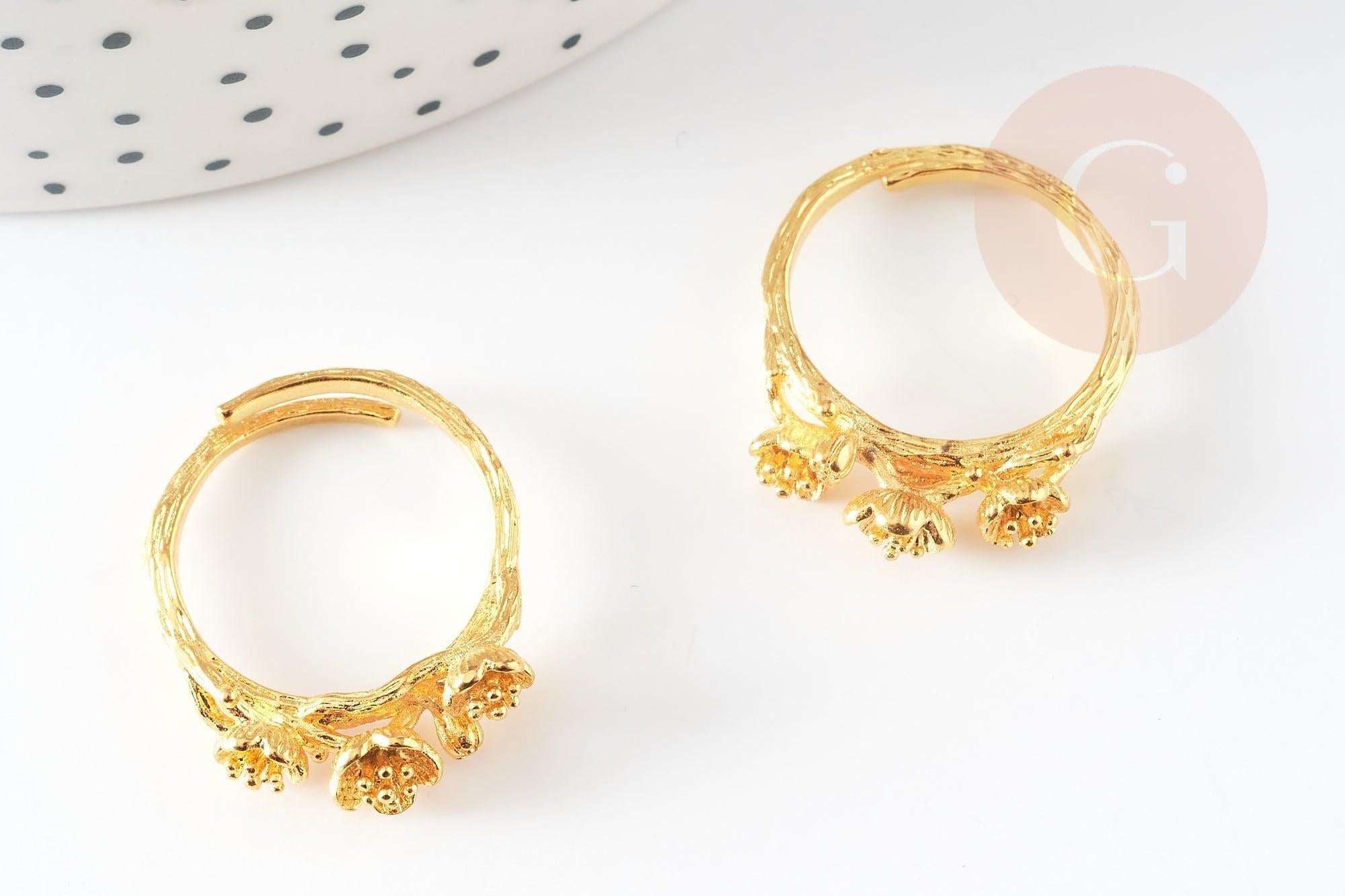 Adjustable ring three daisies gold-plated brass 17mm, x1 (G0560)