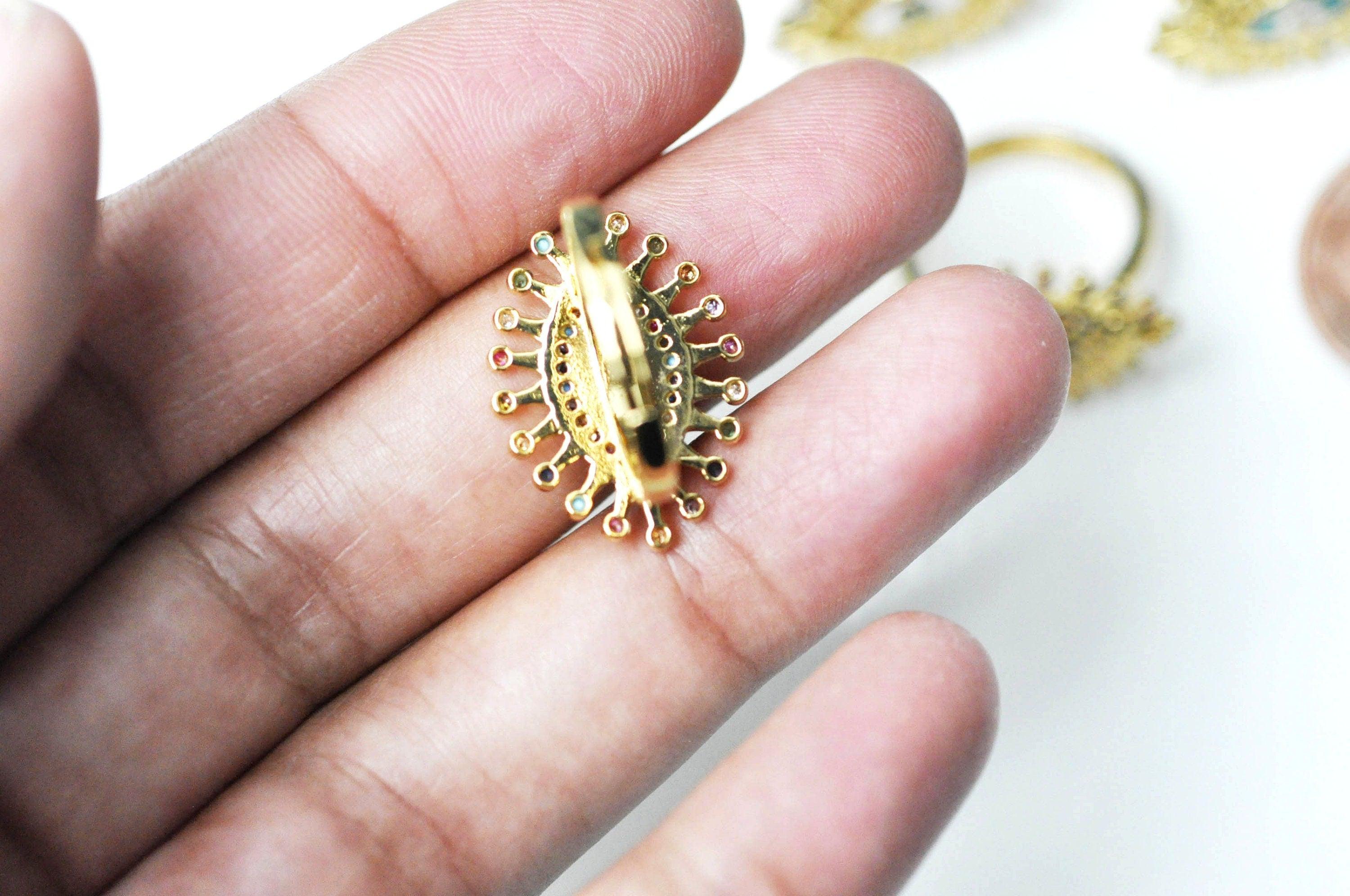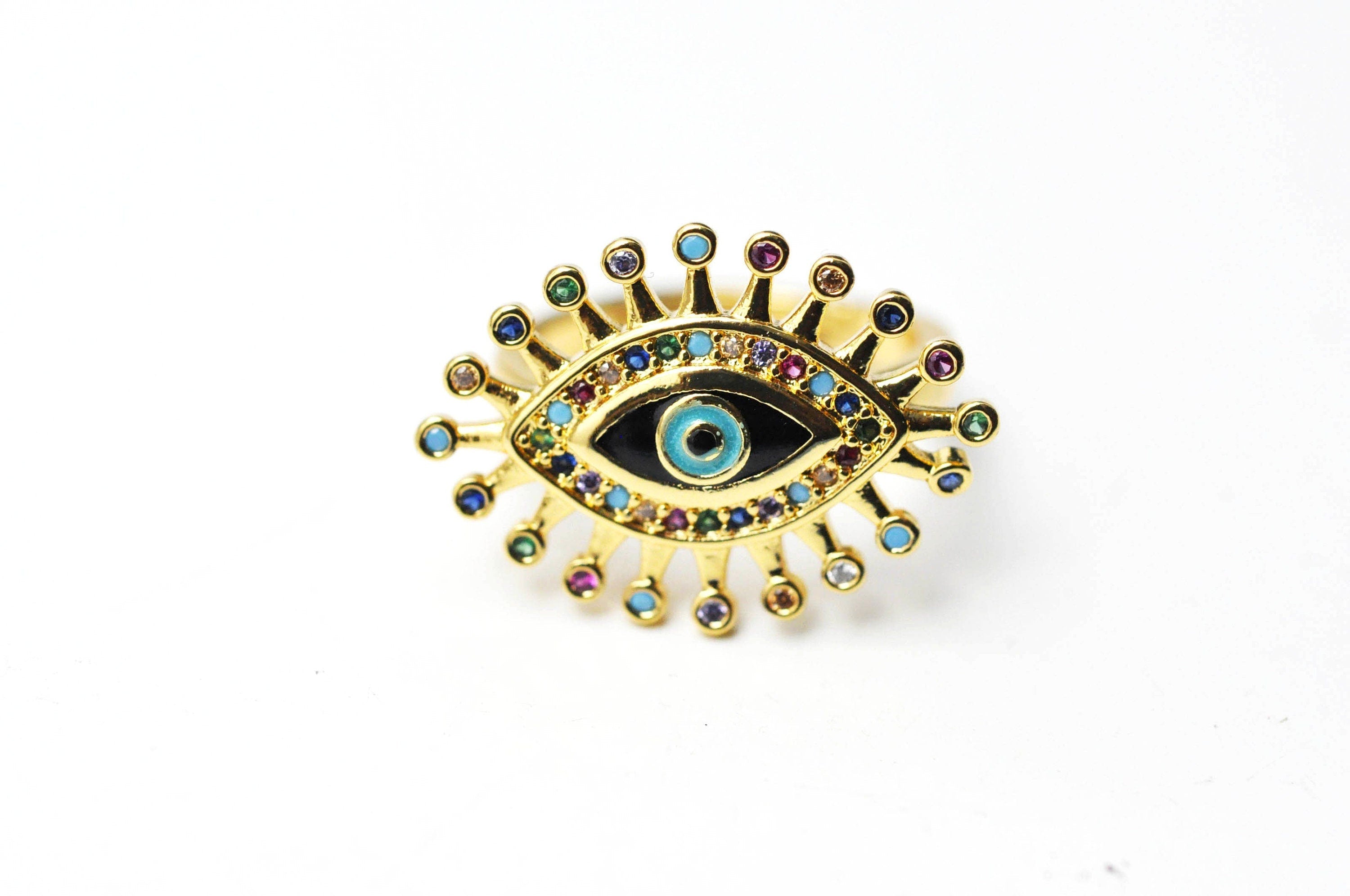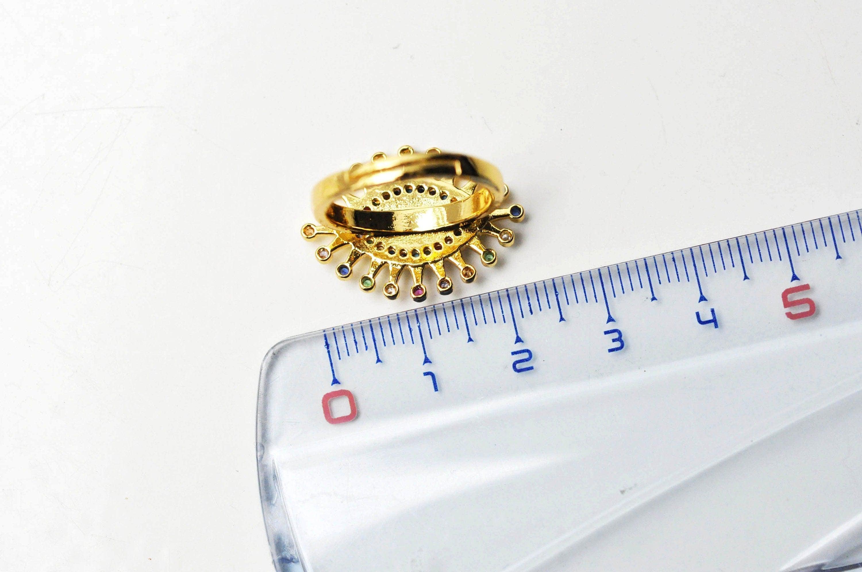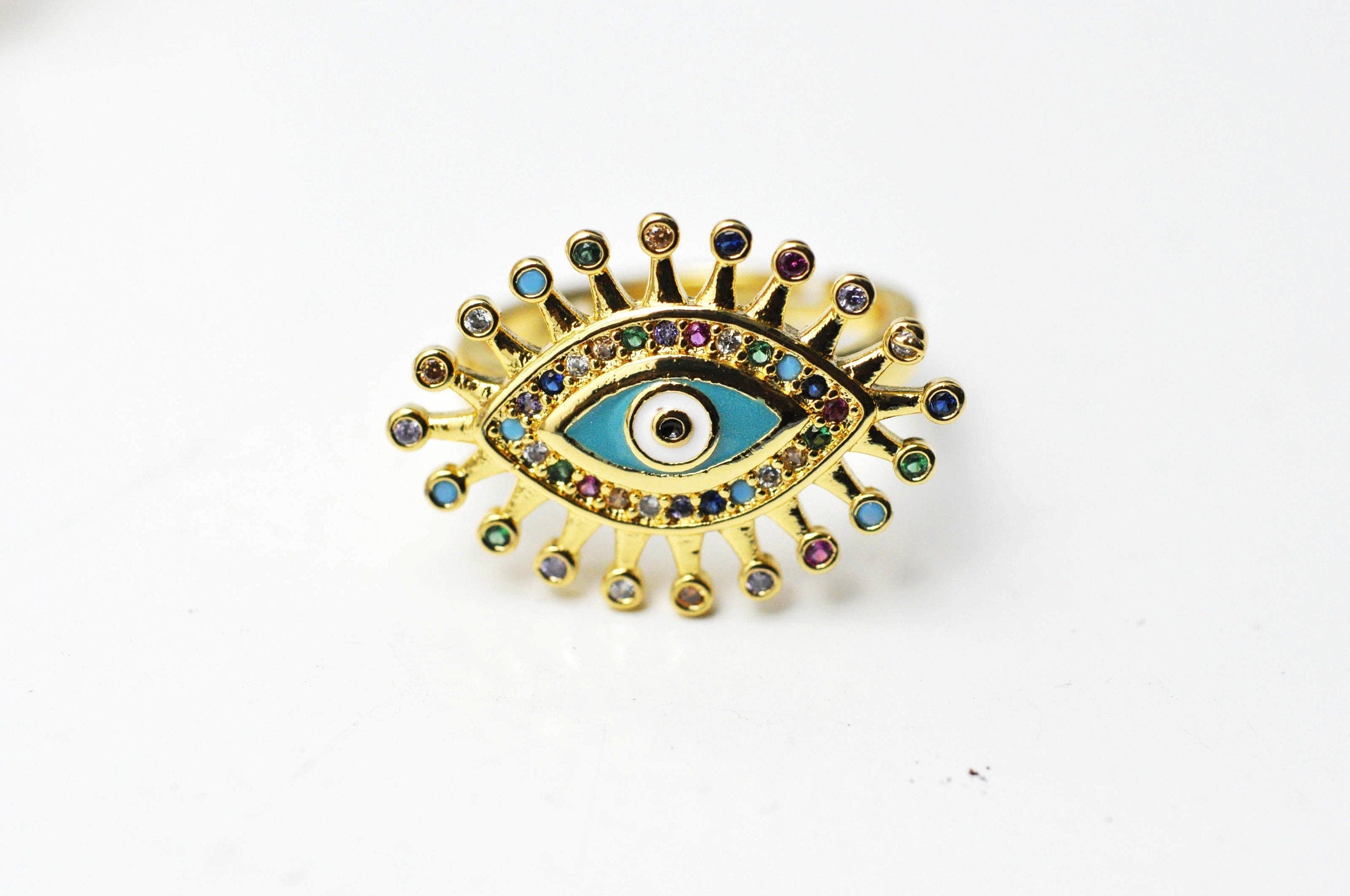 Adjustable ring in gold-plated brass with protective eye enamel, jewelry creation, women's ring, birthday gift, 17mm, unit A very beautiful ring holder in enameled gold-plated brass, decorated with a protective eye decorated with zircons around the edge. We love this...