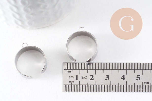 Bague réglable personnalisable acier 304 platine inoxydable avec anneau 8mm, x2 (G9979)