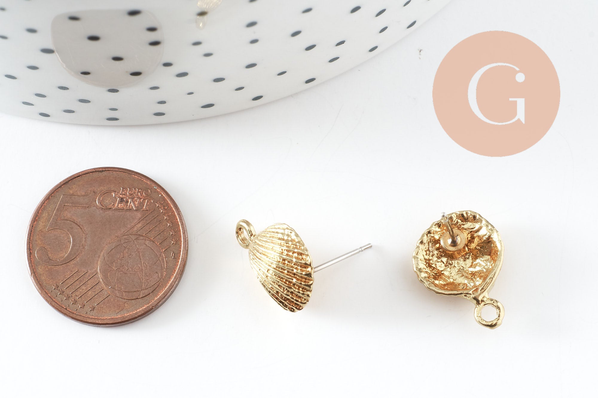 Raw brass shell chip earrings, golden shell, beach buckle, golden pendant, gold shell, jewelry creation, Set of 2, 12x16mm 2 raw brass shells. The ring is located at the top of the shell. Findings for your necklaces, bracelets and necklaces....